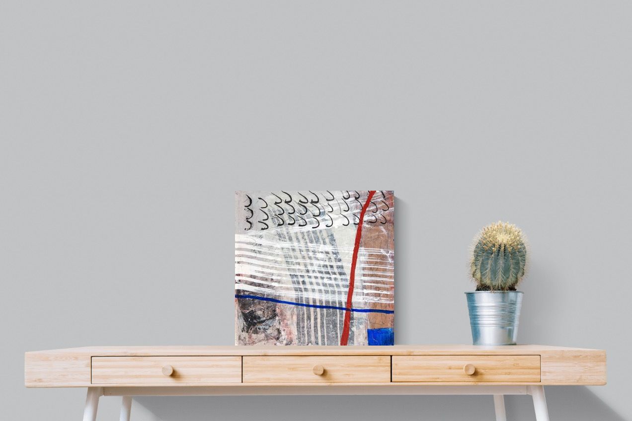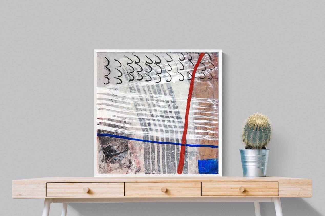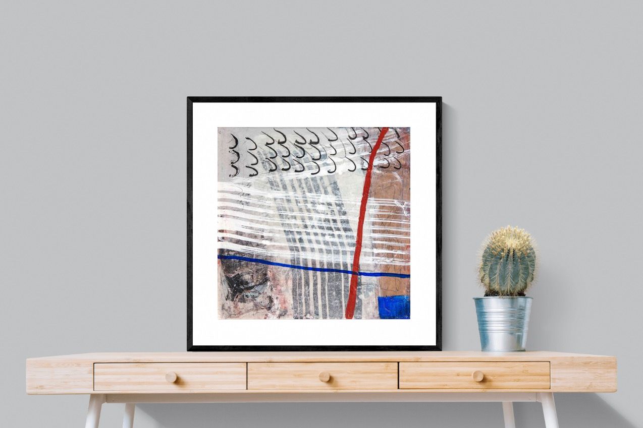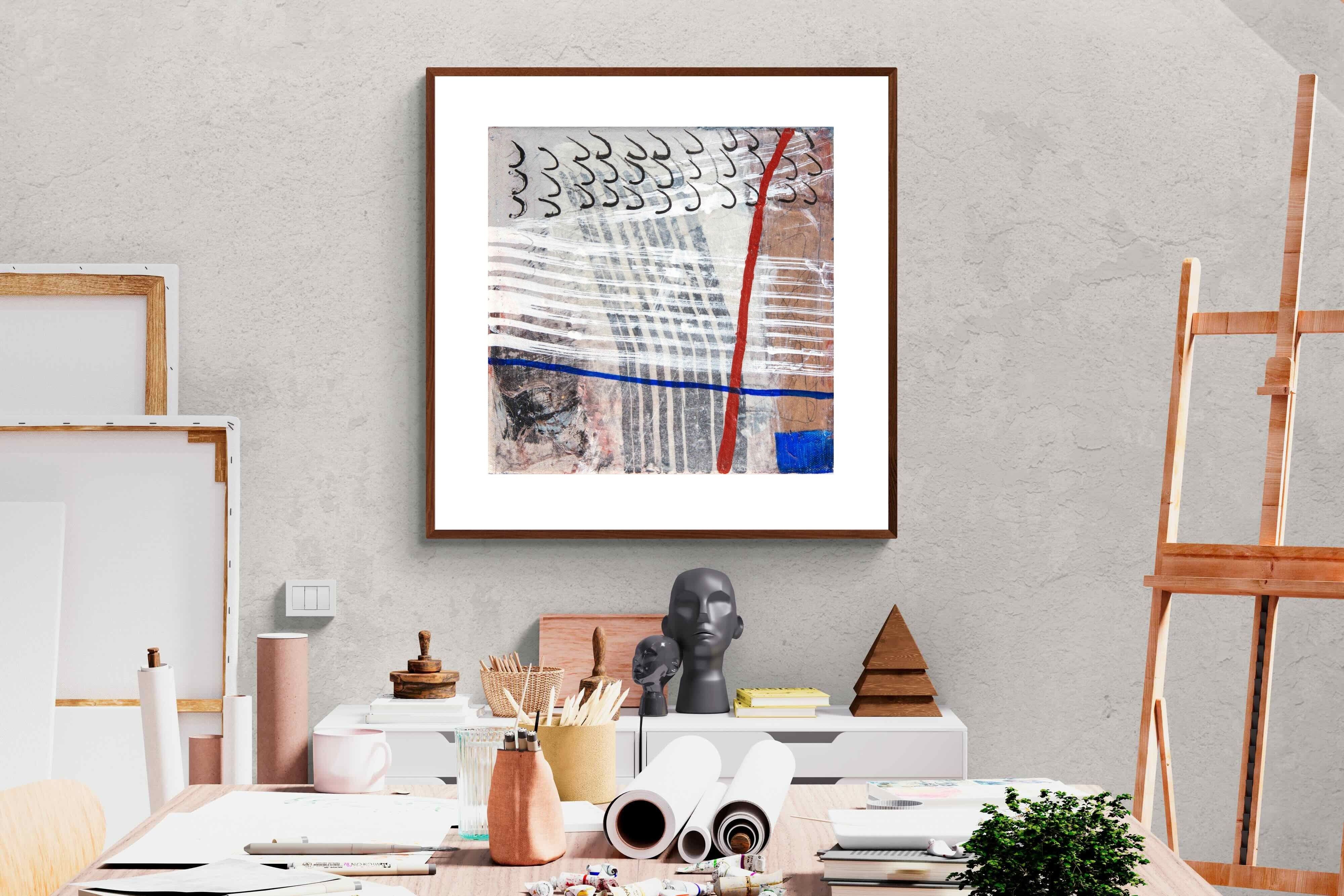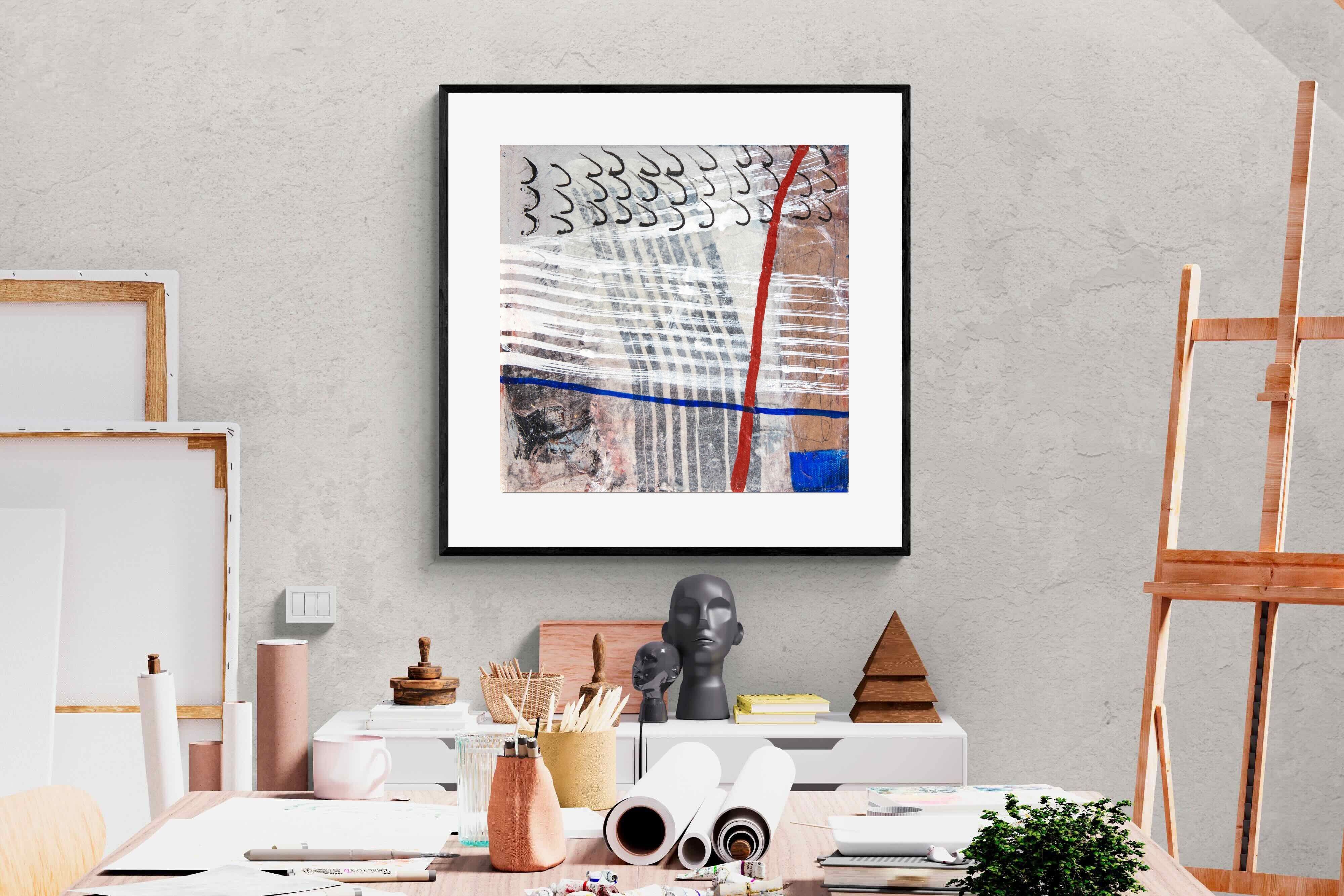 "Castaway" features a striking blend of ocean-inspired blues, soft earth tones, and intricate lines that evoke the feeling of an adventure at sea. This abstract composition balances both calm and intensity, making it perfect for coastal-themed or minimalistic homes. Its dynamic yet soothing presence enhances any space, adding a sophisticated, modern touch to living rooms or offices.