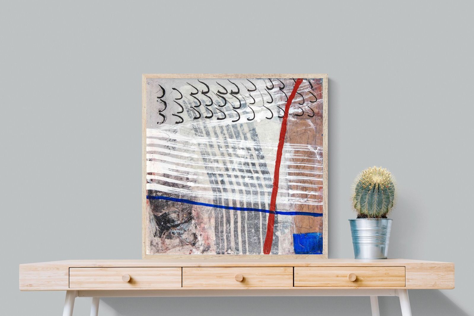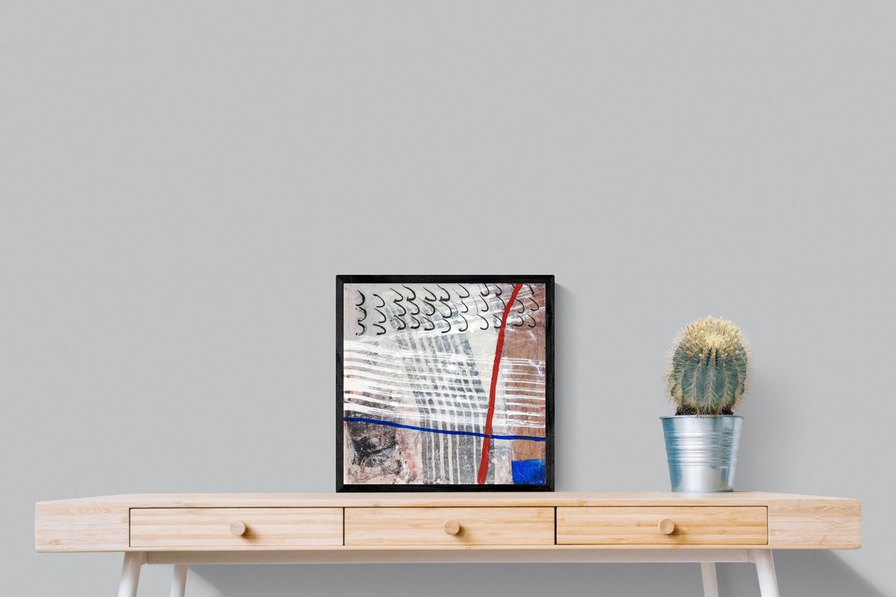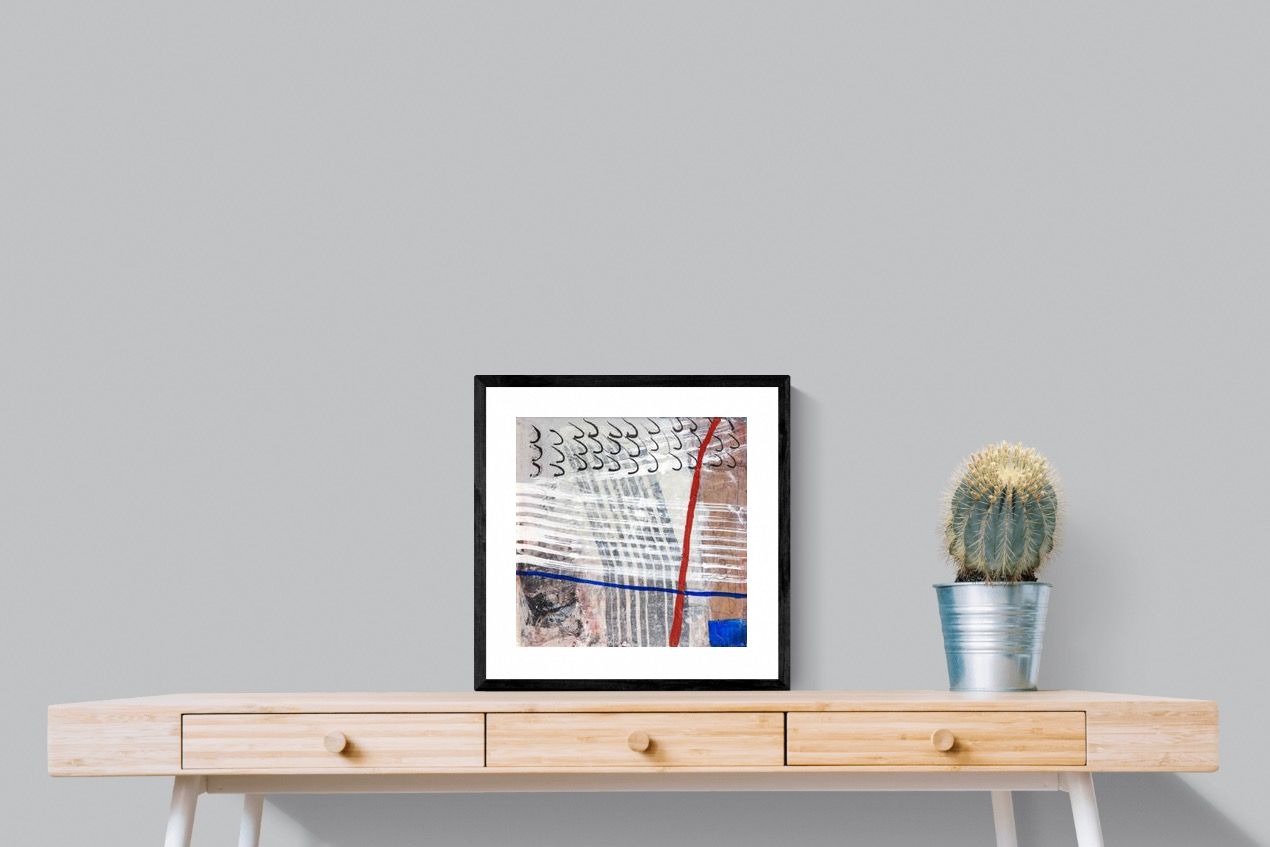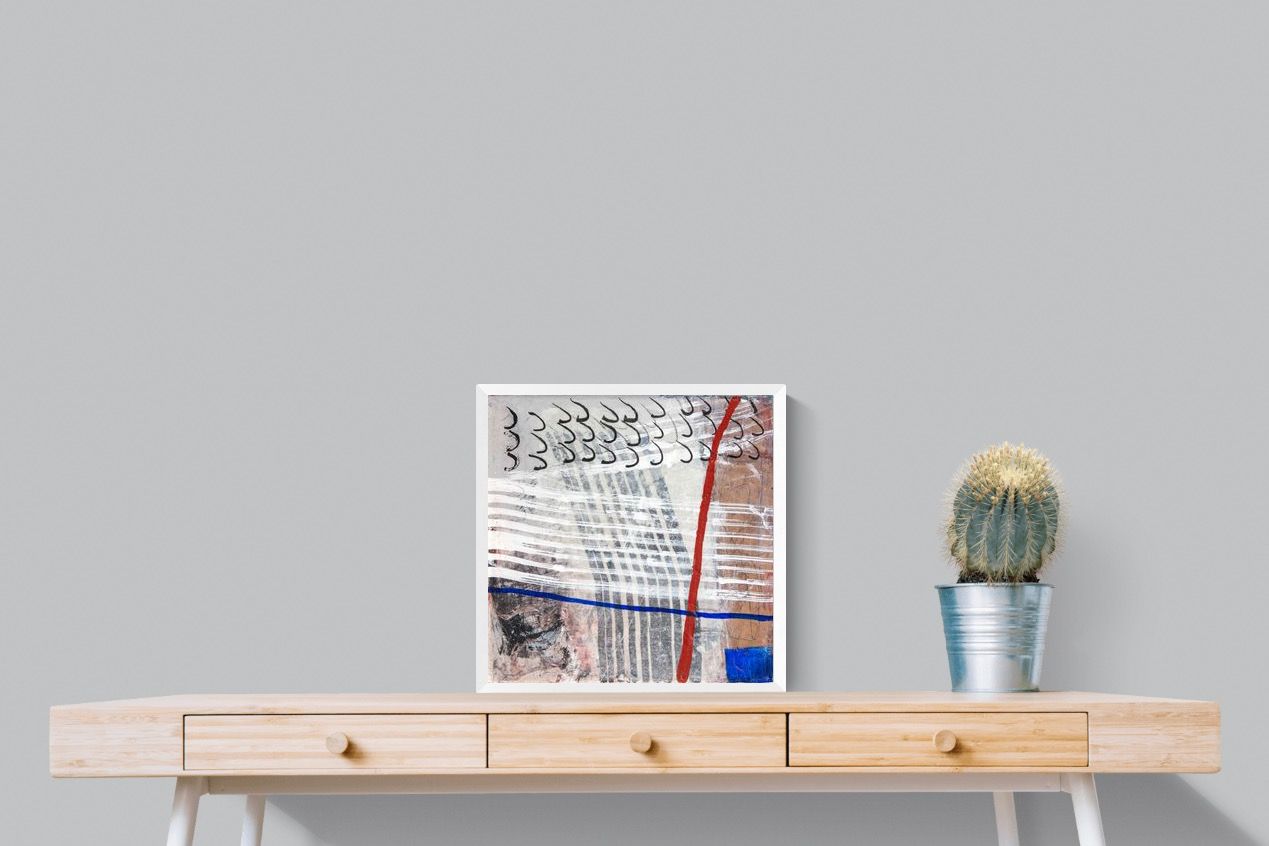 "Castaway" features a striking blend of ocean-inspired blues, soft earth tones, and intricate lines that evoke the feeling of an adventure at sea. This abstract composition balances both calm and intensity, making it perfect for coastal-themed or minimalistic homes. Its dynamic yet soothing presence enhances any space, adding a sophisticated, modern touch to living rooms or offices.