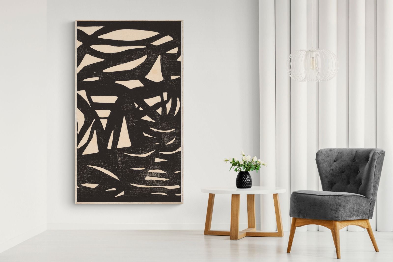 We make-to-order in our studio in Cape Town, using the highest quality materials and most skilled local craftsmen. We use only the finest wood frames (in black, white, oak, walnut) canvas, mounting card and glass available, and whereas most retailers use 25mm subframes, we stretch the canvas over 50mm subframes, which gives it gravitas on the wall.