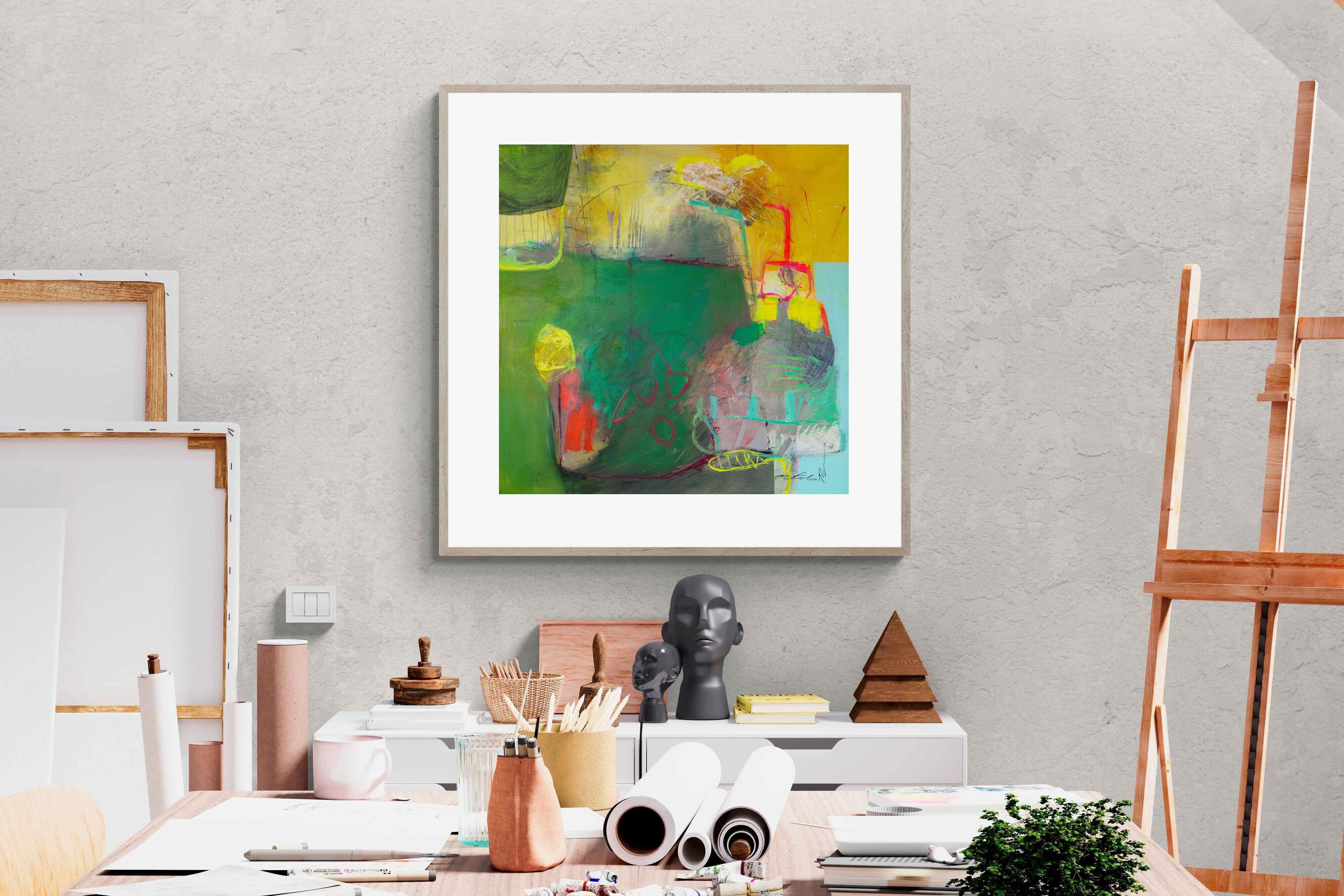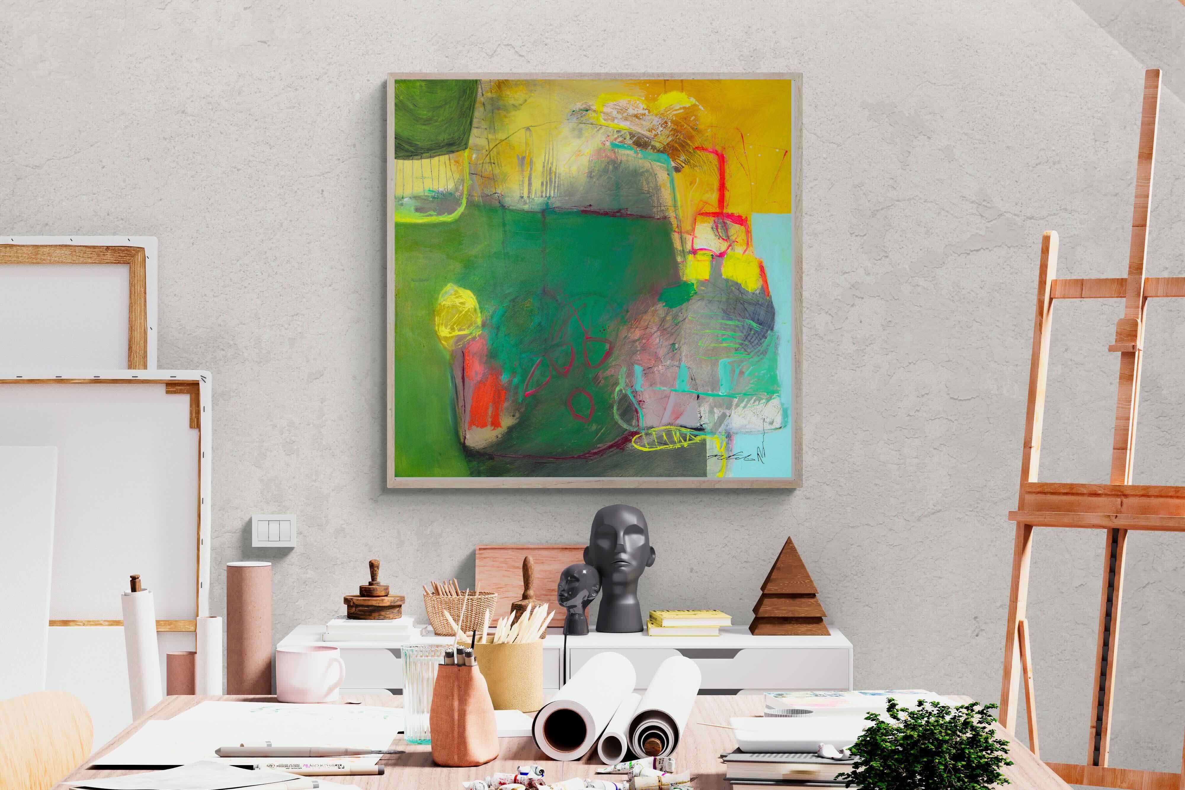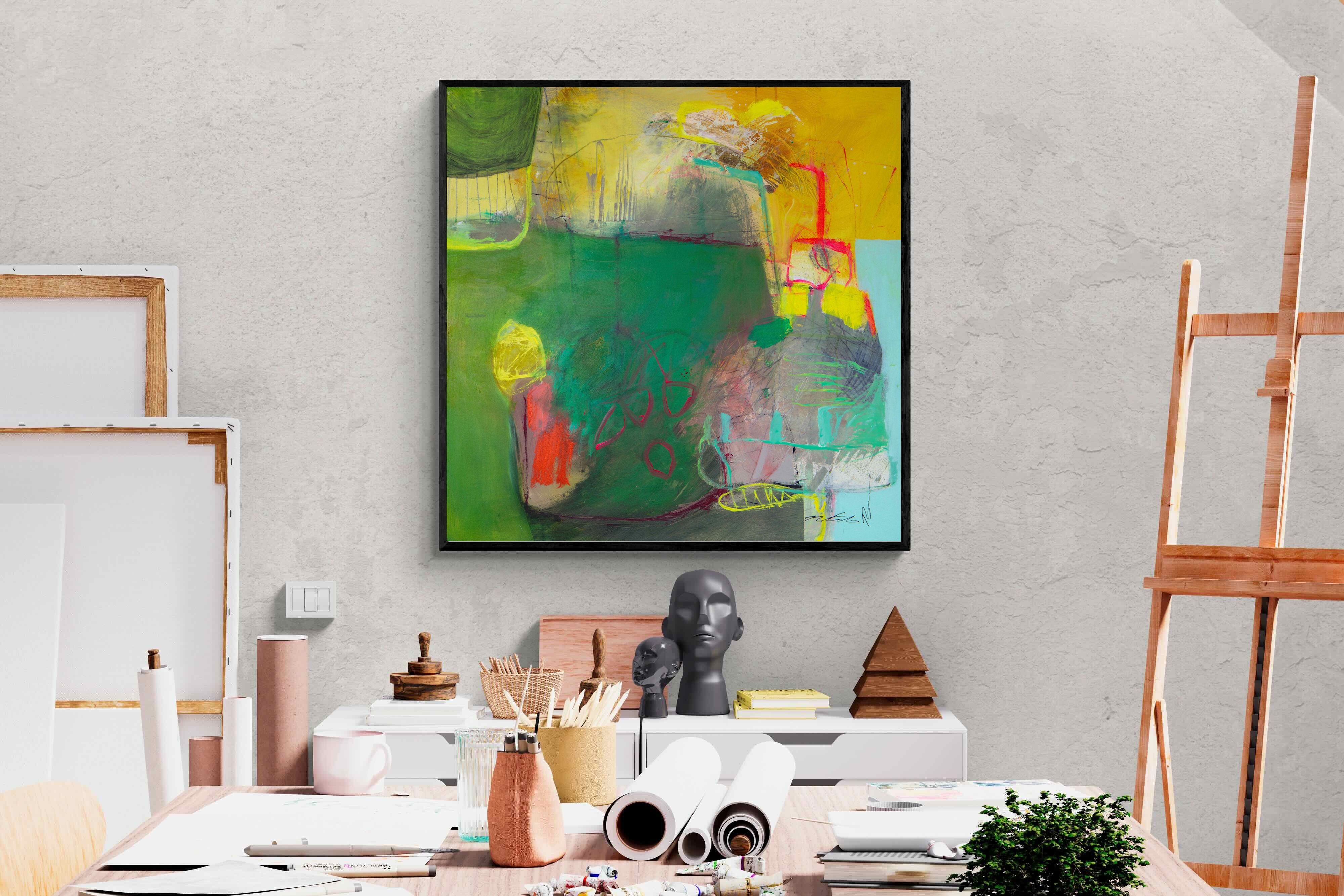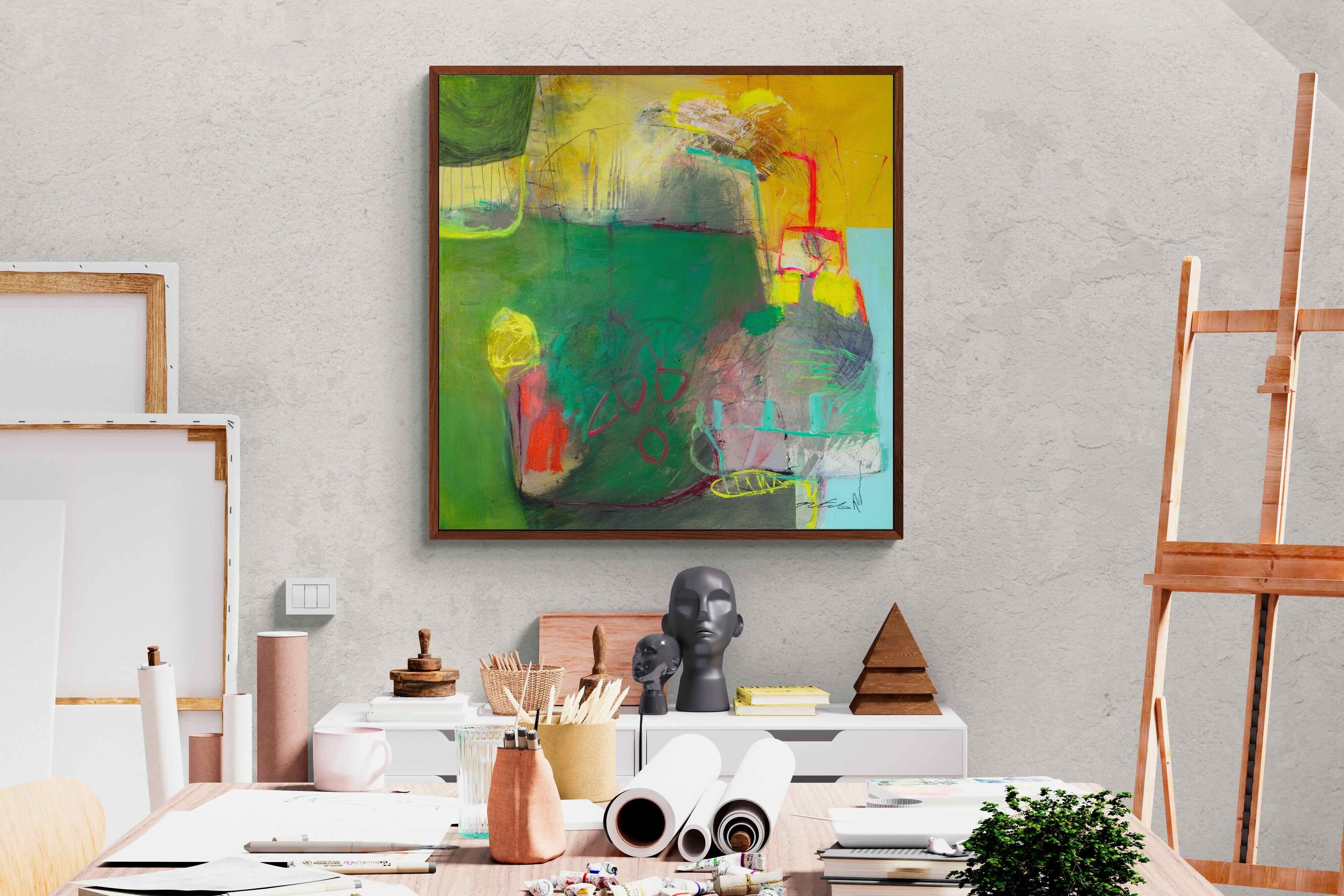 "Emerald Bay" showcases soothing green, blue, and teal tones that bring a sense of calm and serenity to any room. Inspired by the tranquil beauty of nature, this abstract artwork adds a peaceful atmosphere to living areas, bedrooms, or even offices. Its cool hues and organic flow create an inviting, refreshing space with a touch of elegance. Signed by the artist.