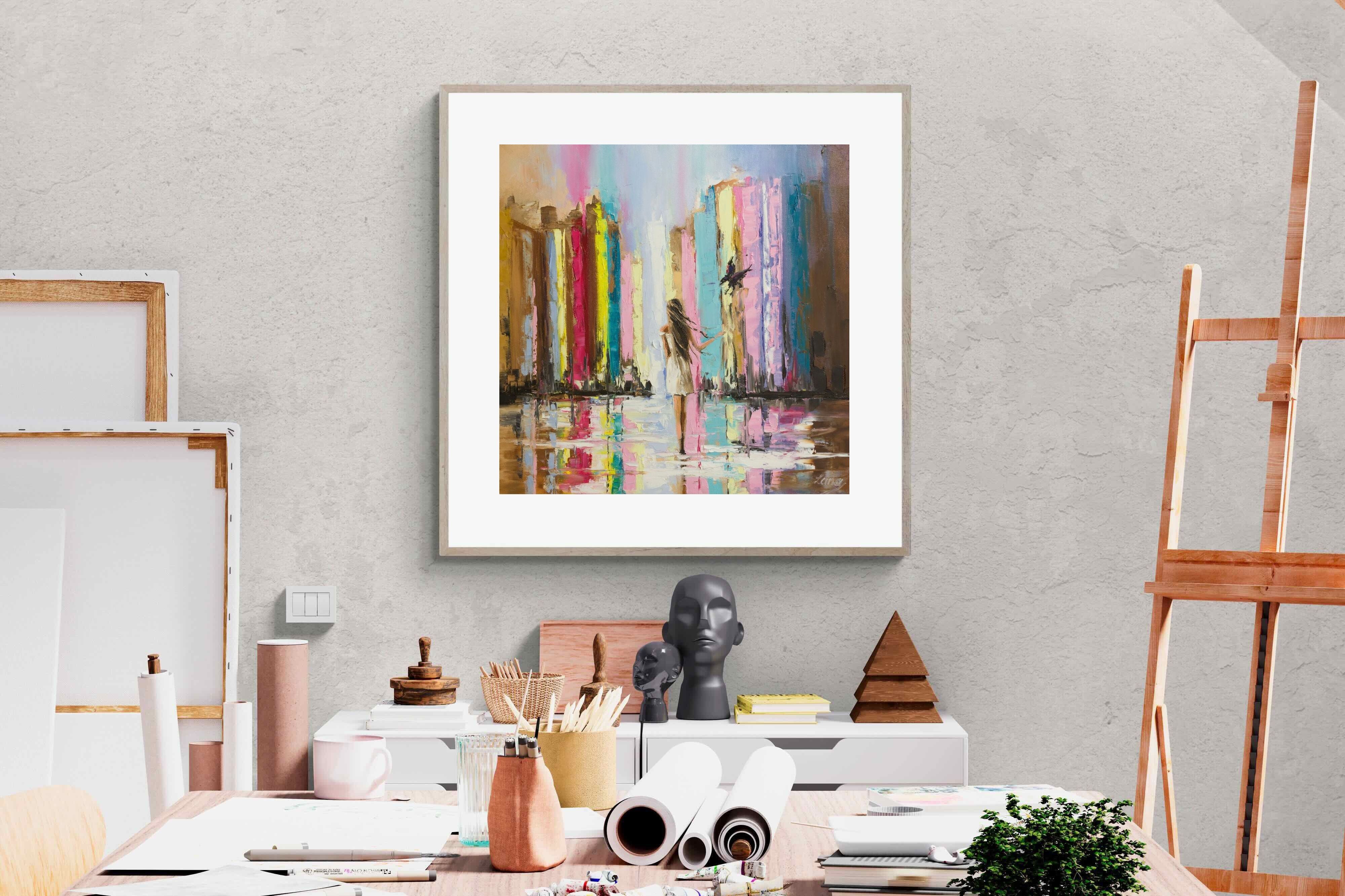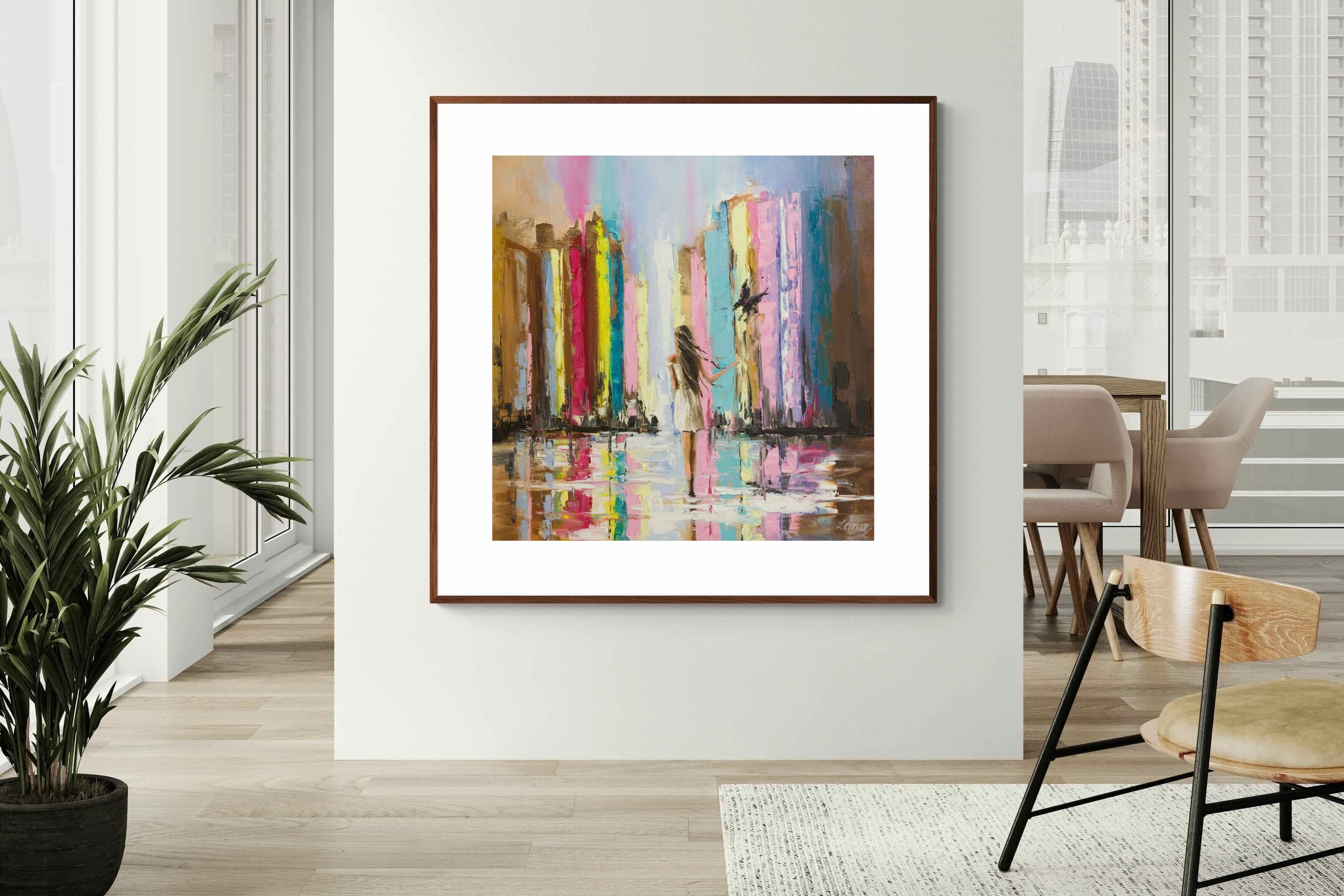 Colourful Abstract City Painting – Modern Urban Skyline Wall Art