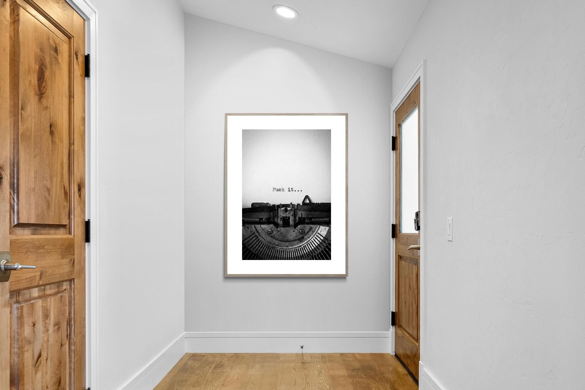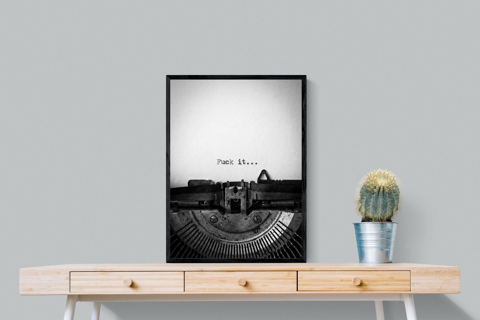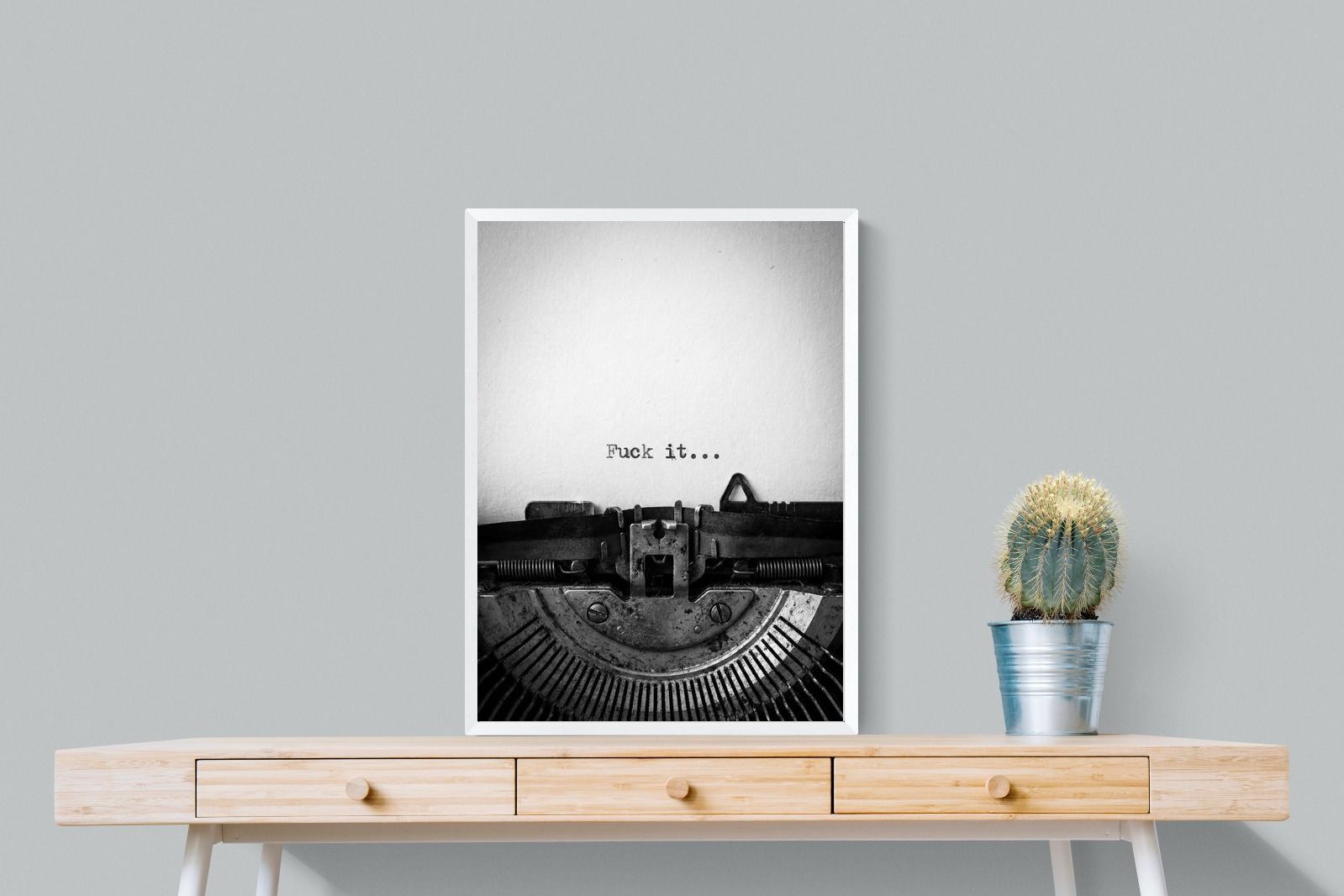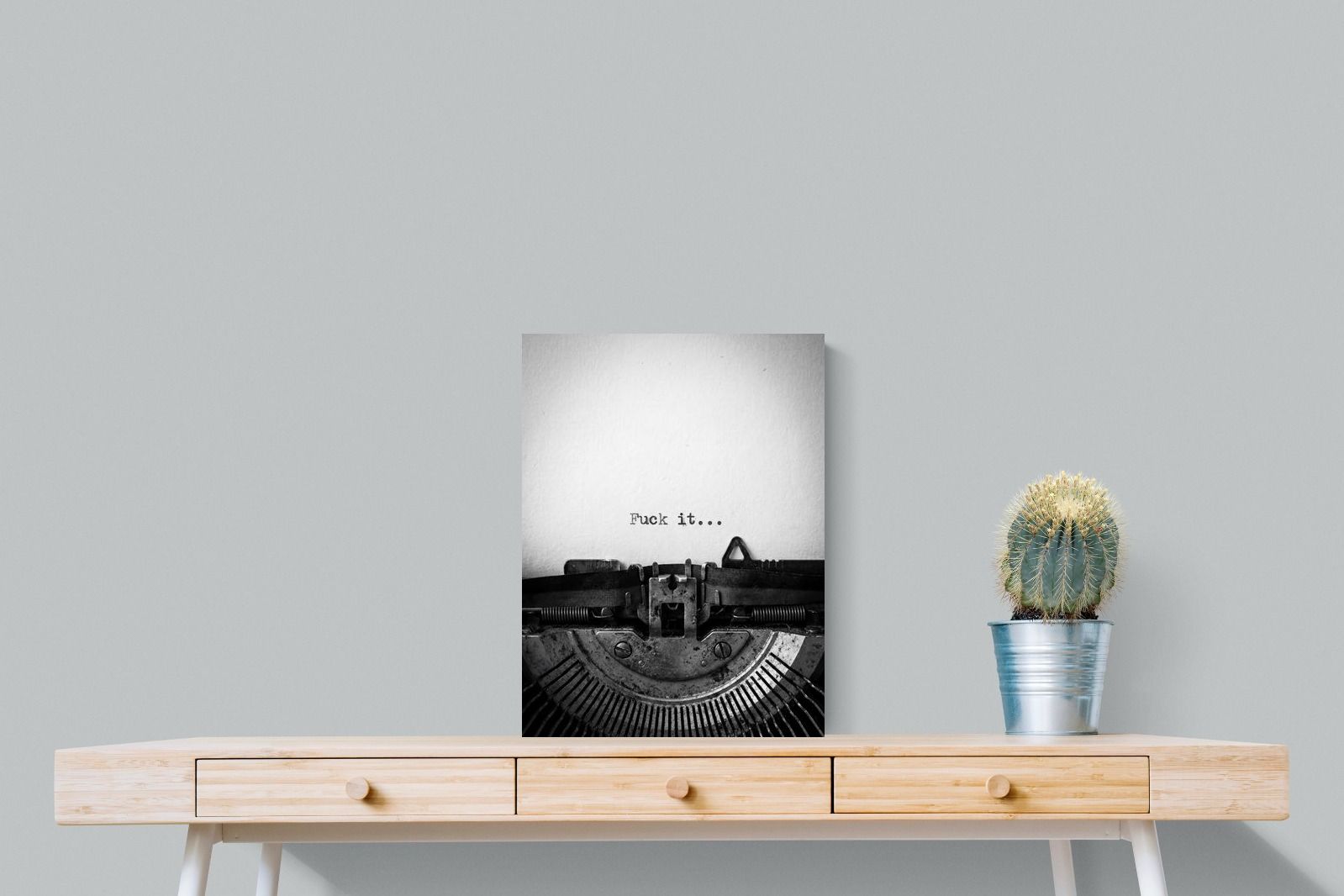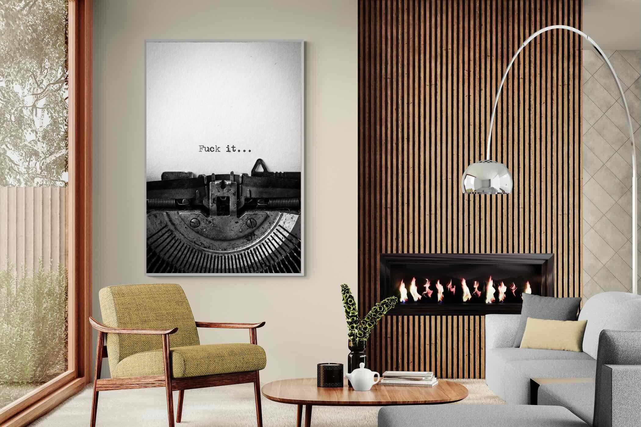 A striking monochrome photograph of a vintage typewriter capturing the blunt phrase “Fuck it…” typed onto the page. The mechanical textures, worn metal and stark typography create a raw, rebellious aesthetic that feels both nostalgic and unapologetically modern. This piece works particularly well in creative studios, home offices, bachelor pads or edgy contemporary interiors where humour and attitude are part of the décor. Printed large, the minimal composition delivers maximum impact.