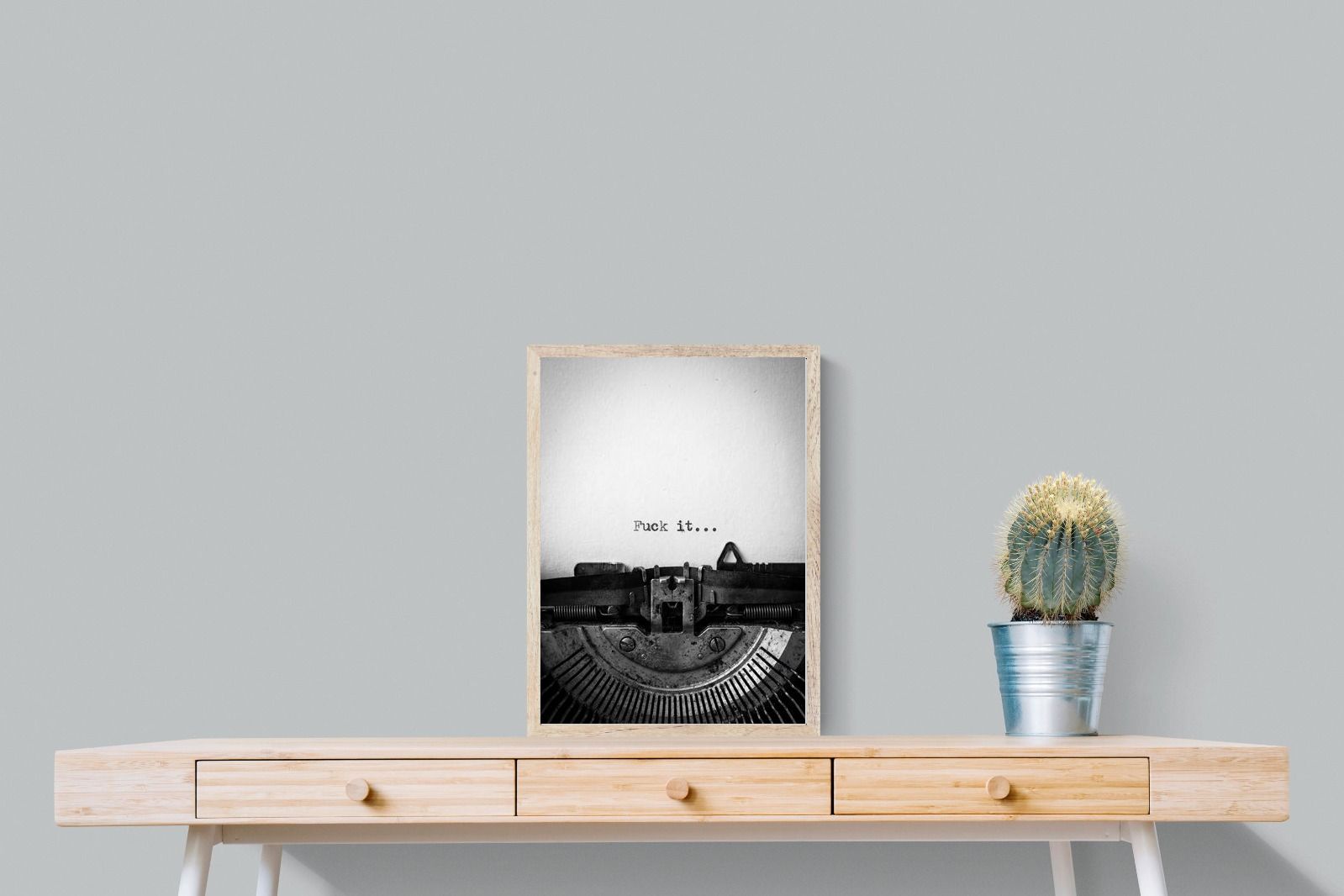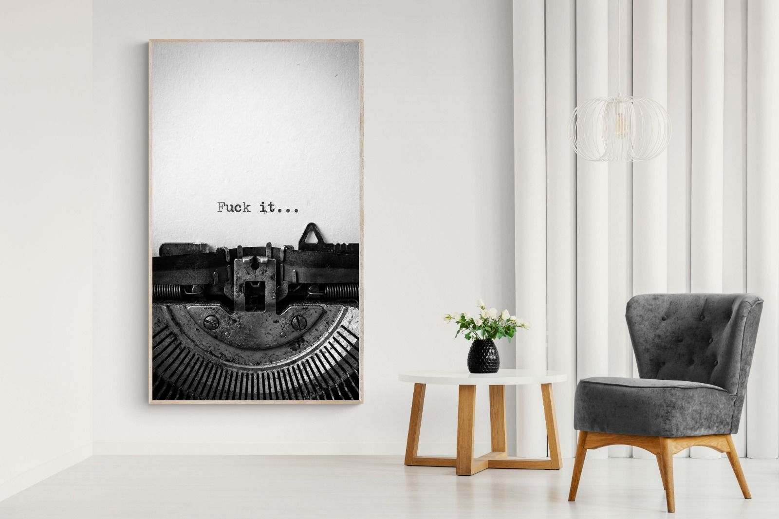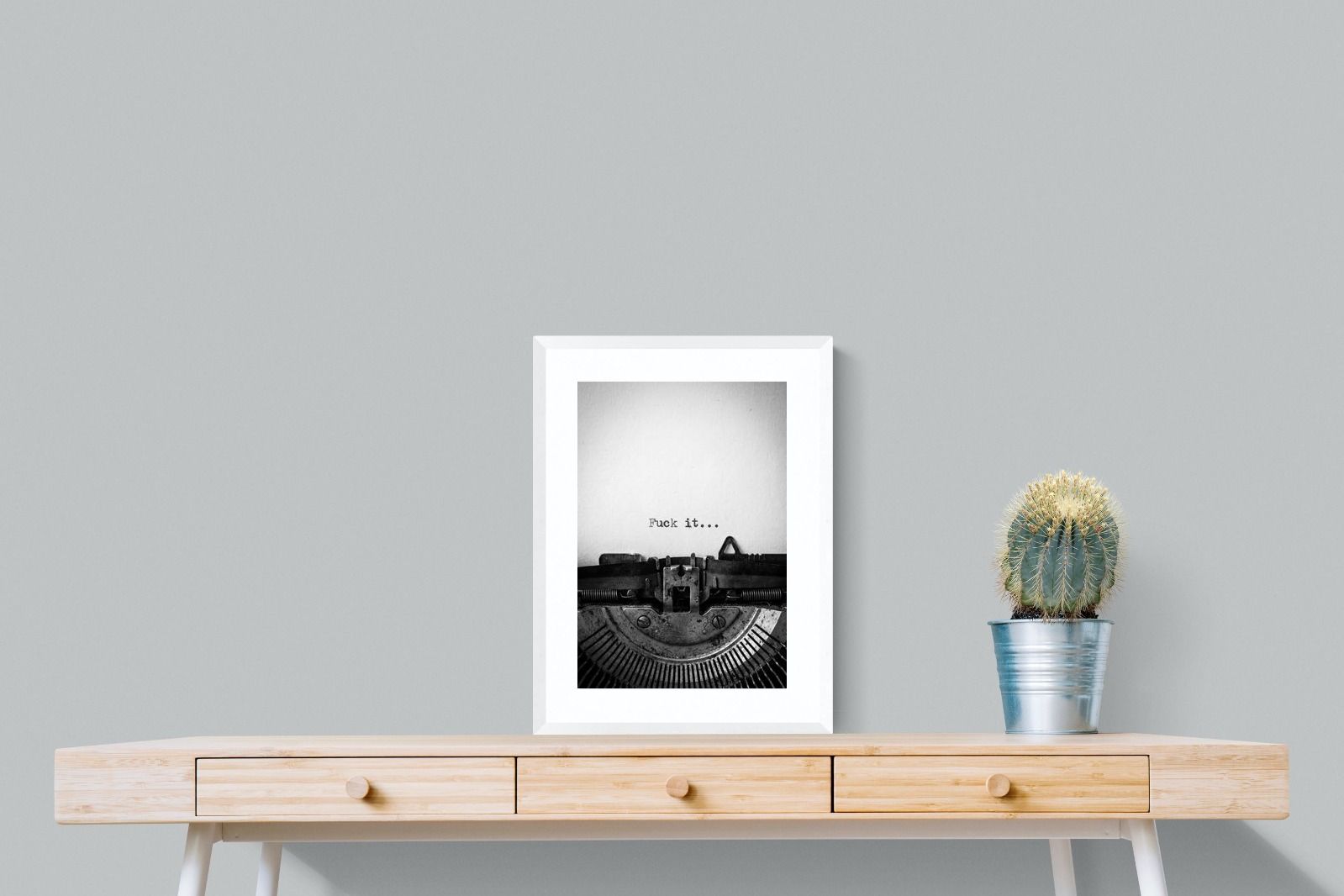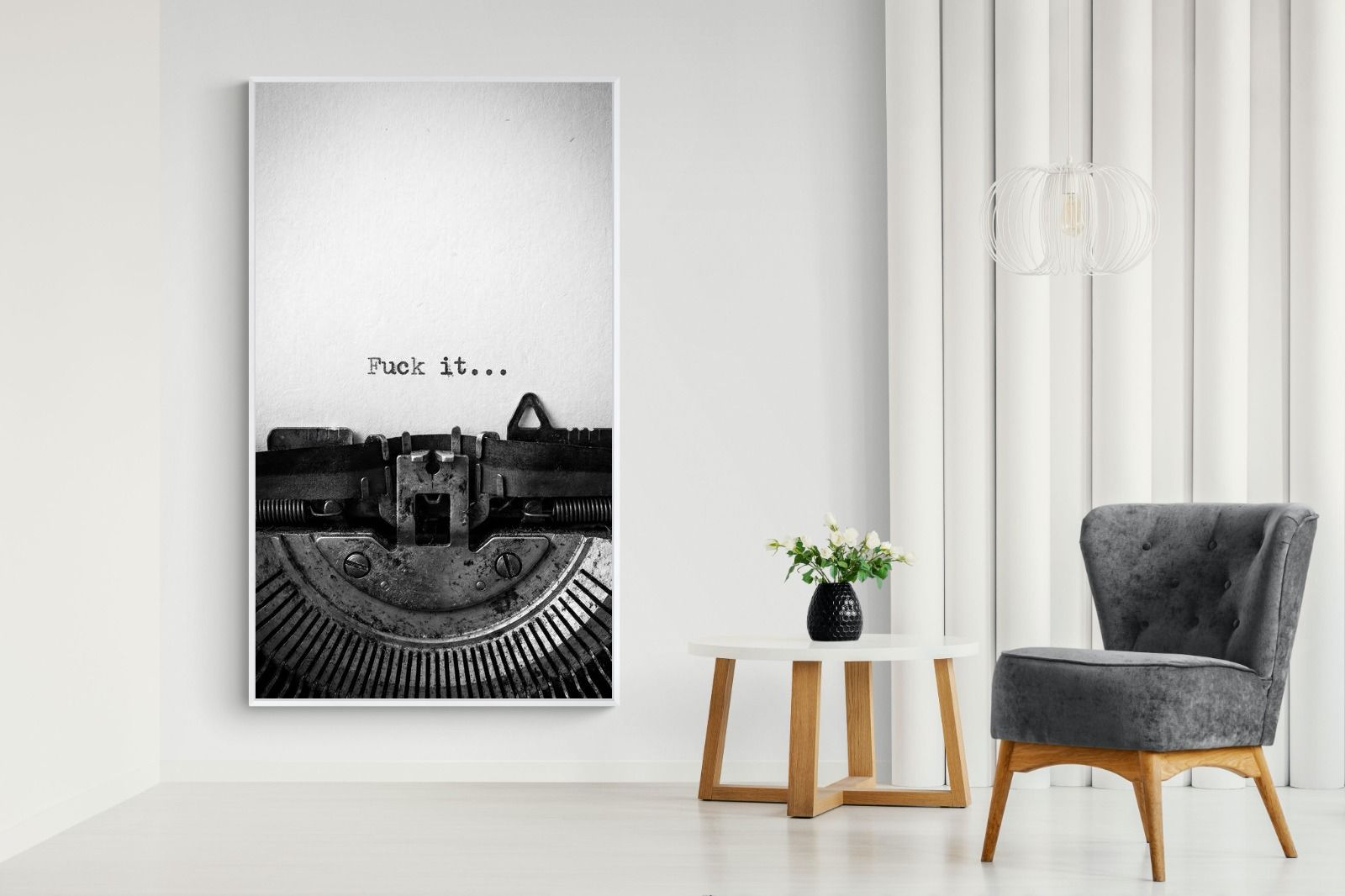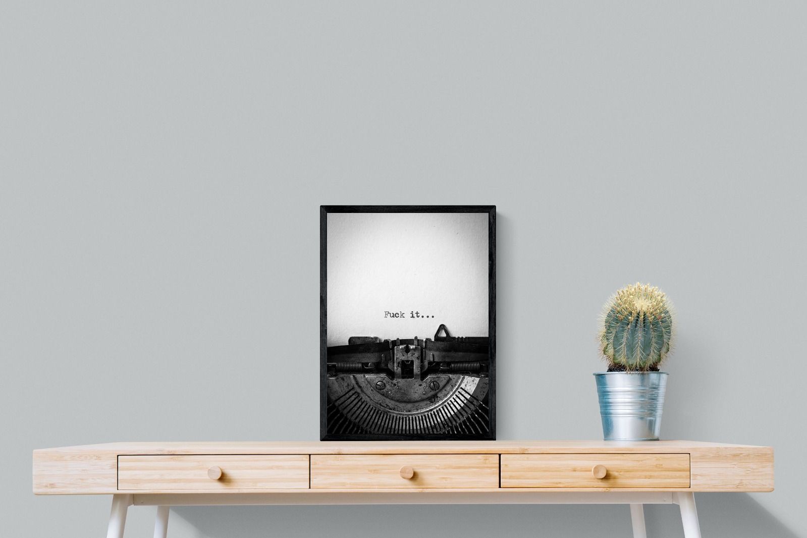 A striking monochrome photograph of a vintage typewriter capturing the blunt phrase “Fuck it…” typed onto the page. The mechanical textures, worn metal and stark typography create a raw, rebellious aesthetic that feels both nostalgic and unapologetically modern. This piece works particularly well in creative studios, home offices, bachelor pads or edgy contemporary interiors where humour and attitude are part of the décor. Printed large, the minimal composition delivers maximum impact.