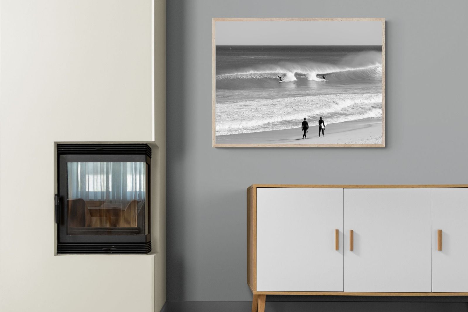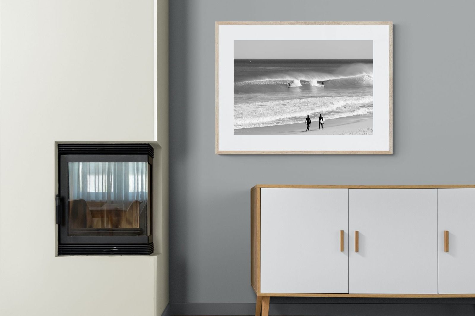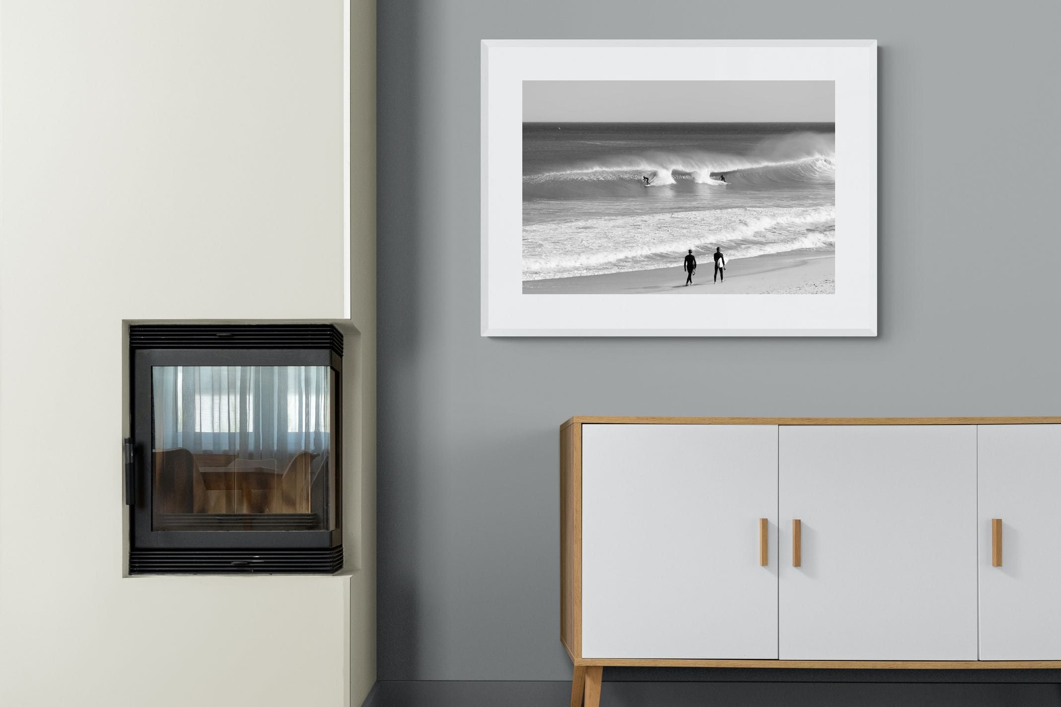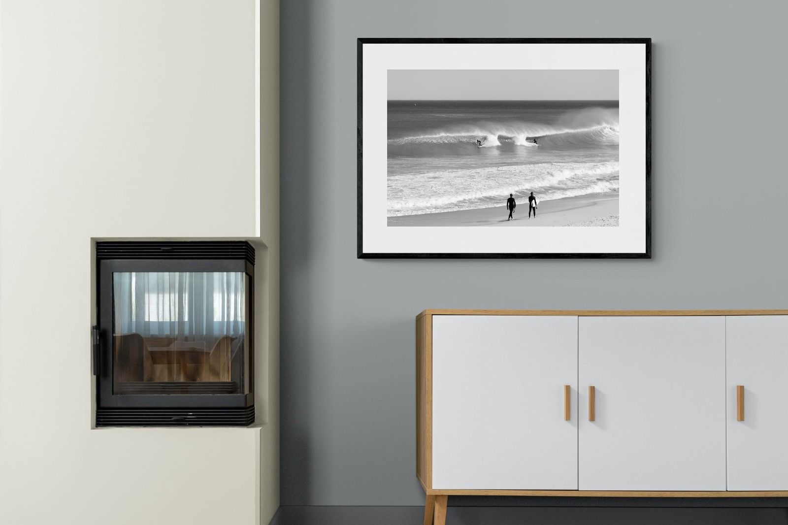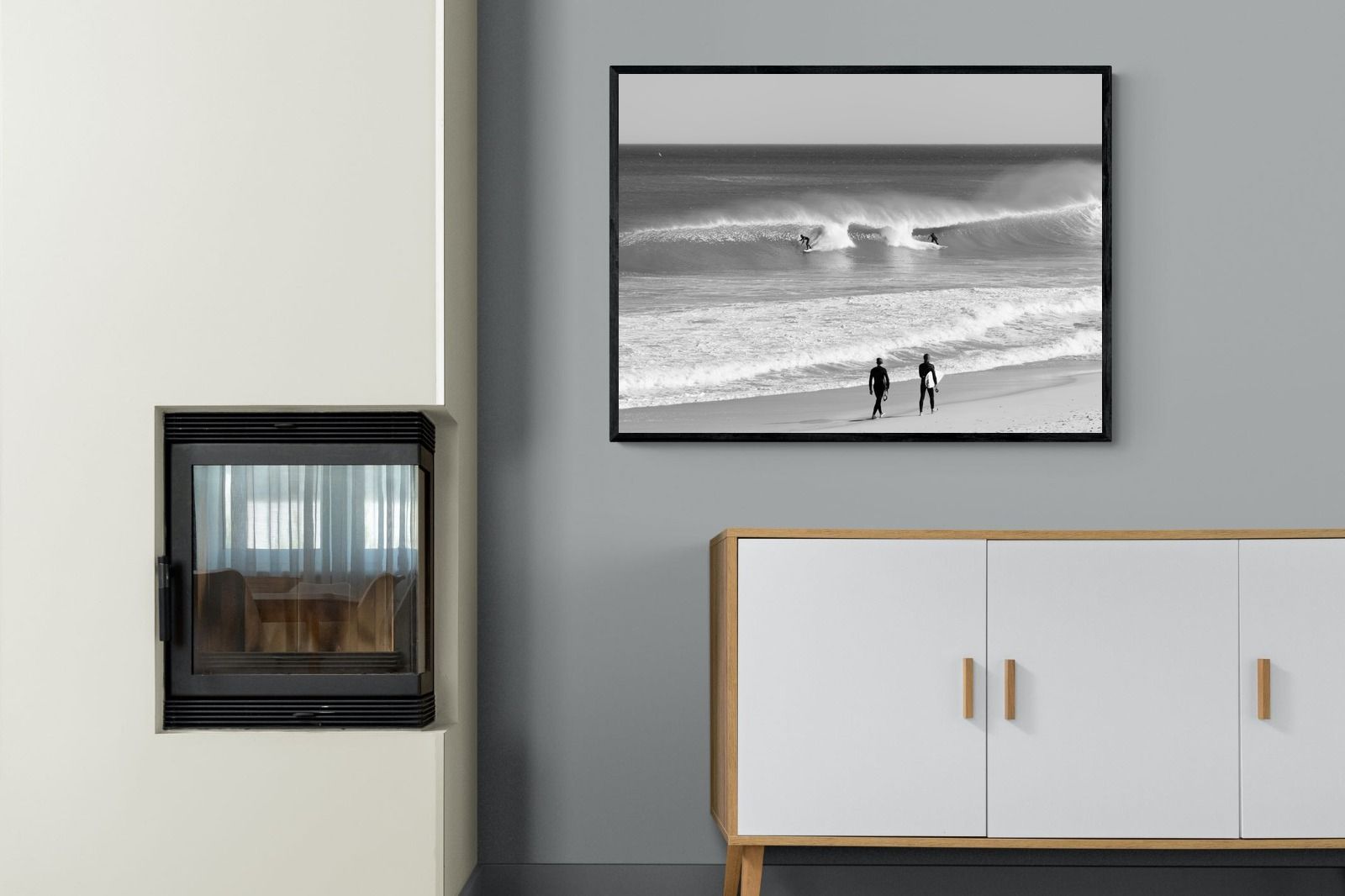 Photographed on the West Coast of Cape Town, this black and white surf scene captures powerful, clean lines as riders carve through rolling Atlantic waves. The contrast between spray, shadow and open horizon creates a bold, graphic composition. Figures on the shoreline add scale and atmosphere, grounding the moment in authentic coastal culture. A dramatic piece suited to modern interiors, surf-inspired spaces and anyone drawn to the rhythm of the ocean.
