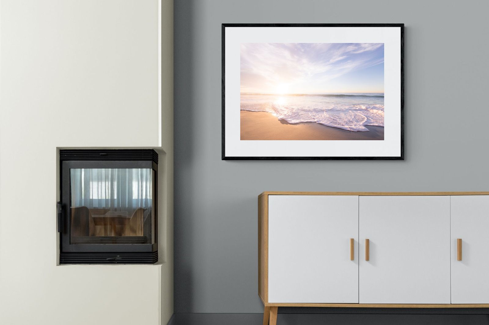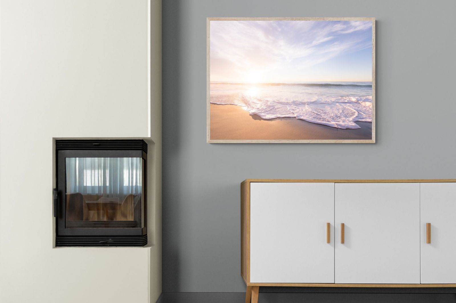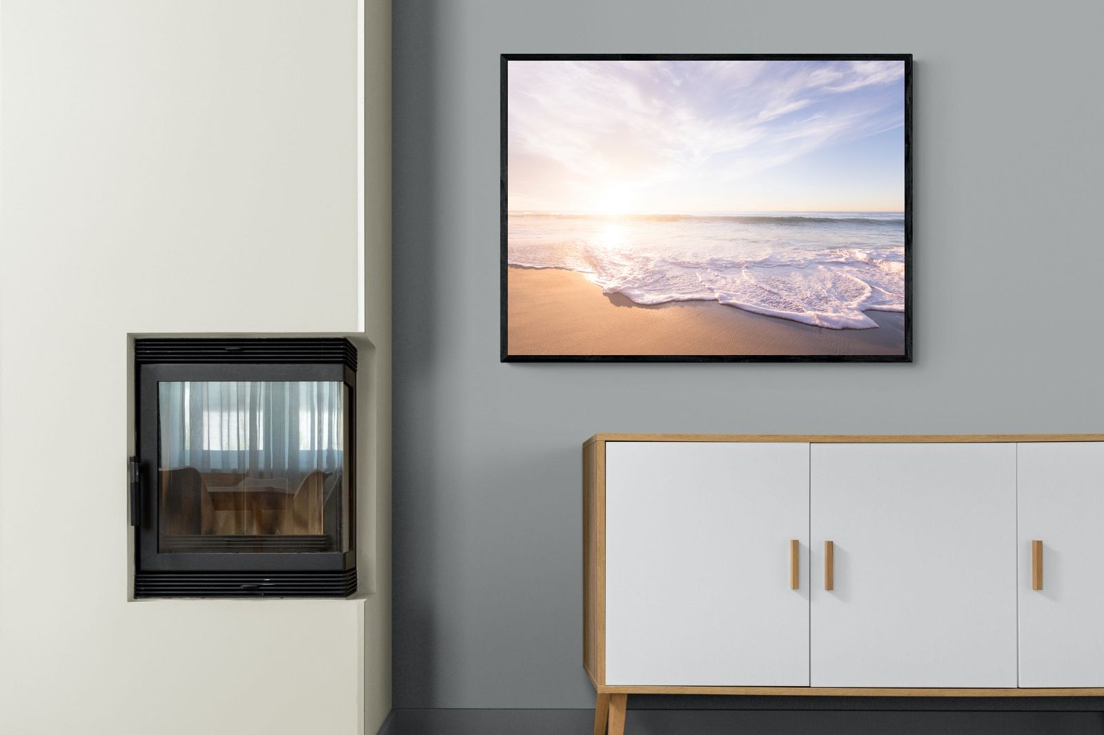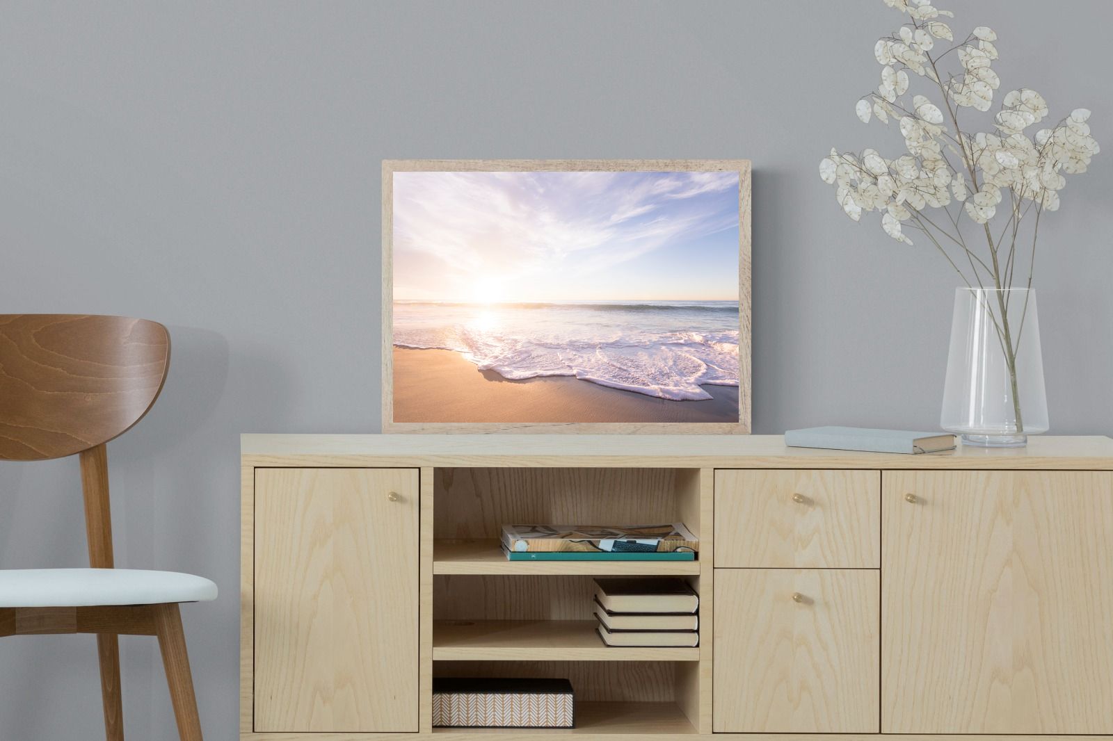 This serene image of a beach at sunset captures the calming beauty of the ocean. The soft waves gently lap against the sand, bathed in the golden glow of the early morning light. Ideal for contemporary spaces, this wall art brings a peaceful, natural vibe, evoking feelings of relaxation and tranquility. Its soft pastel hues and gentle movement make it a perfect addition to any modern home decor.