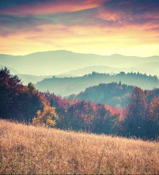 A layered mountain landscape unfolds in soft autumn tones, with rolling hills fading into the distance beneath a warm, glowing sky. The gradual shifts in colour and light create depth and a calm, atmospheric feel. Ideal for living rooms, bedrooms, or nature-inspired interiors, it brings a sense of openness and tranquillity. Its balanced composition and gentle palette make it a versatile piece for spaces that favour scenic views and relaxed, natural styling.