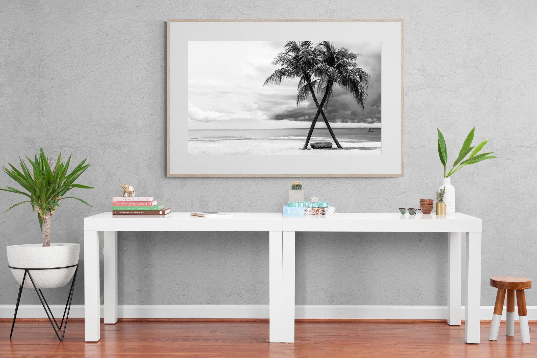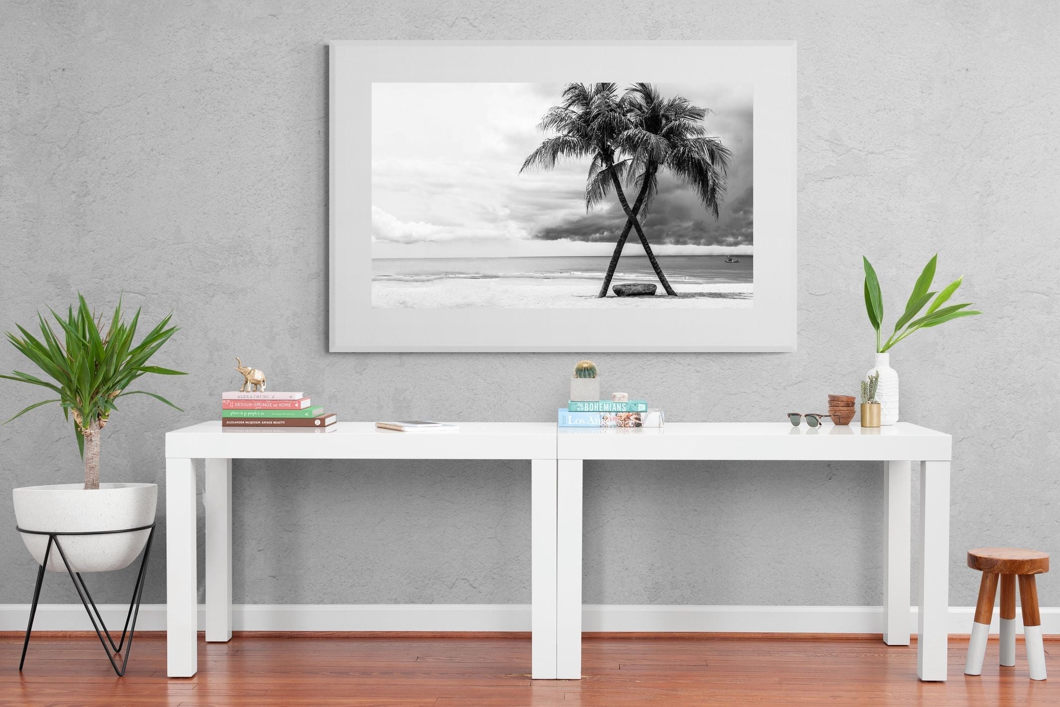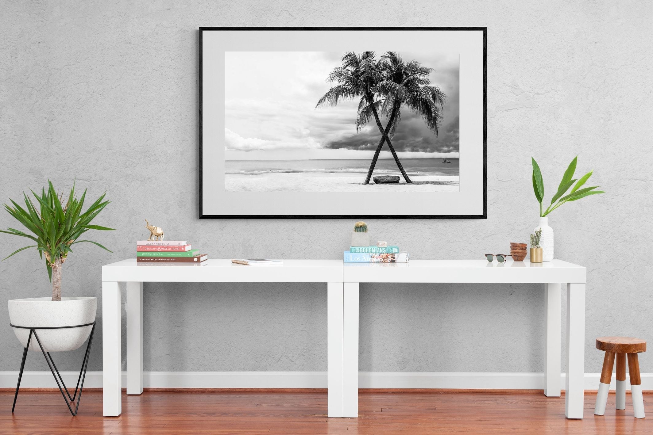Crossed Palm Trees Wall Art | Black and White Coastal Photography