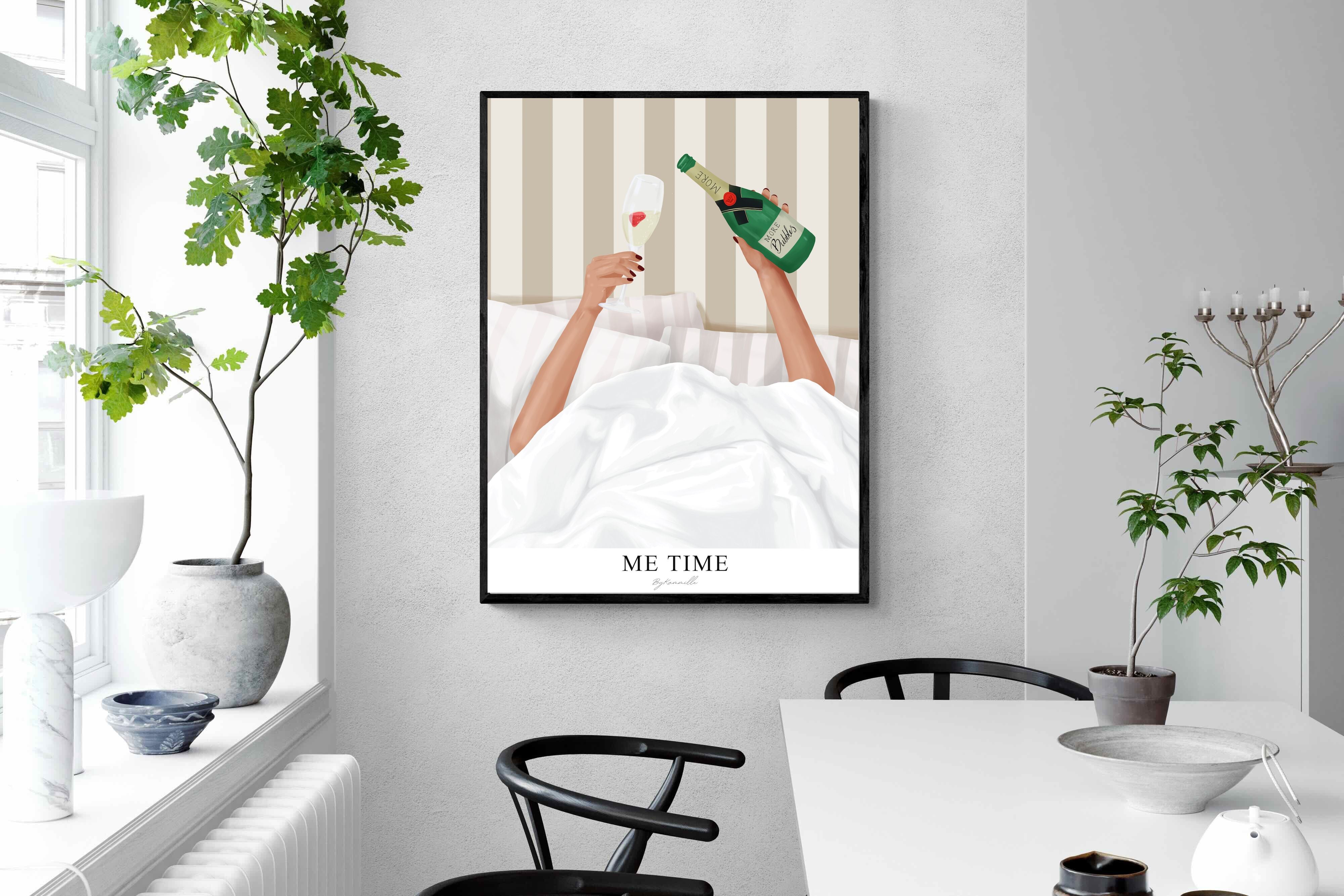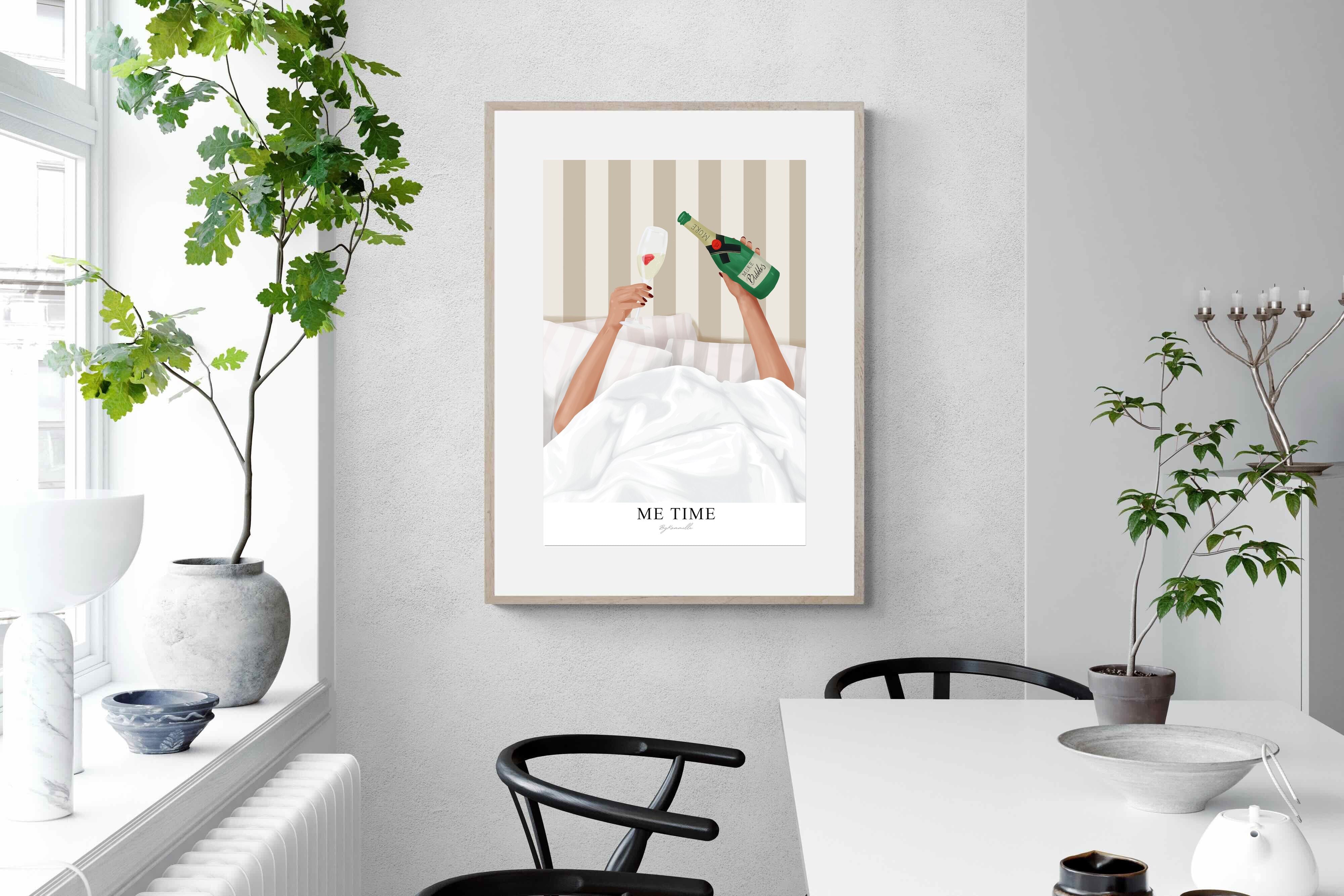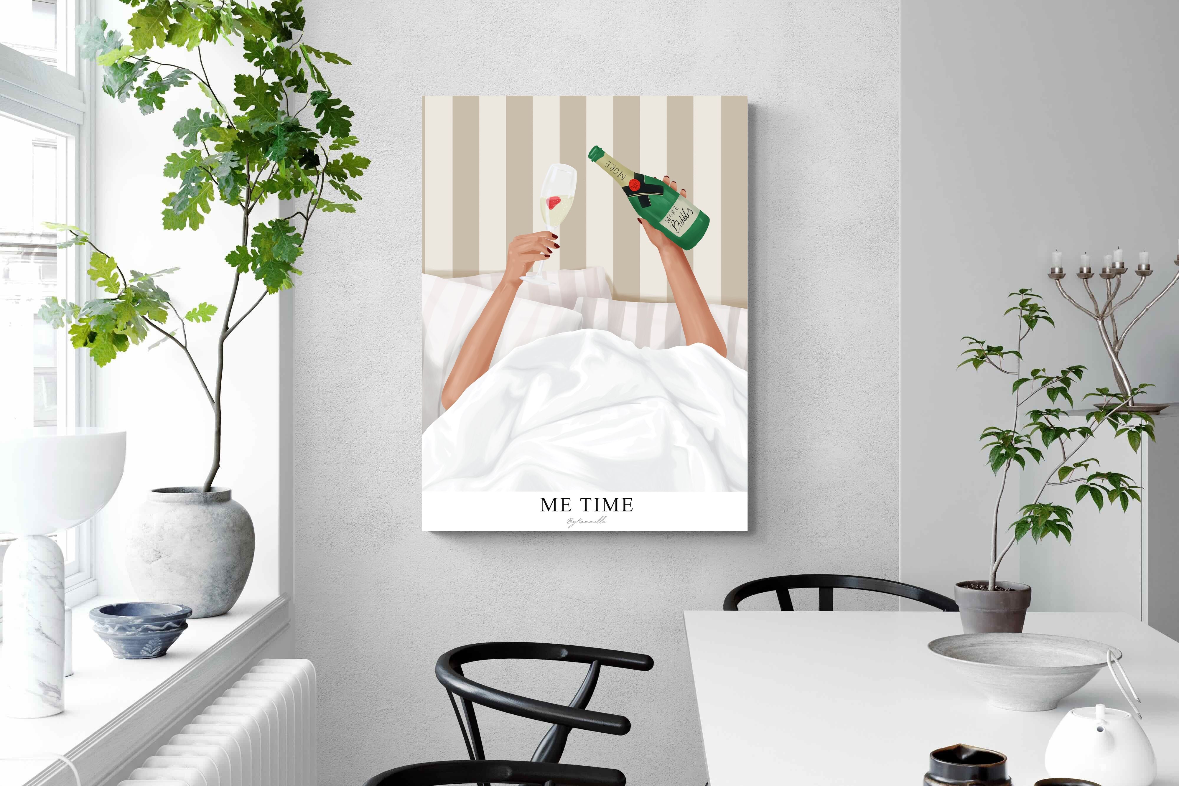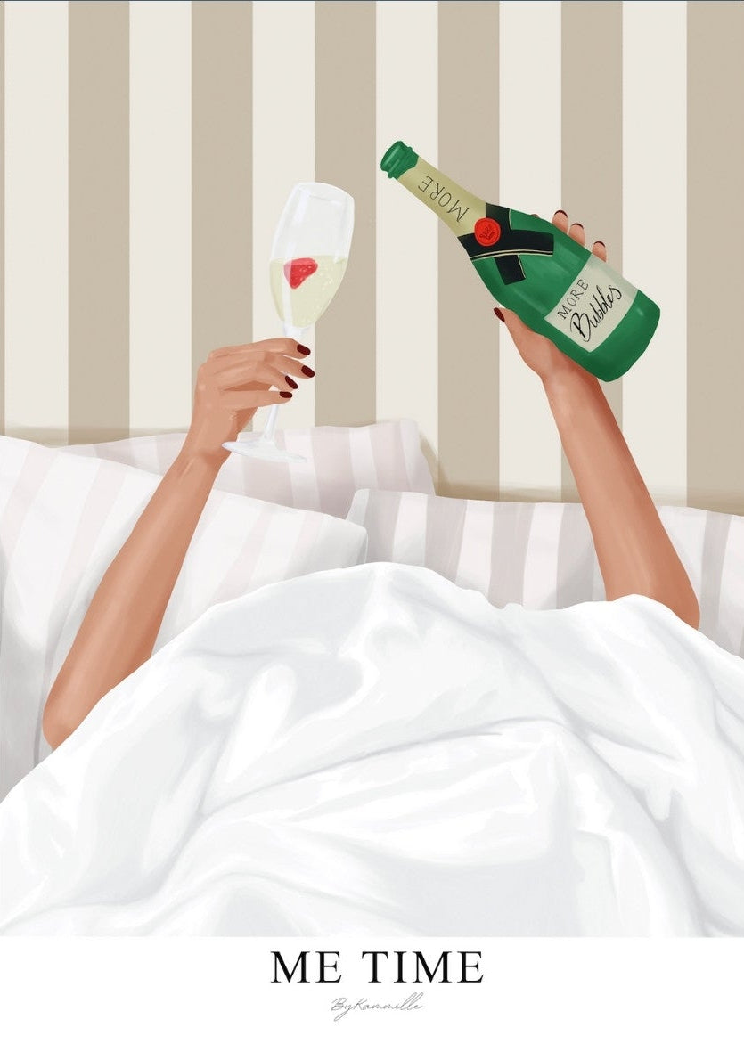 Me Time Wall Art – Champagne Illustration for Modern Bedrooms