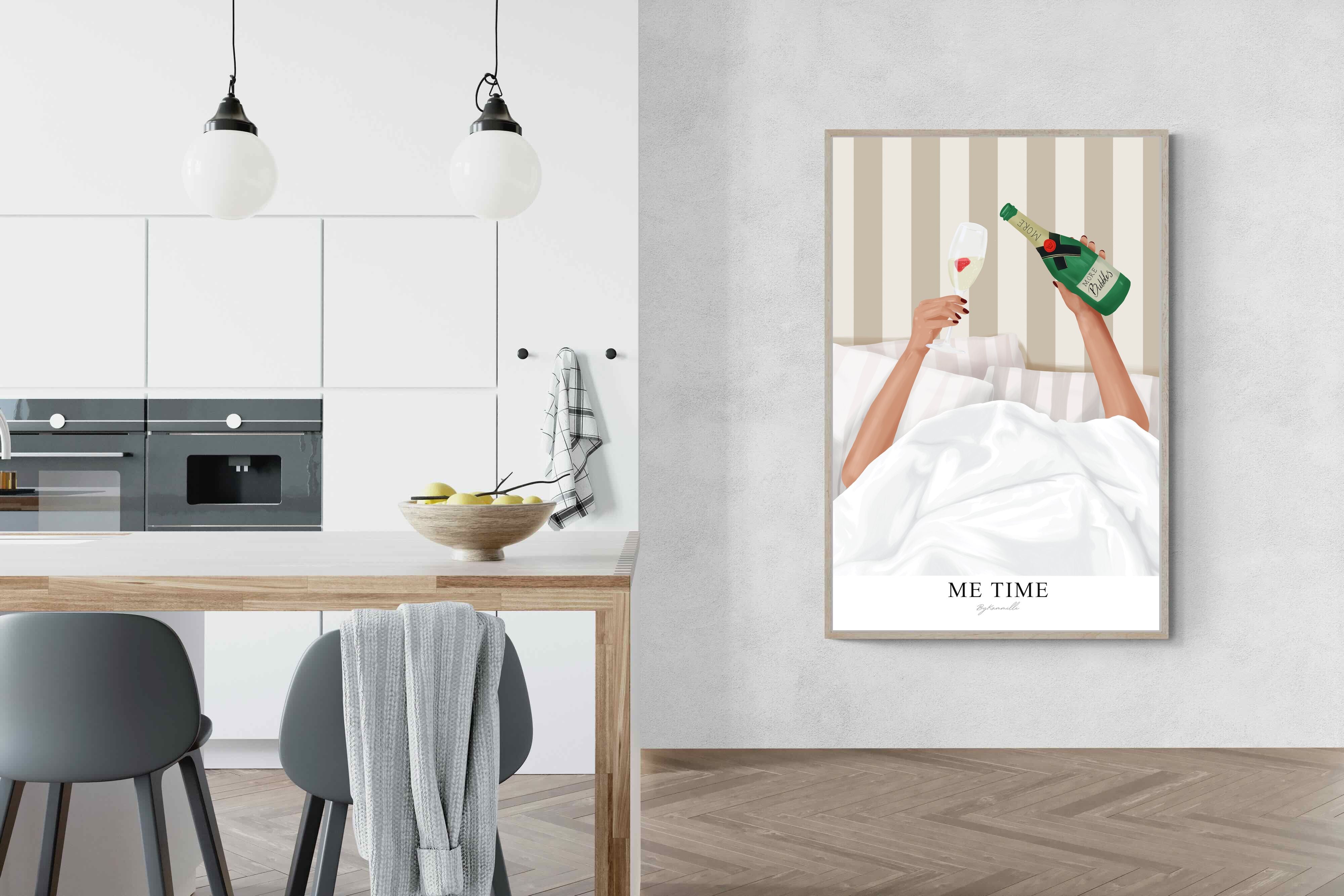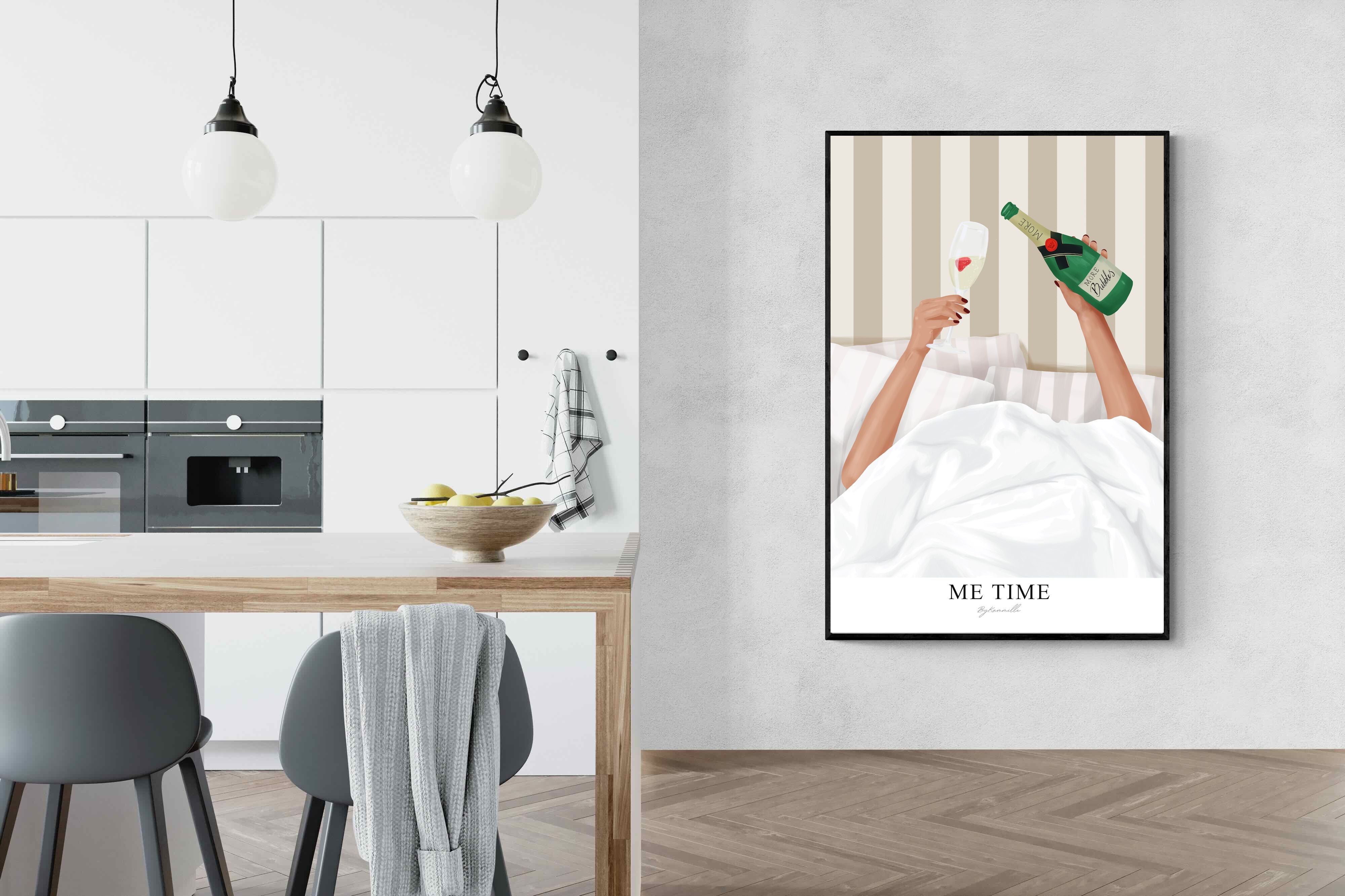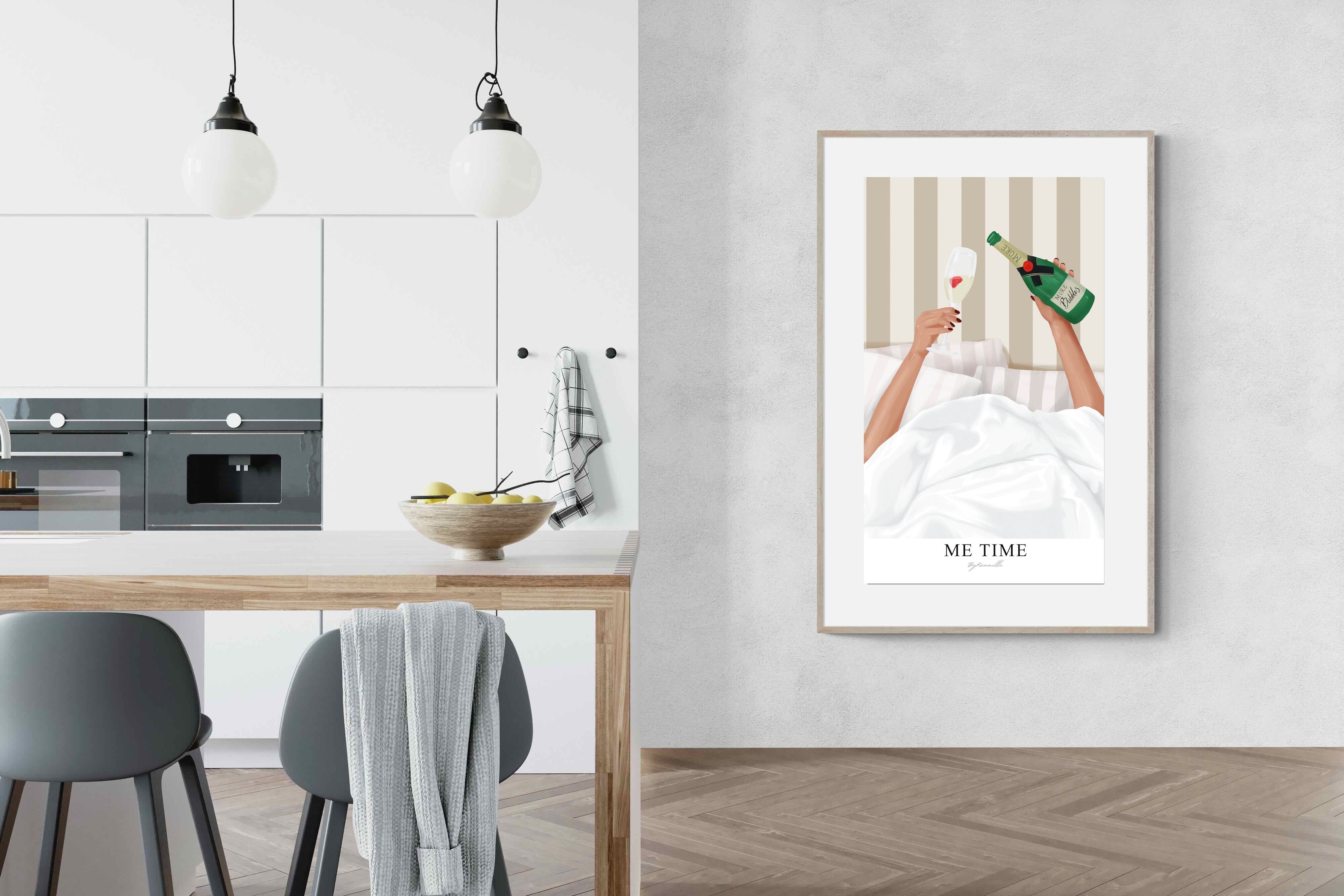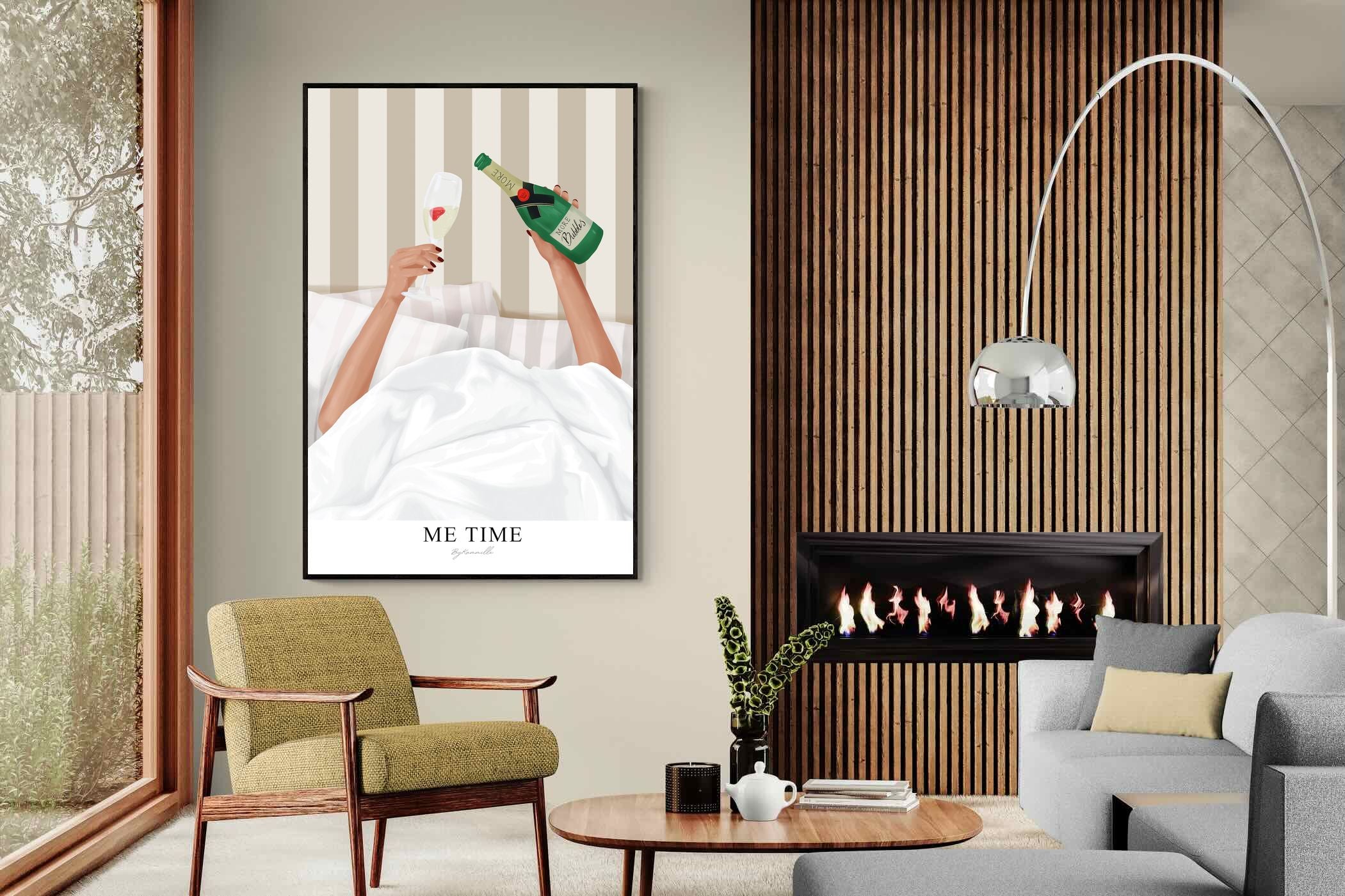 Me Time Wall Art – Champagne Illustration for Modern Bedrooms