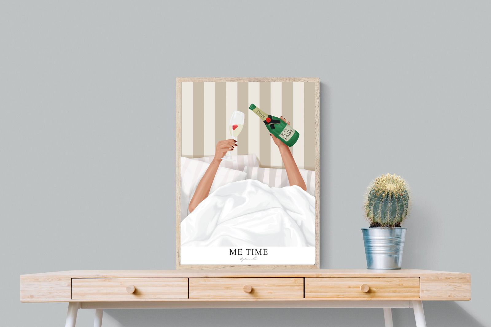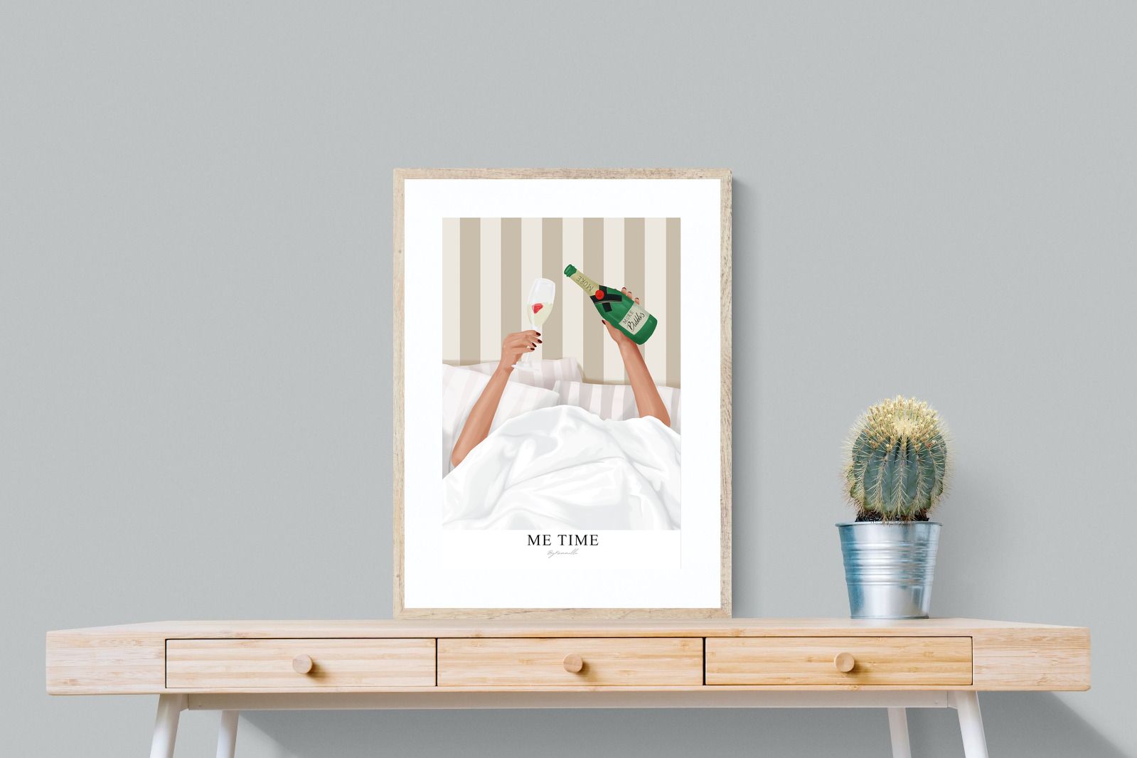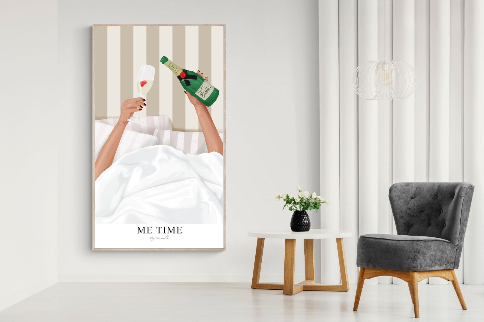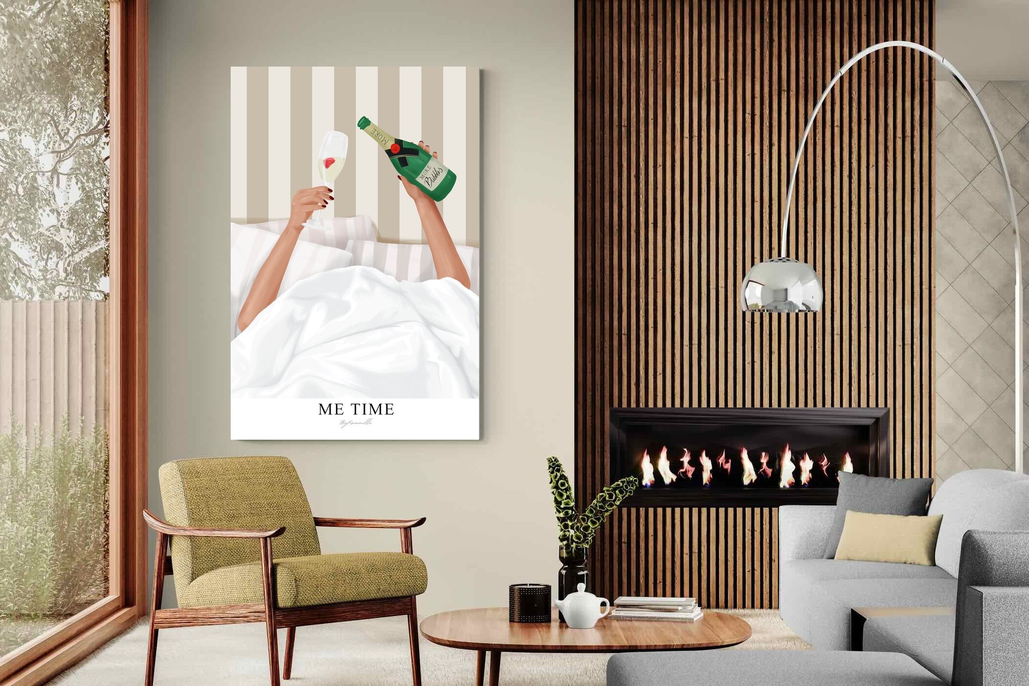 Me Time Wall Art – Champagne Illustration for Modern Bedrooms
