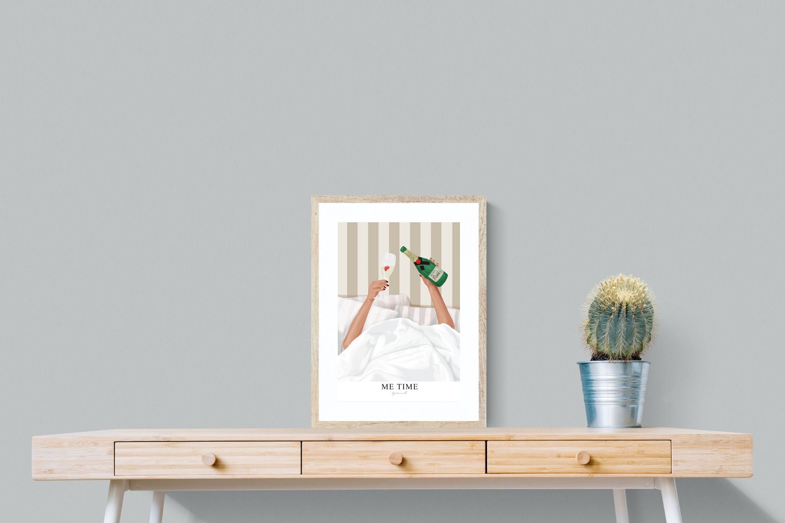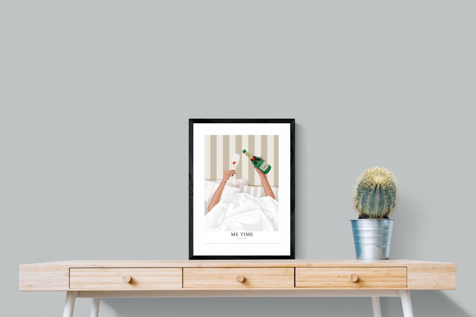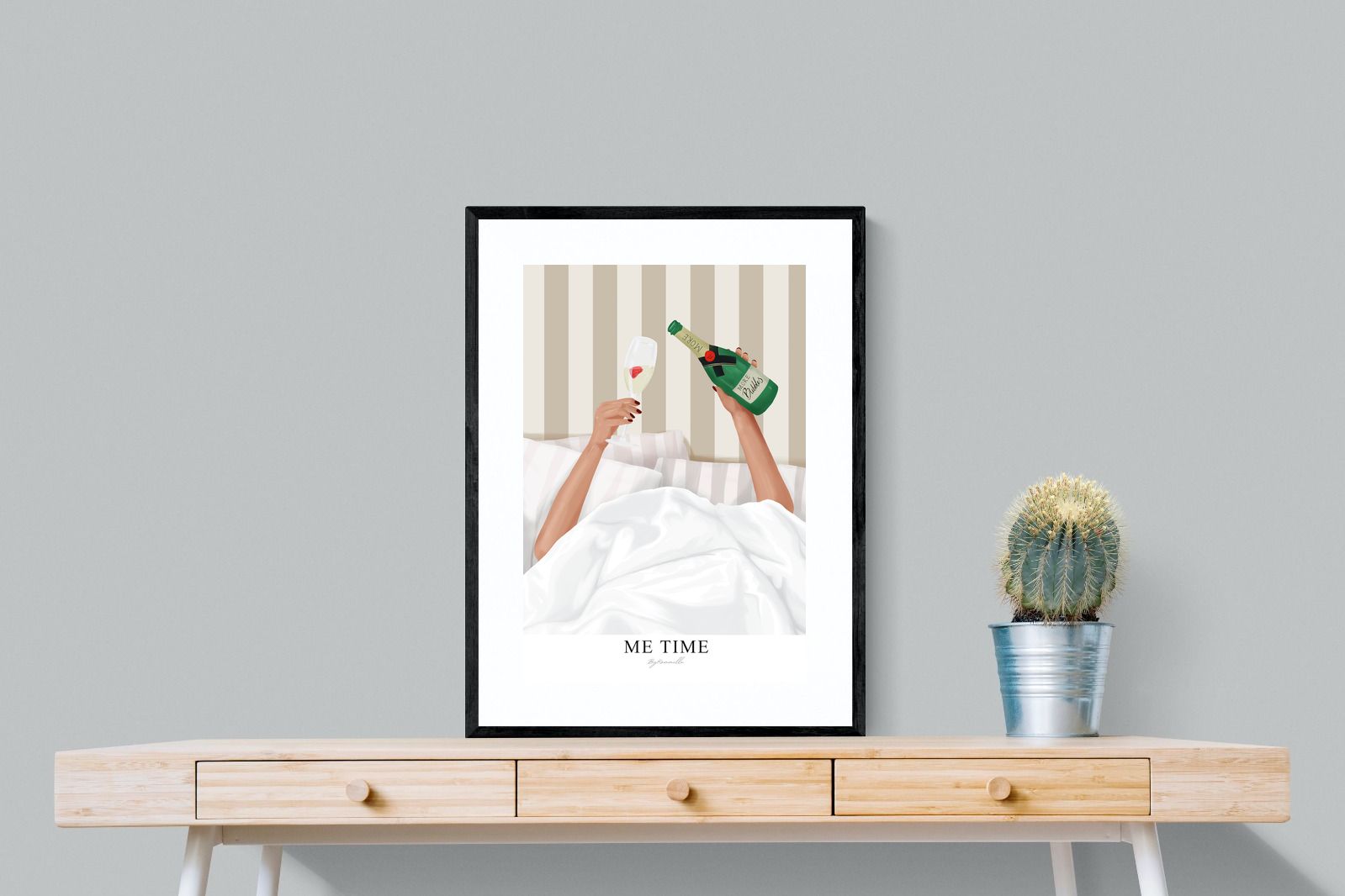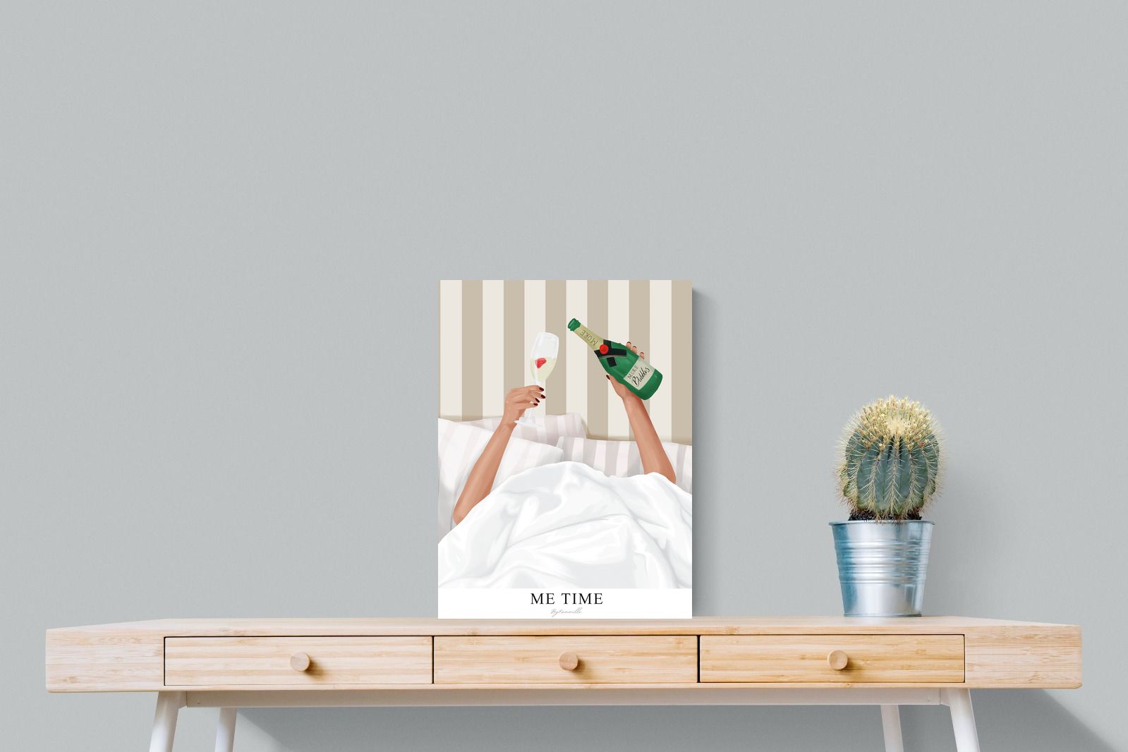 Me Time Wall Art – Champagne Illustration for Modern Bedrooms