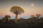 Dramatic Quiver Tree Landscape Print with Moonrise – African Desert Wall Art