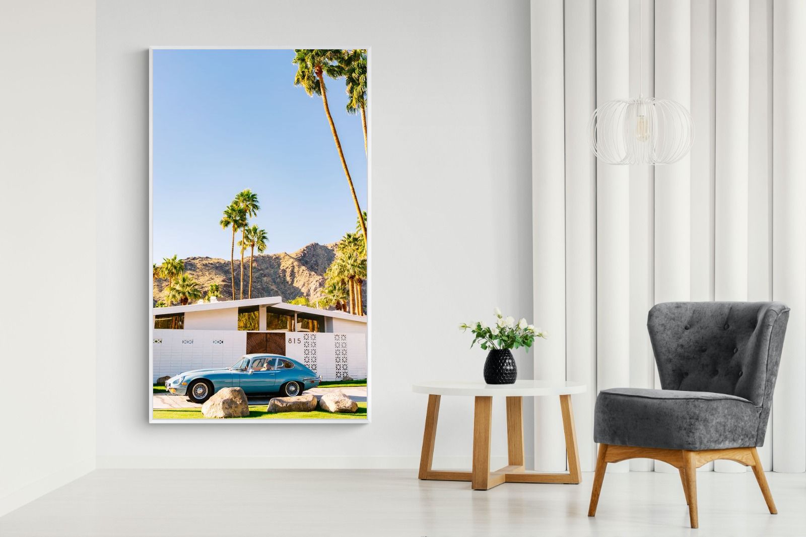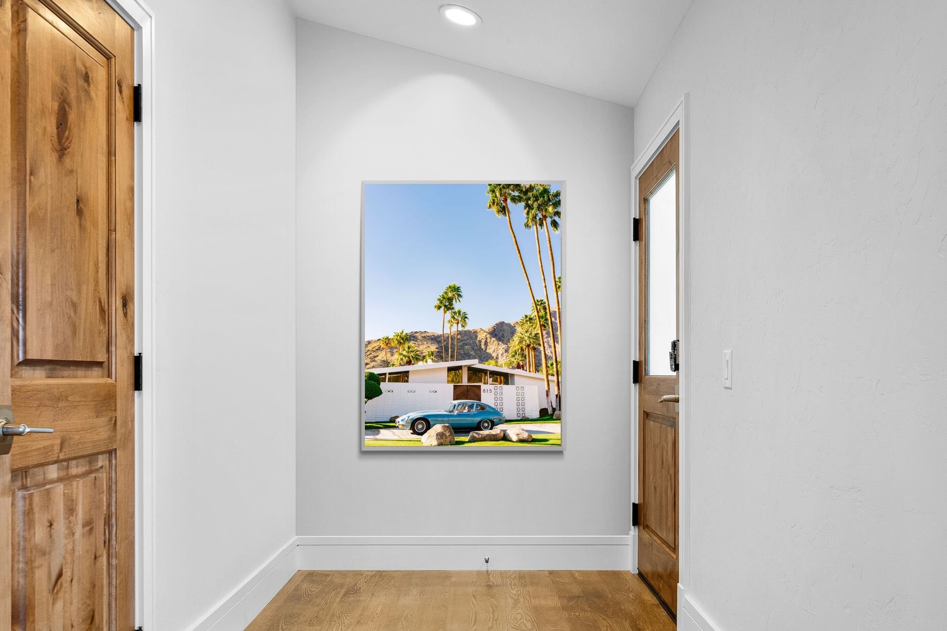 Jaguar E-Type at Palm Springs Mid-Century House – Retro Wall Art