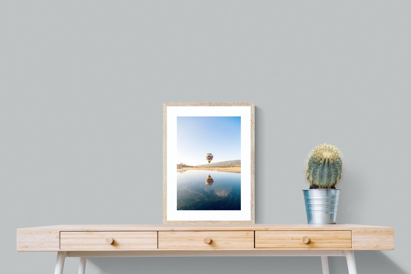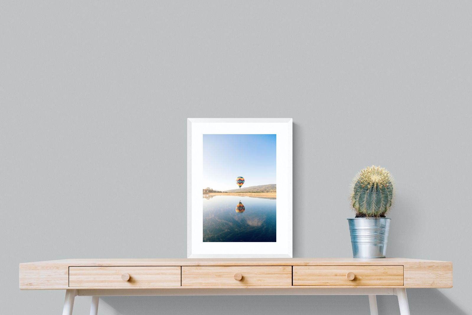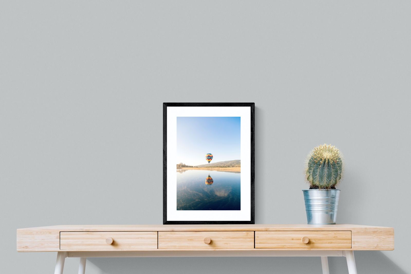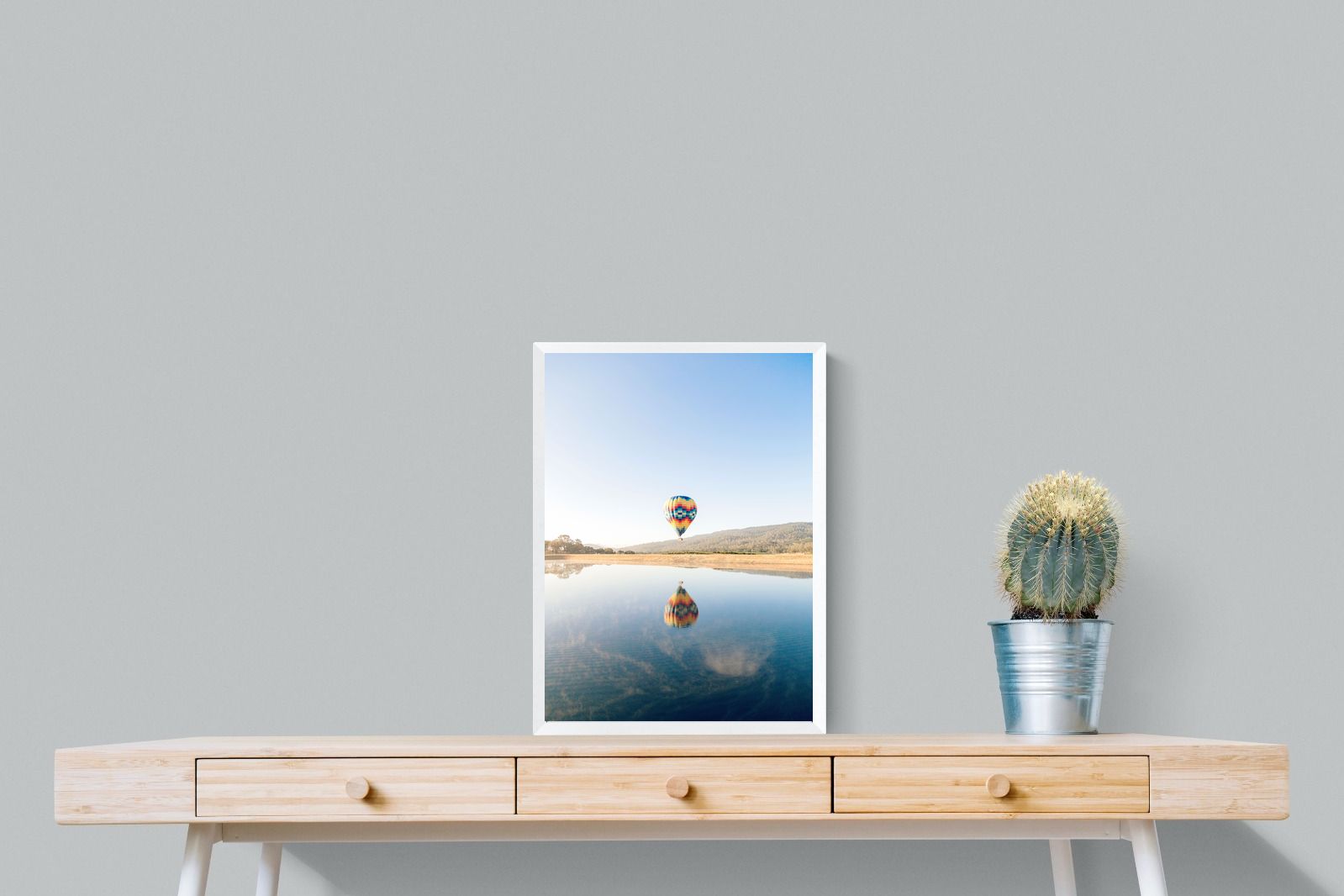 Colourful Hot Air Balloon Over Reflective Waters - Modern Wall Art