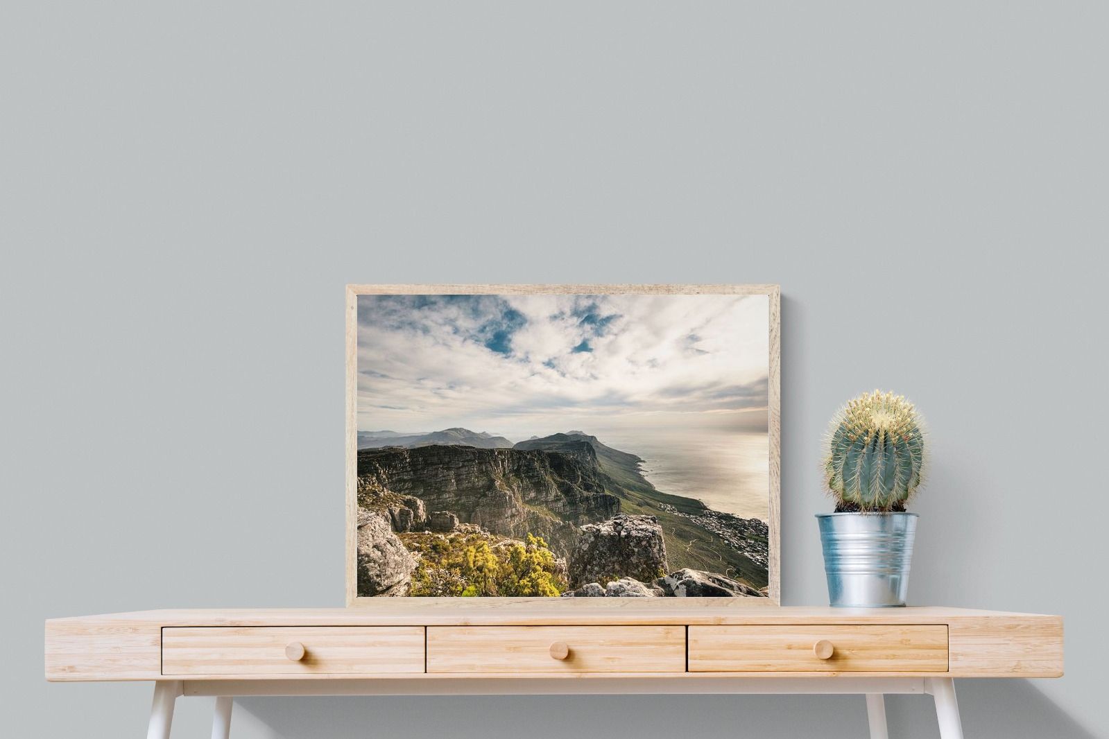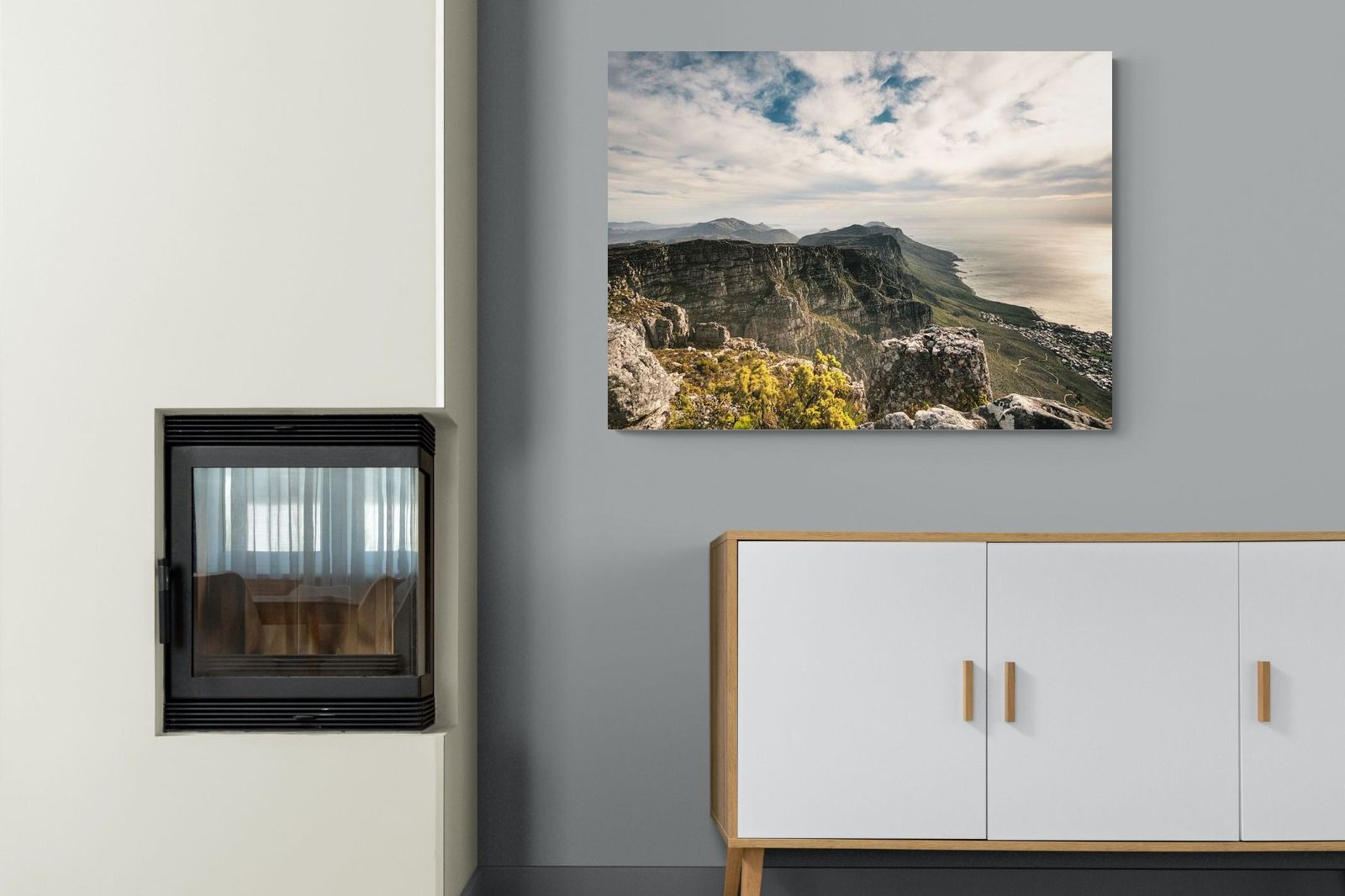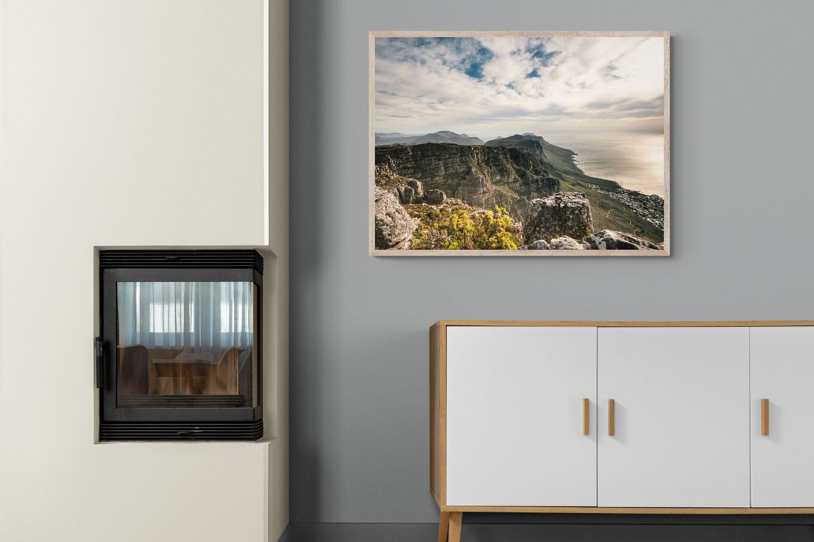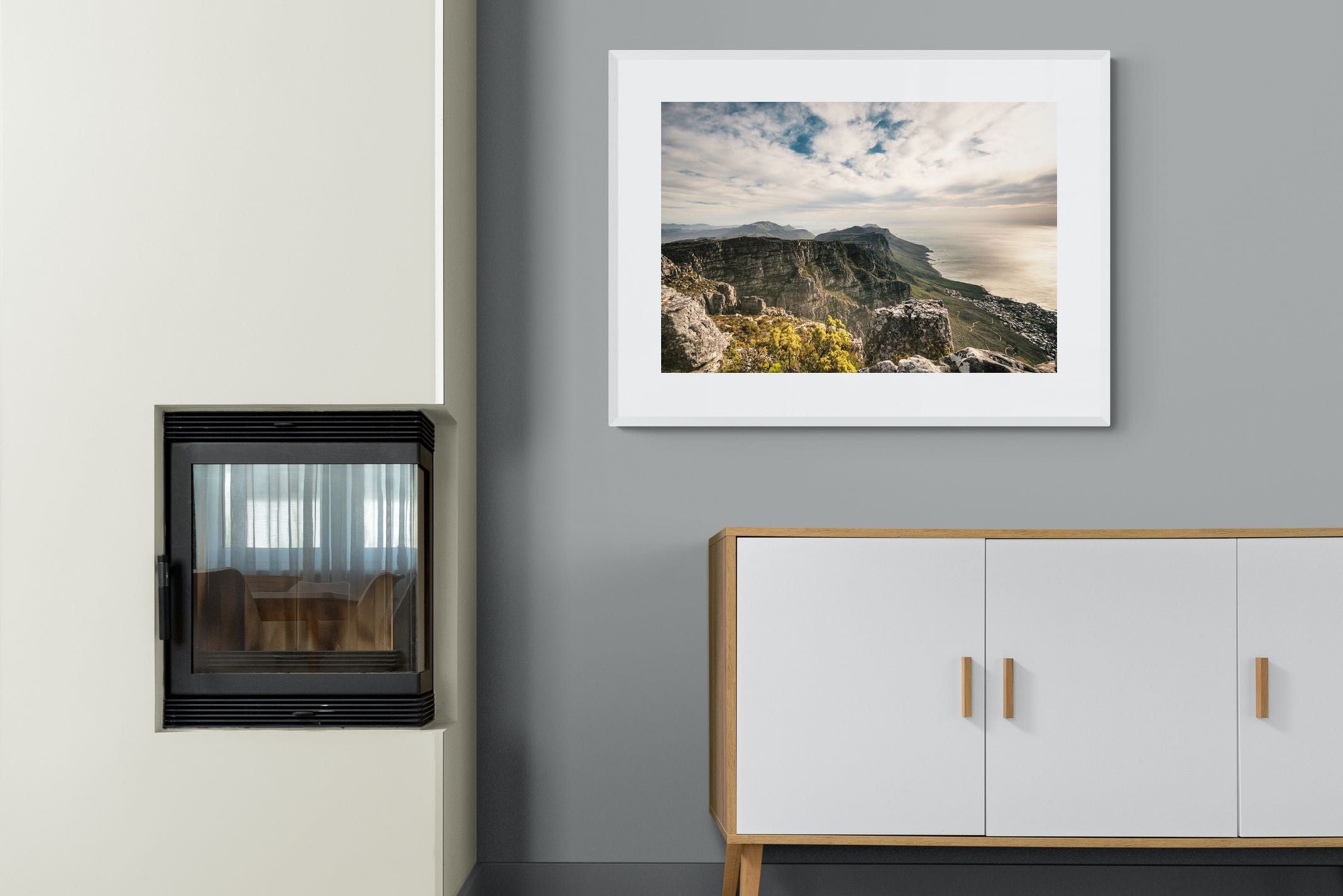 Showcasing the iconic cliffs of Cape Town’s Twelve Apostles, this sweeping aerial landscape is a tribute to South Africa’s rugged coast. Bathed in natural light with rolling hills and ocean below, it brings a sense of vastness and freedom. Ideal for living rooms or offices, this print inspires adventure and appreciation for dramatic scenery. A perfect choice for nature lovers or Cape Town enthusiasts.