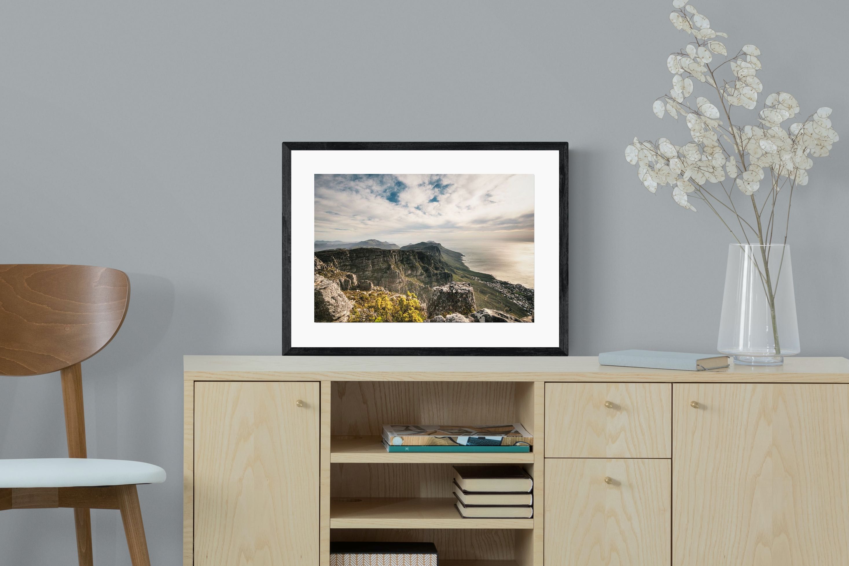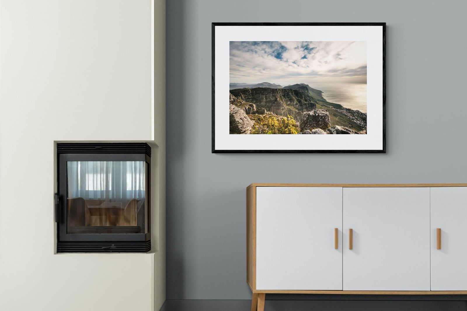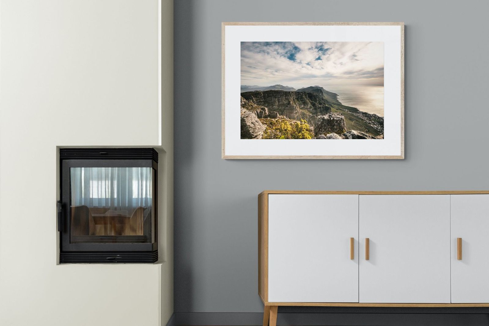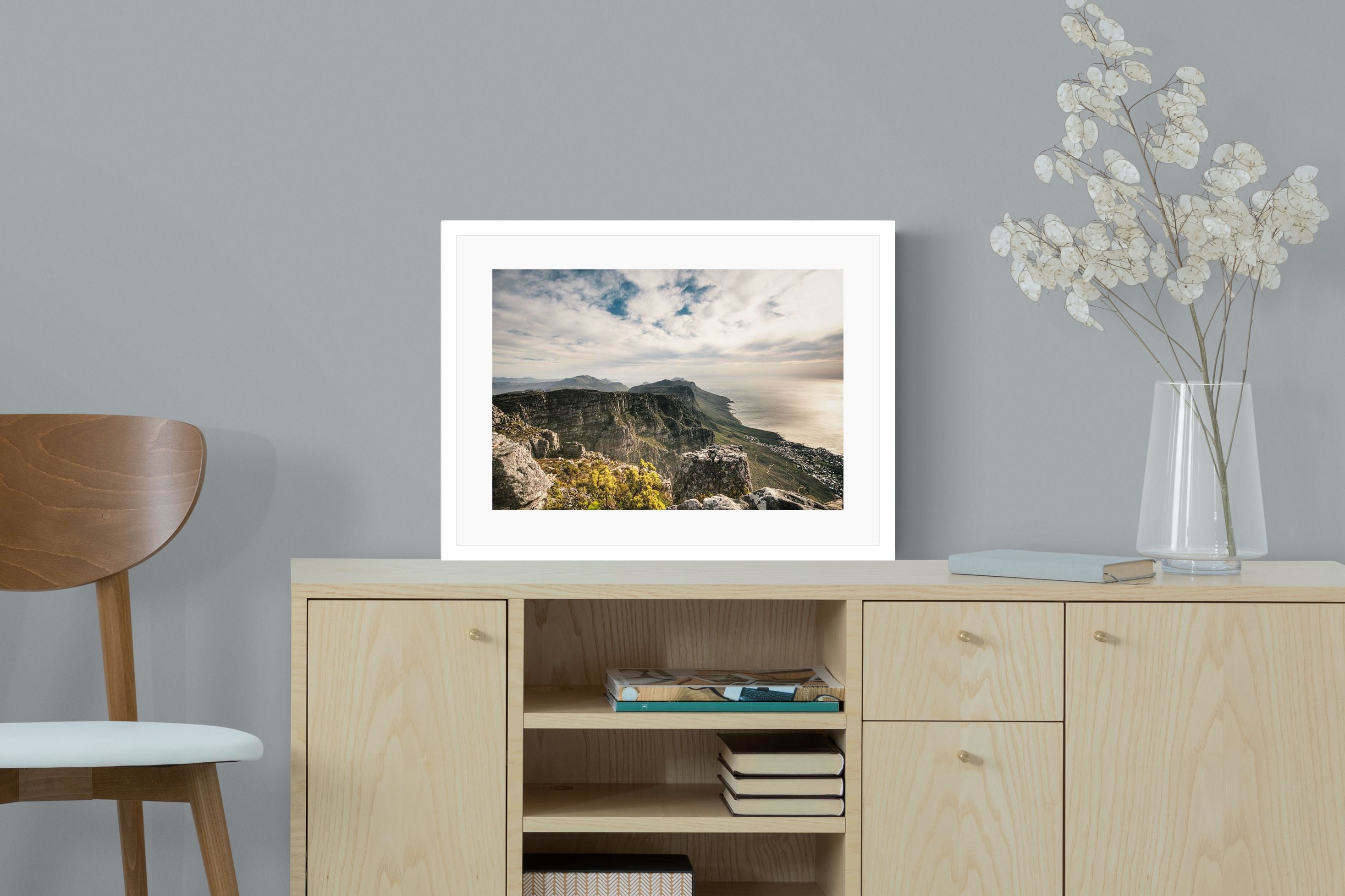 Showcasing the iconic cliffs of Cape Town’s Twelve Apostles, this sweeping aerial landscape is a tribute to South Africa’s rugged coast. Bathed in natural light with rolling hills and ocean below, it brings a sense of vastness and freedom. Ideal for living rooms or offices, this print inspires adventure and appreciation for dramatic scenery. A perfect choice for nature lovers or Cape Town enthusiasts.
