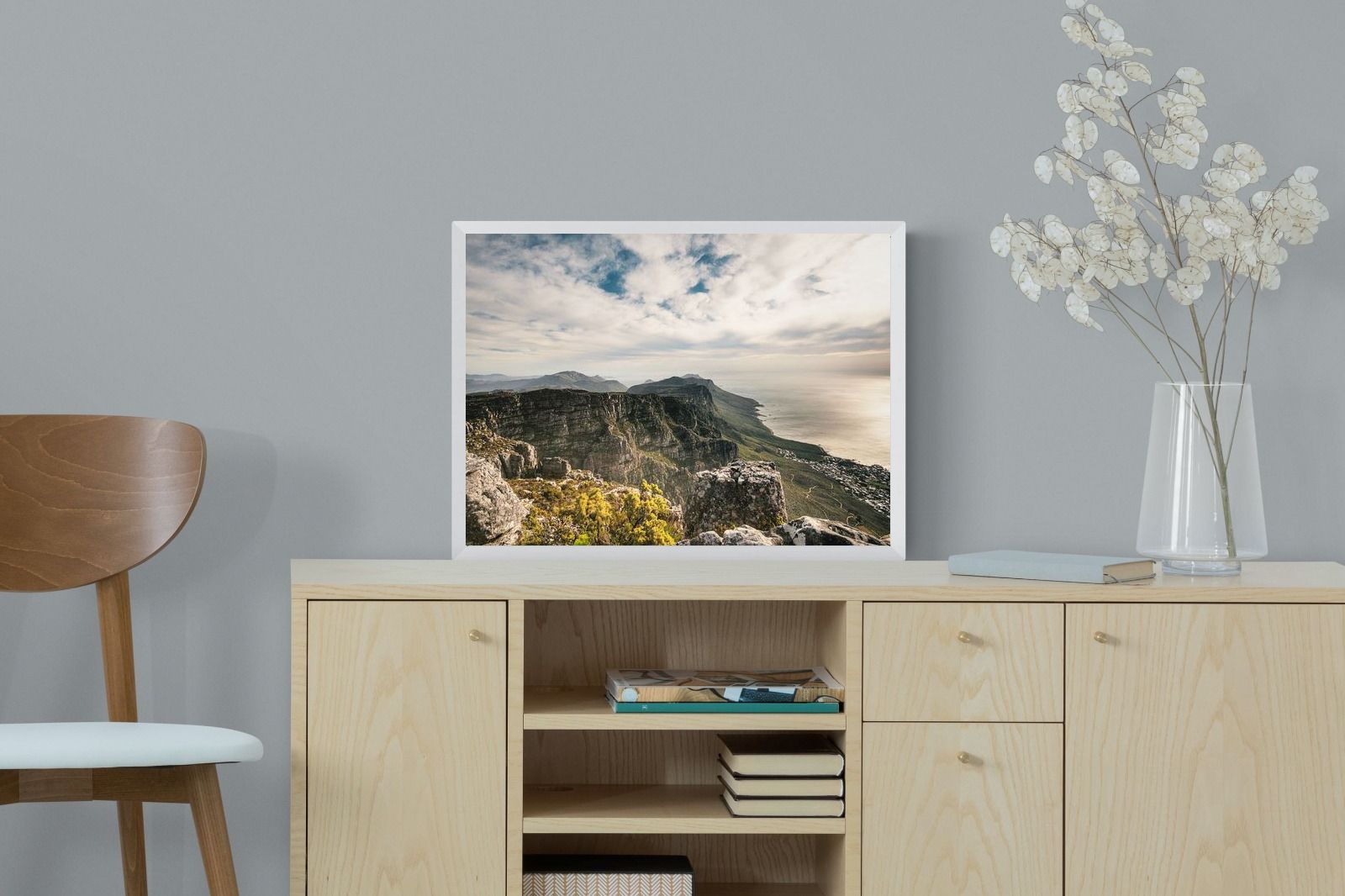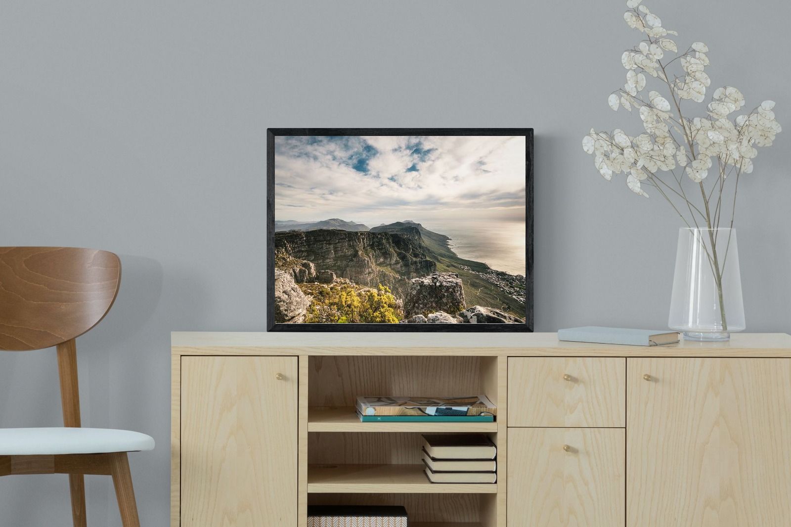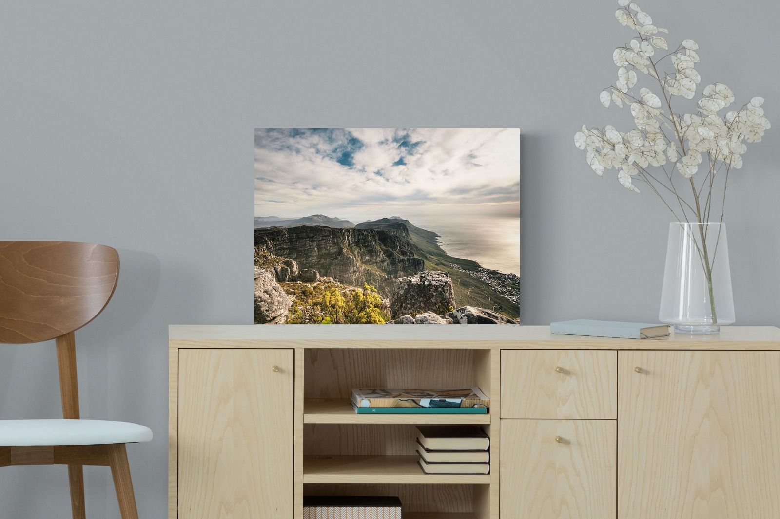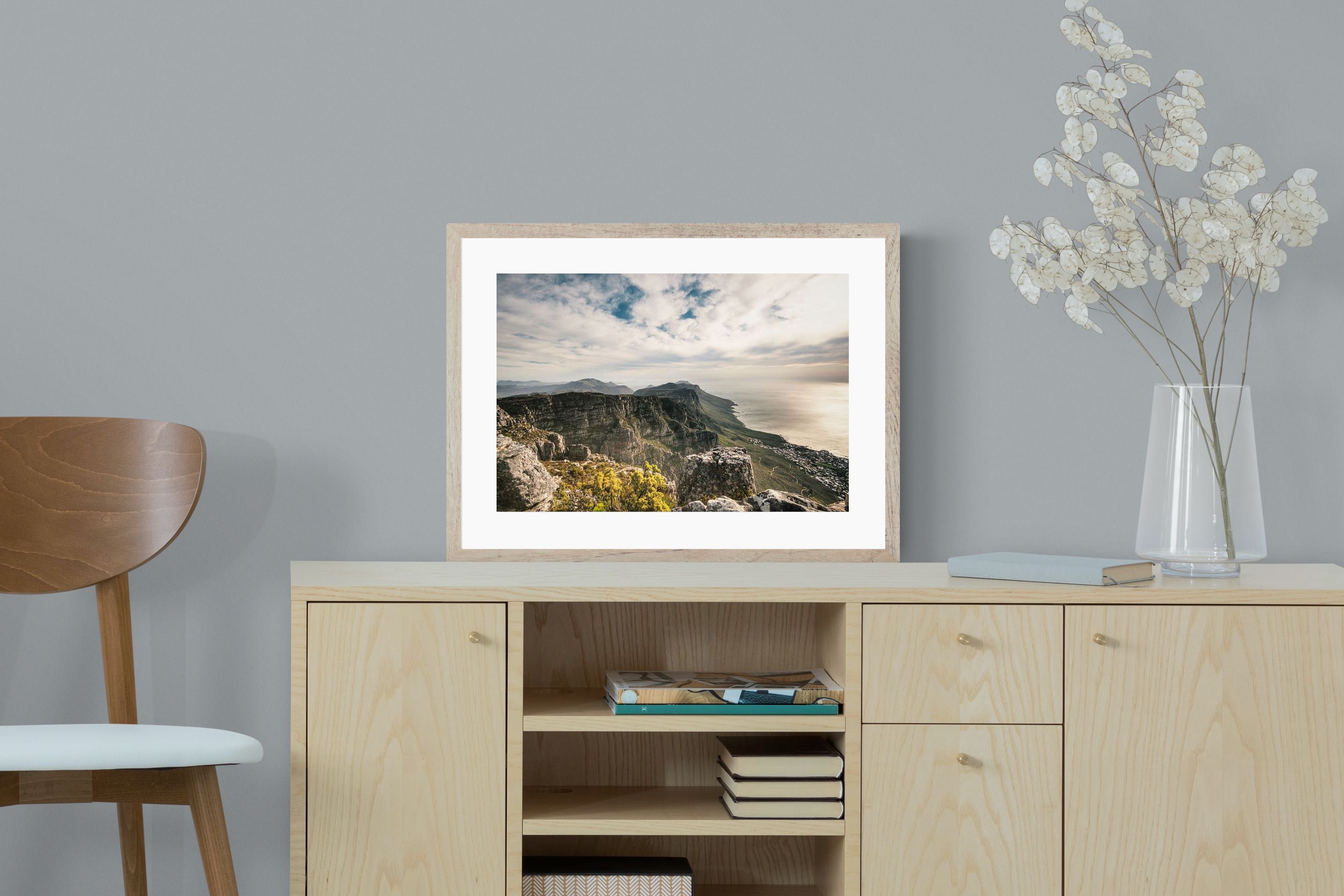 Showcasing the iconic cliffs of Cape Town’s Twelve Apostles, this sweeping aerial landscape is a tribute to South Africa’s rugged coast. Bathed in natural light with rolling hills and ocean below, it brings a sense of vastness and freedom. Ideal for living rooms or offices, this print inspires adventure and appreciation for dramatic scenery. A perfect choice for nature lovers or Cape Town enthusiasts.