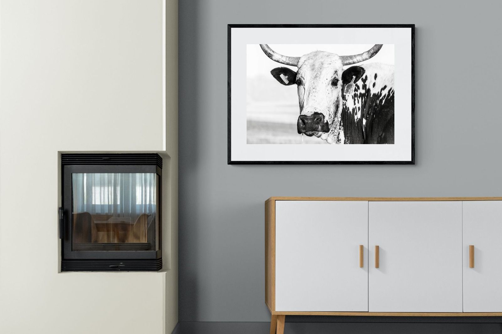 Our ready-to-hang mounted canvas offers exceptional quality, enhancing the stark contrasts and detailed textures of the Nguni bull. To explore more about this option, watch this short video. Complement the canvas with a modern floating frame, available in black, white, or natural wood, to match your existing decor.