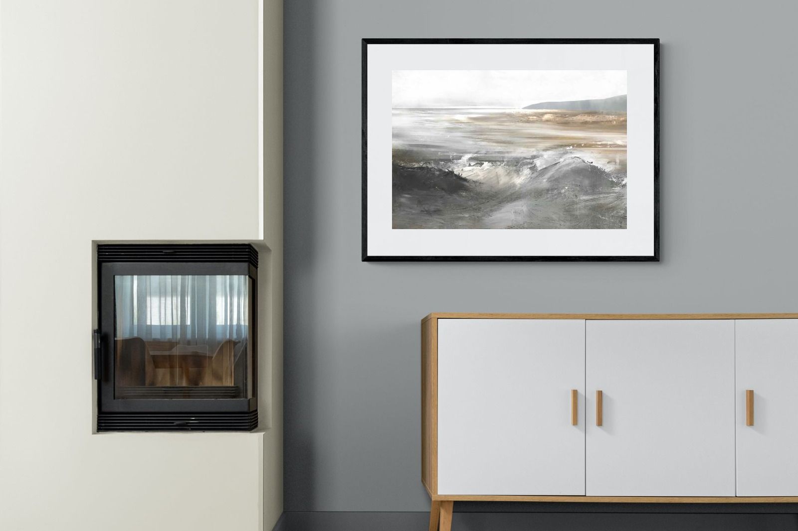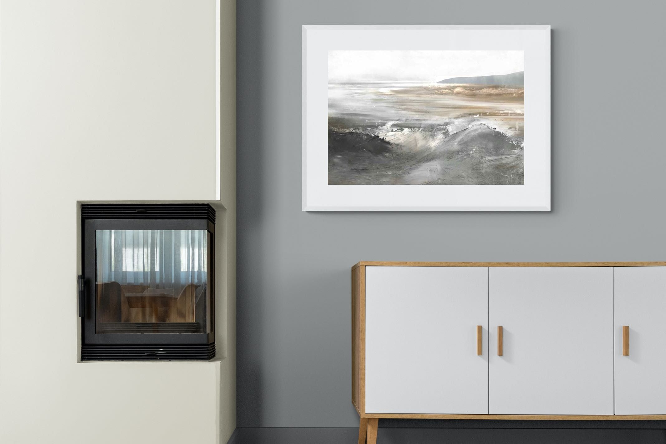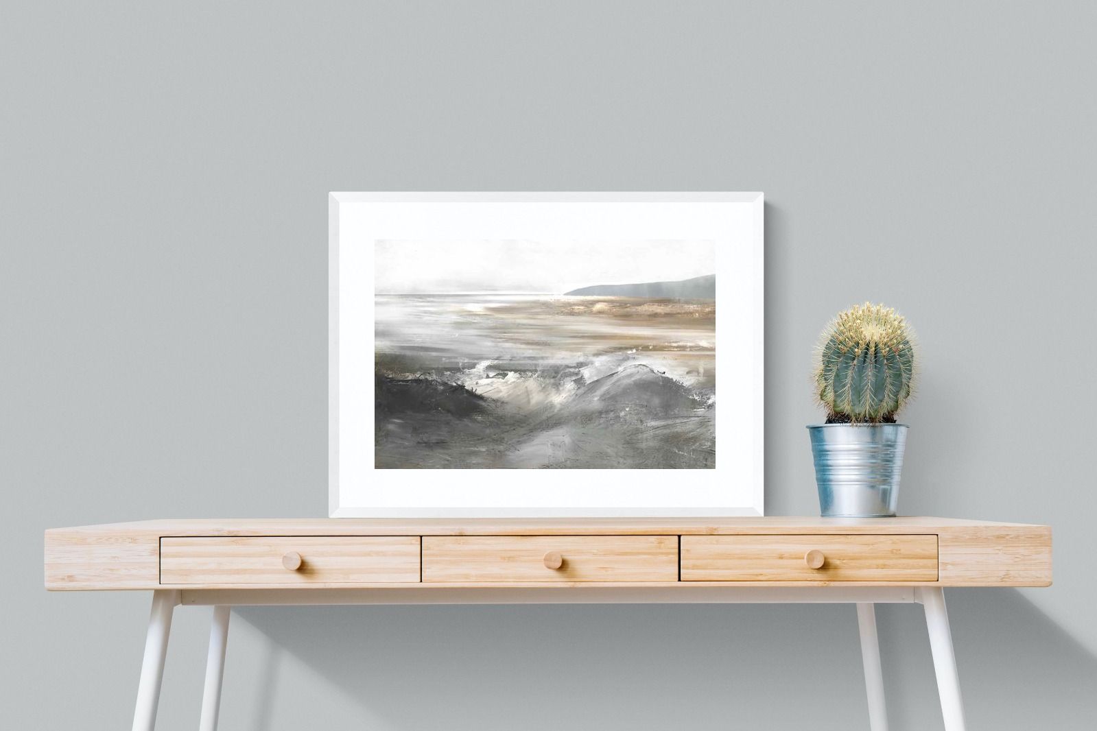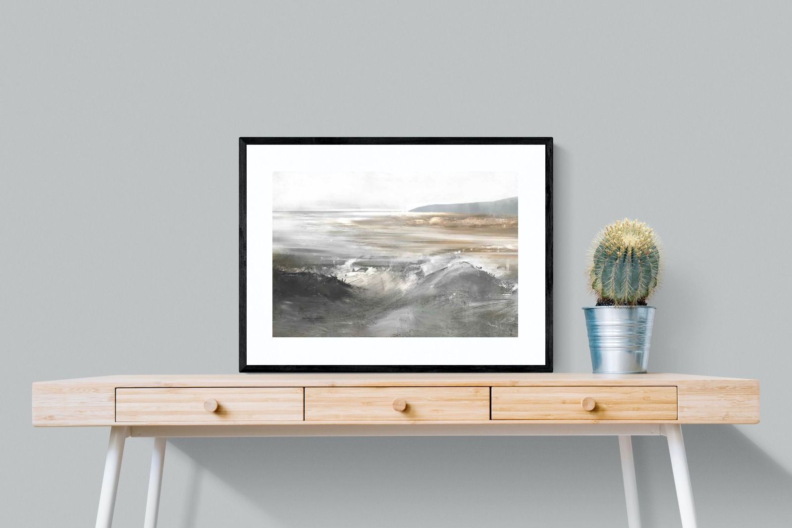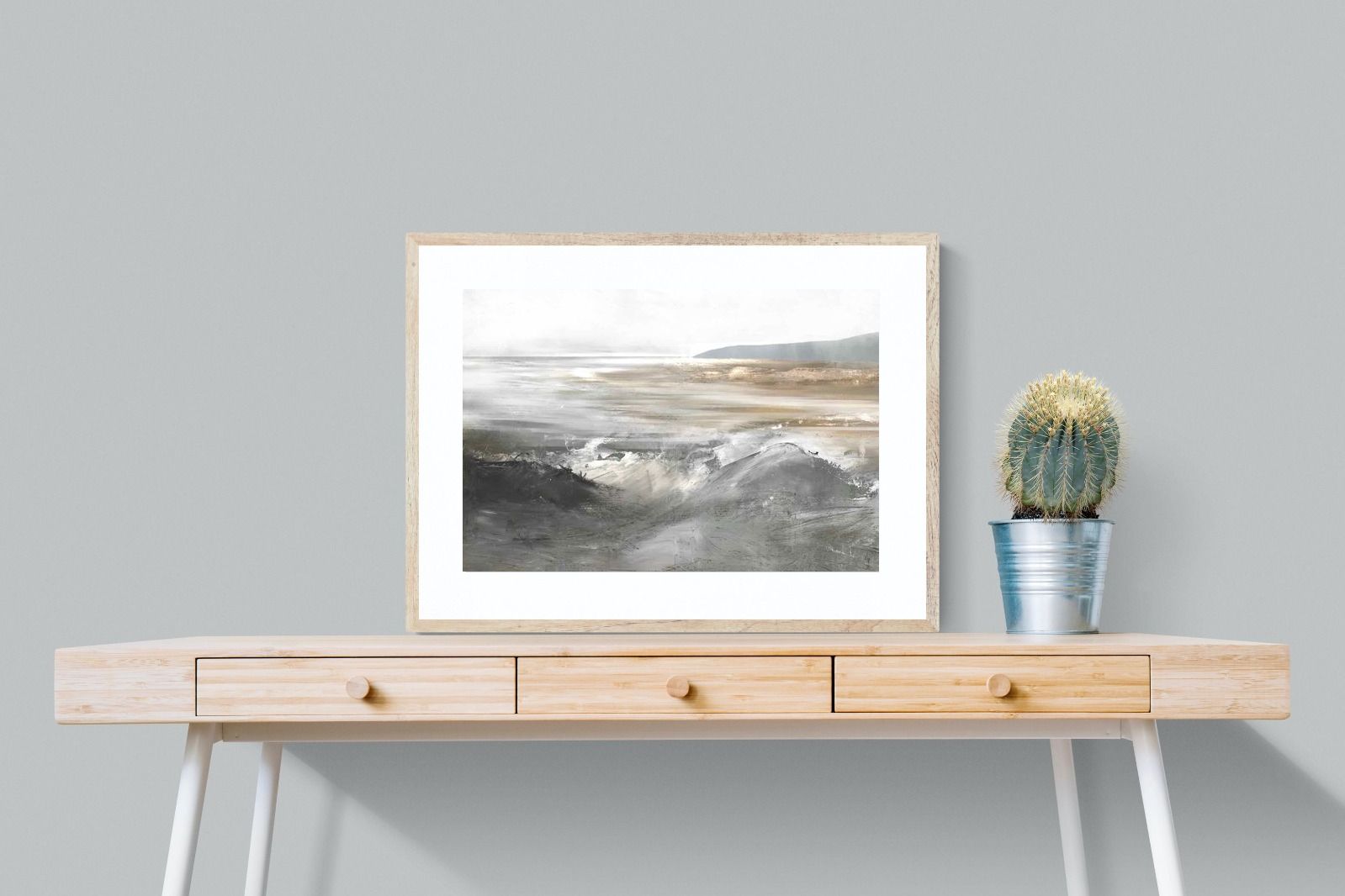 Evoking the feeling of a coastal landscape, this artwork uses soft gradients and a restrained colour palette to depict the interaction between land and sea. The impressionistic style and gentle transitions of colour suggest the calm of a distant shore. Its subtlety and abstract quality make it a versatile addition to contemporary homes, providing a serene and reflective atmosphere suitable for a variety of spaces.