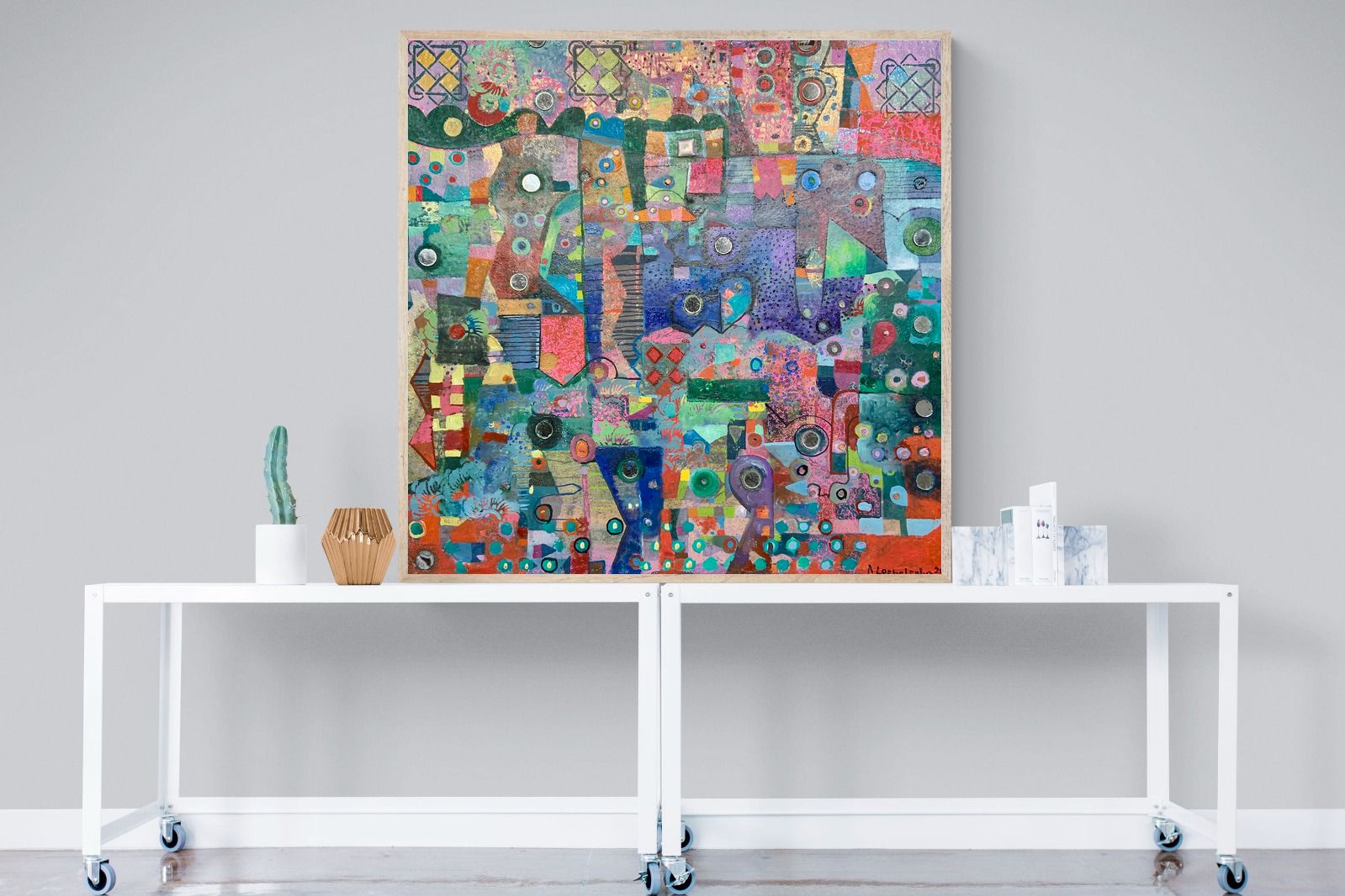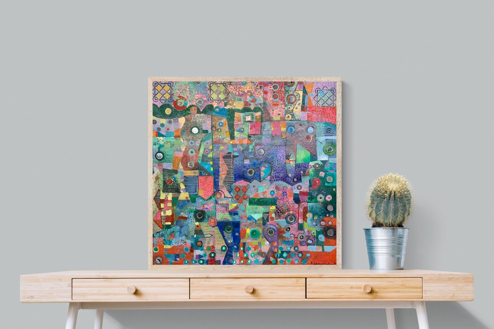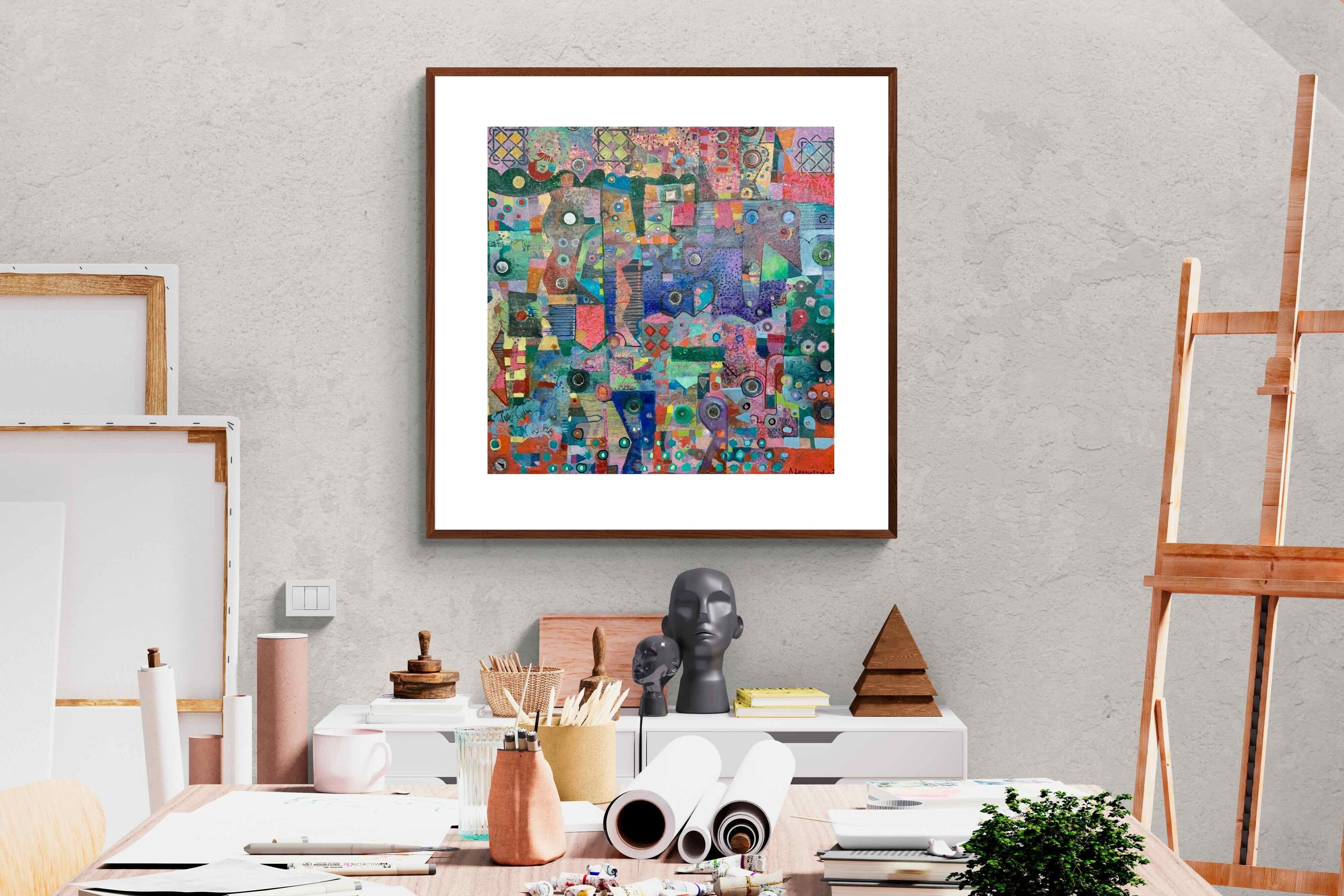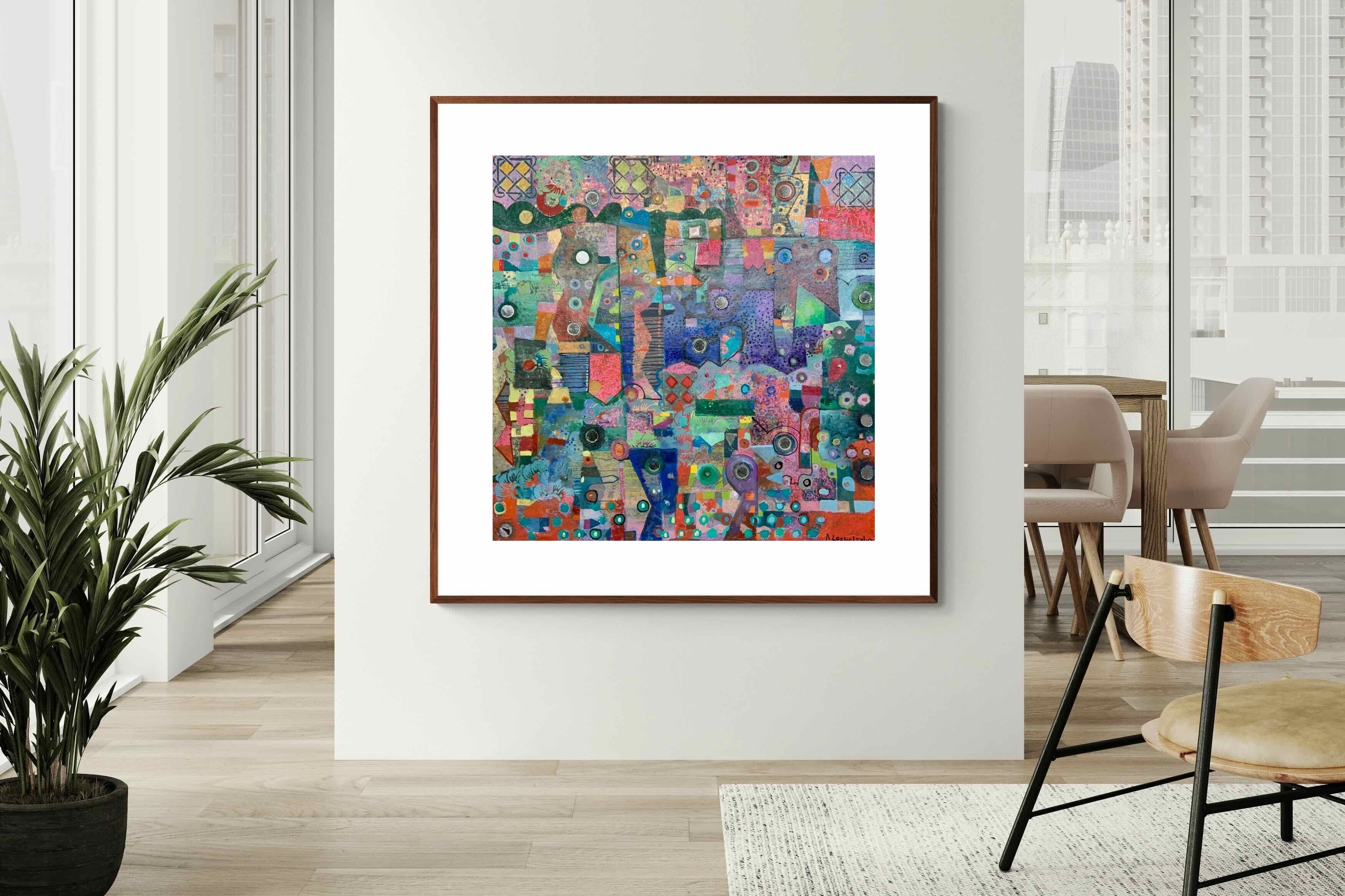 Introducing "Blue Mirrors" Wall Art by Alise Loebelsohn, a captivating and intricate painting in the style of Gustav Klimt, featuring mesmerising circles and square shapes. This colourful piece showcases Alise Loebelsohn's incredible talent and is a unique addition to any home. Available as both a framed glass piece and a mounted canvas, "Blue Mirrors" can effortlessly adapt to any home decor style.
