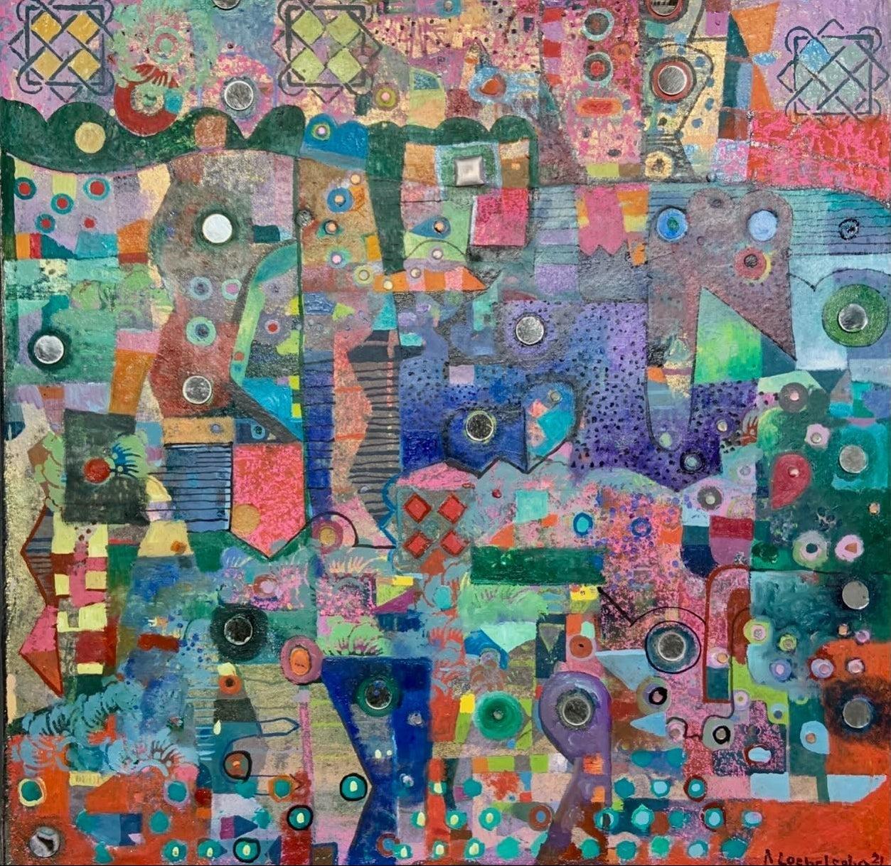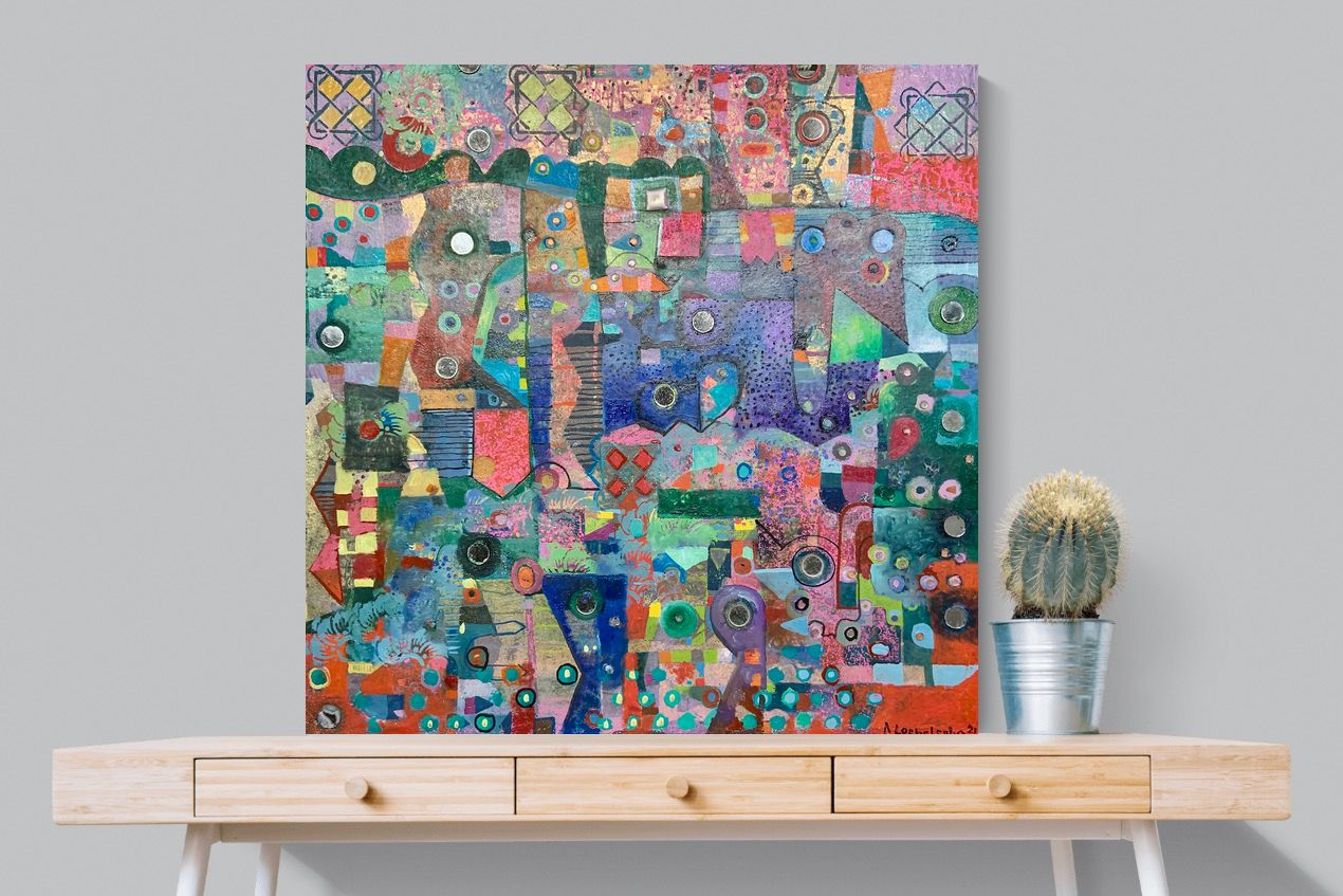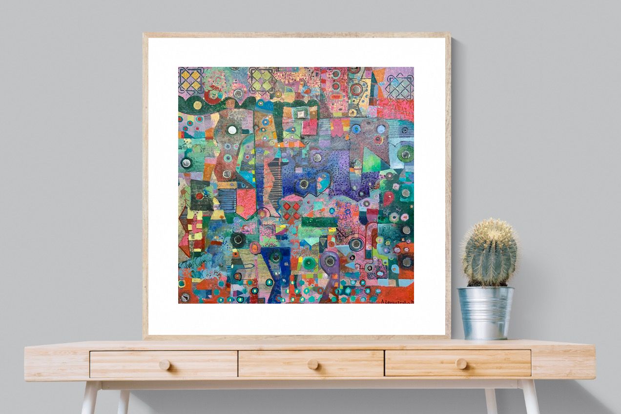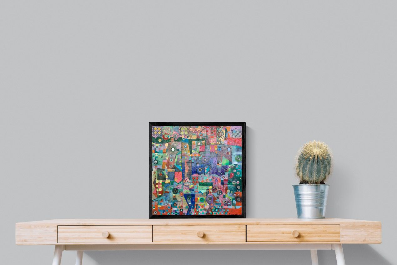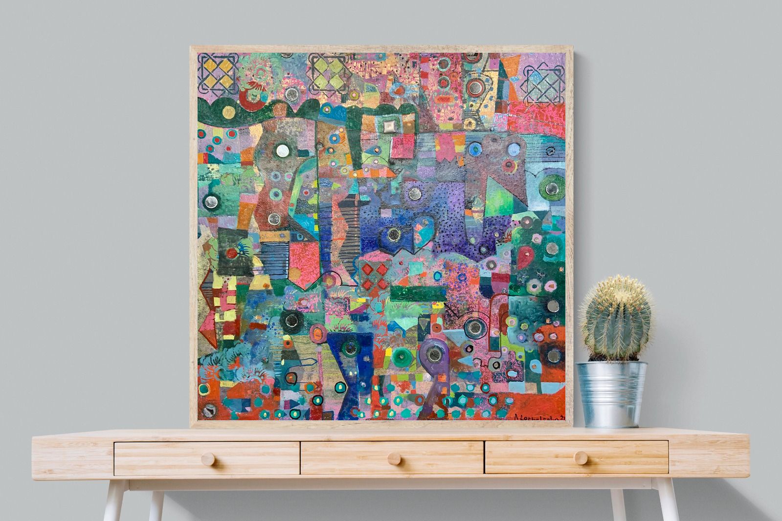 Introducing "Blue Mirrors" Wall Art by Alise Loebelsohn, a captivating and intricate painting in the style of Gustav Klimt, featuring mesmerising circles and square shapes. This colourful piece showcases Alise Loebelsohn's incredible talent and is a unique addition to any home. Available as both a framed glass piece and a mounted canvas, "Blue Mirrors" can effortlessly adapt to any home decor style.