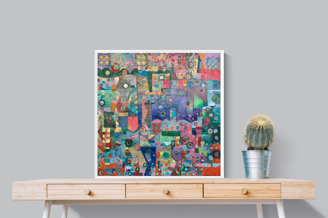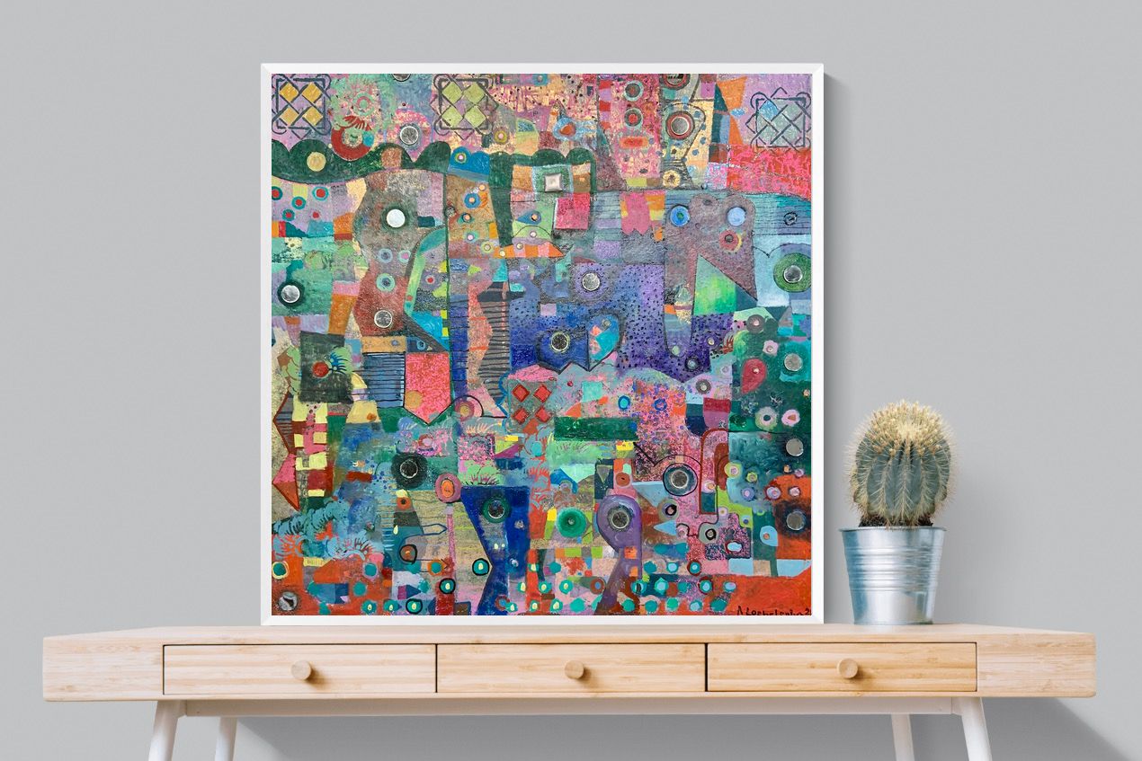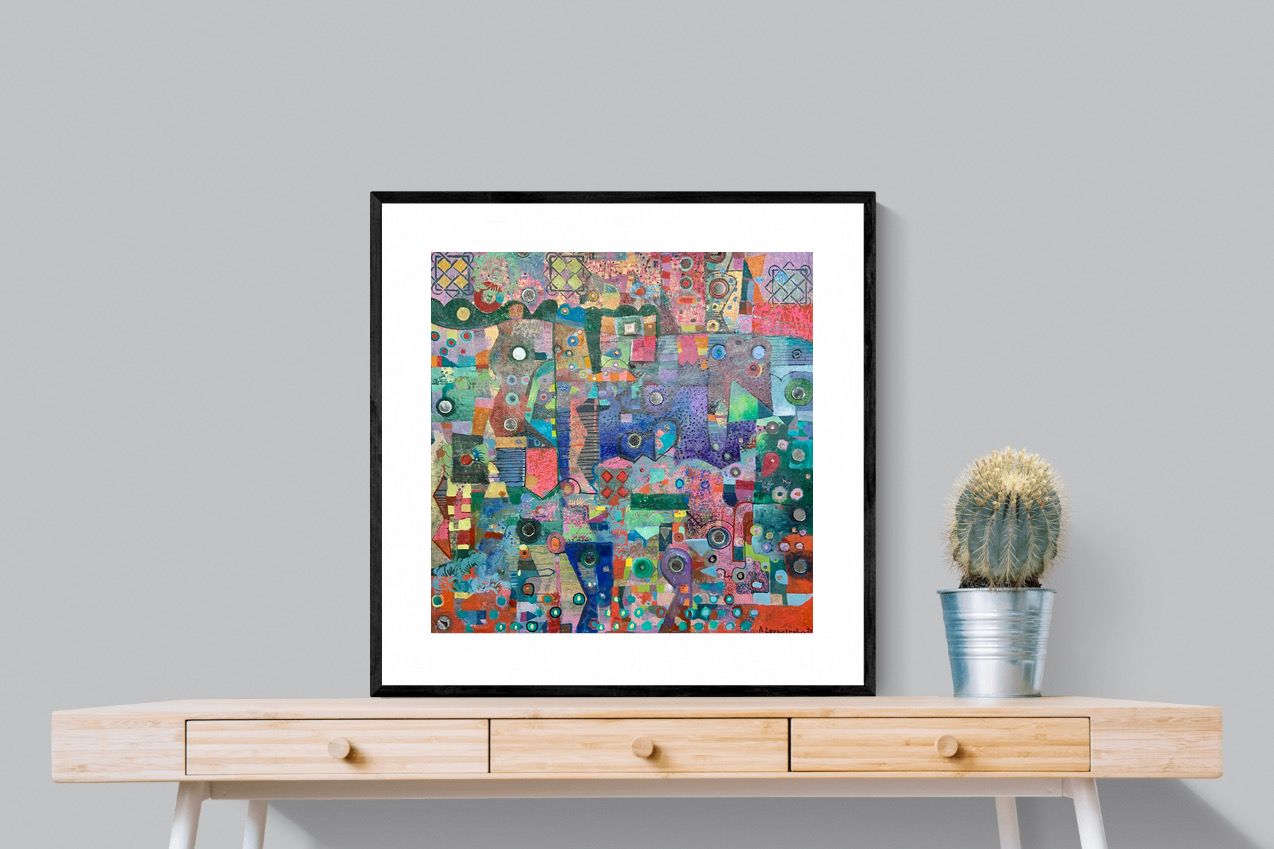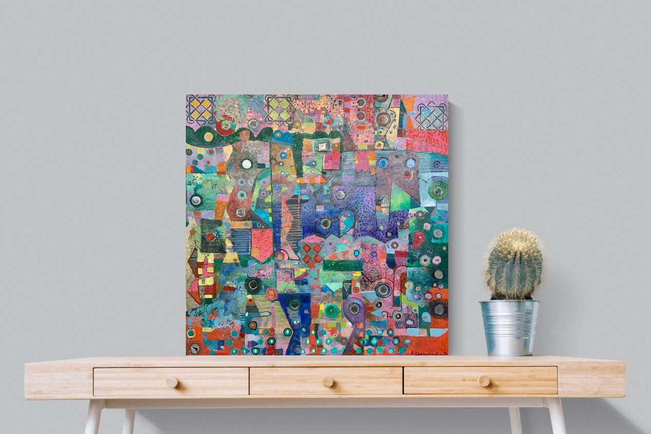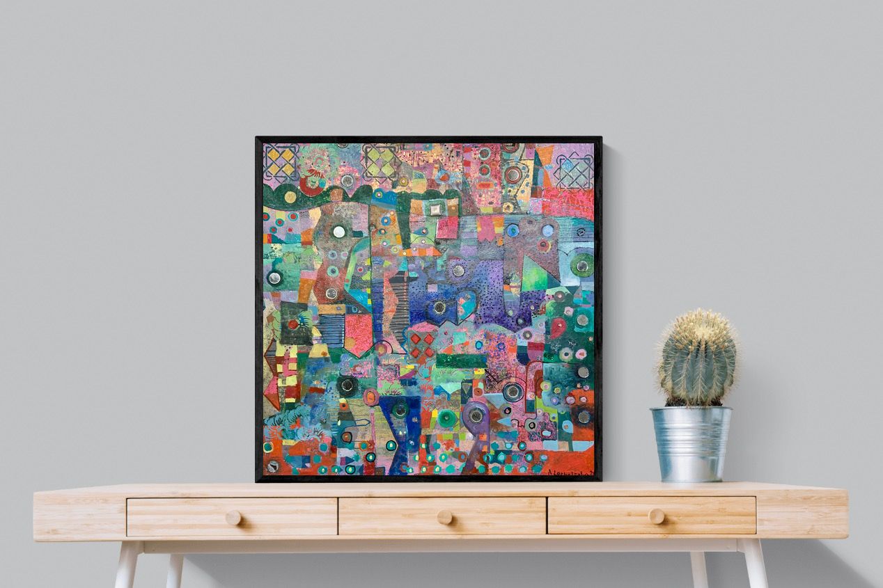 Introducing "Blue Mirrors" Wall Art by Alise Loebelsohn, a captivating and intricate painting in the style of Gustav Klimt, featuring mesmerising circles and square shapes. This colourful piece showcases Alise Loebelsohn's incredible talent and is a unique addition to any home. Available as both a framed glass piece and a mounted canvas, "Blue Mirrors" can effortlessly adapt to any home decor style.