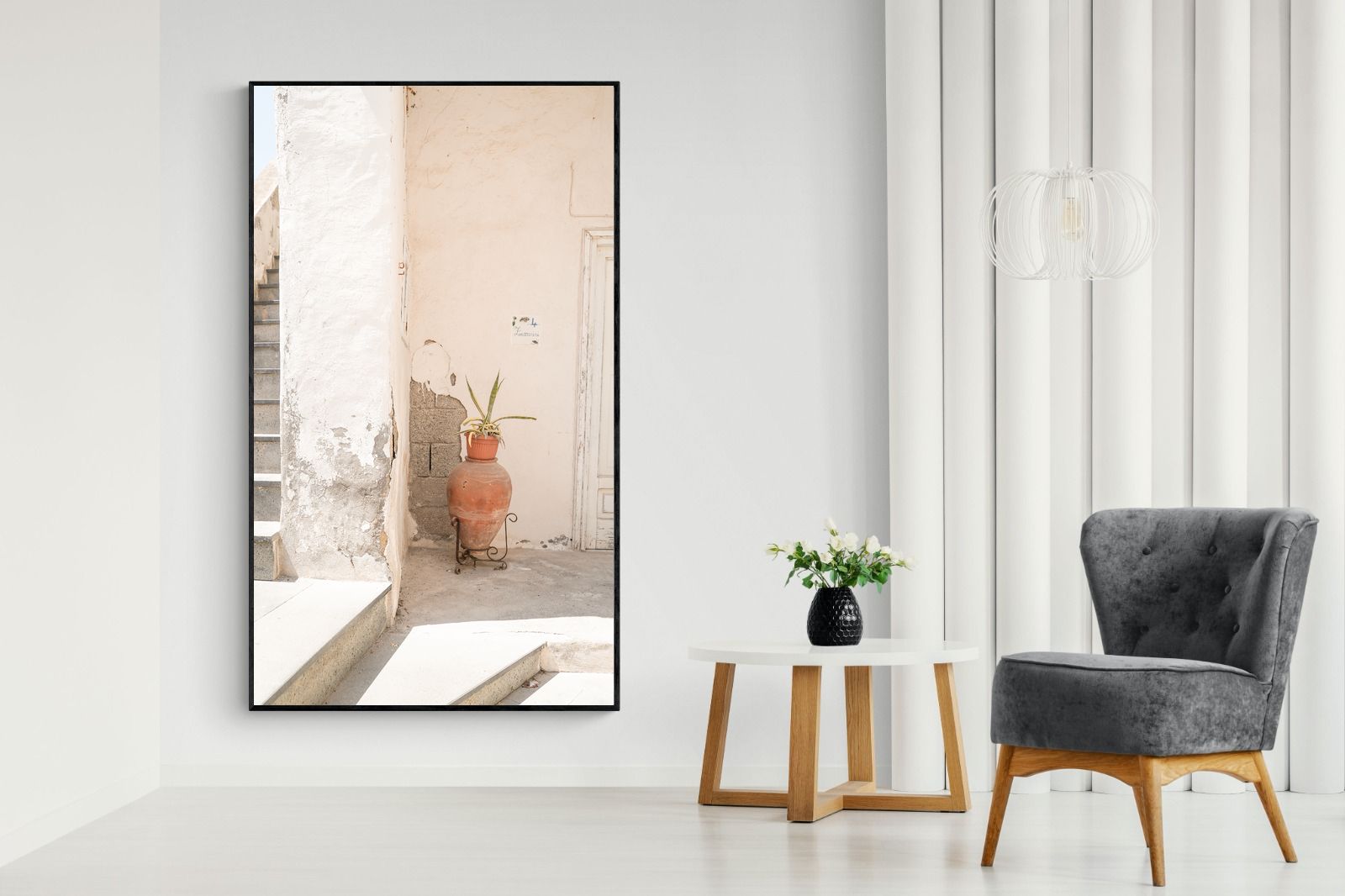 Terracotta Pot Wall Art – Mediterranean Staircase & Architectural Detail