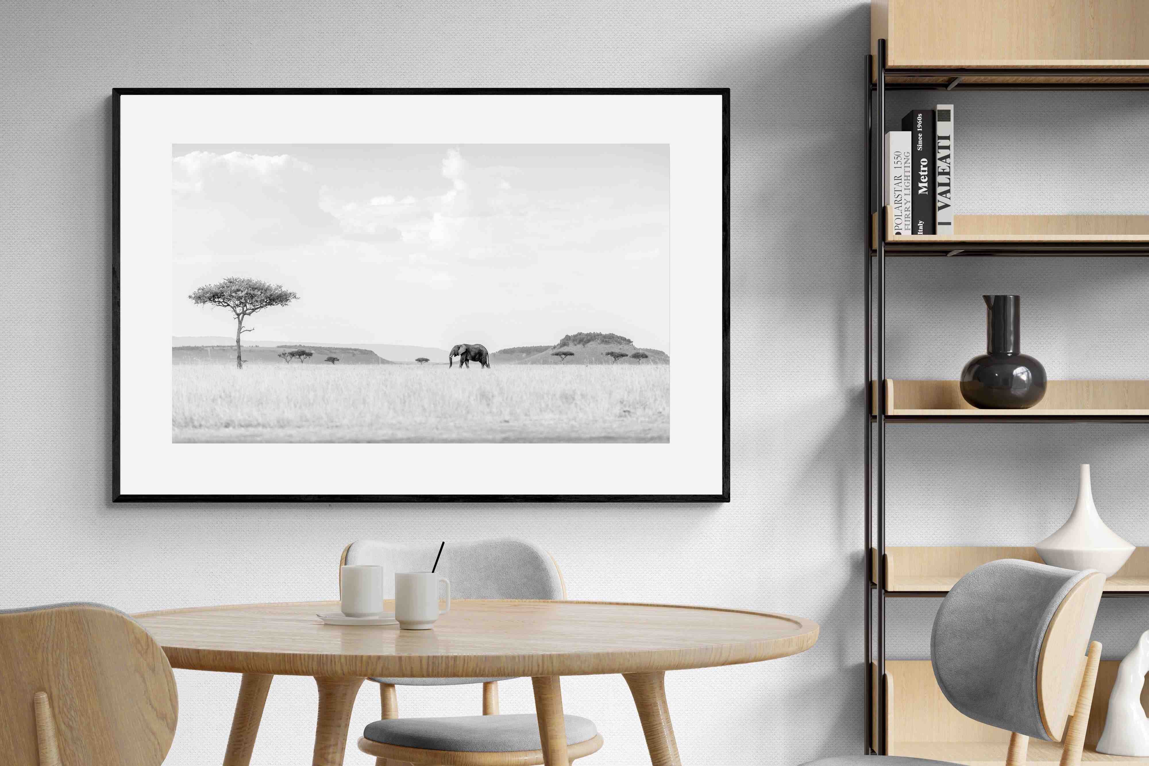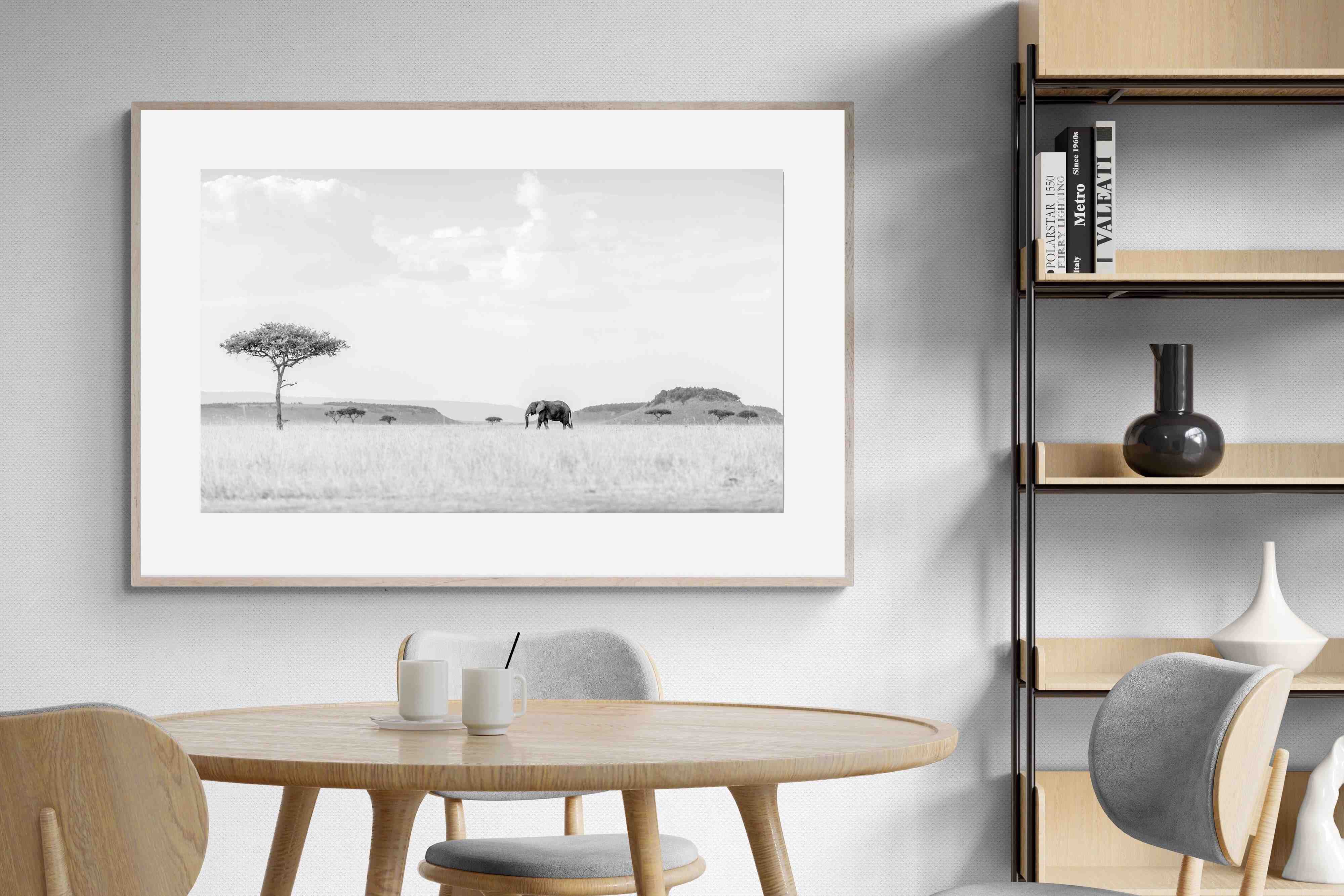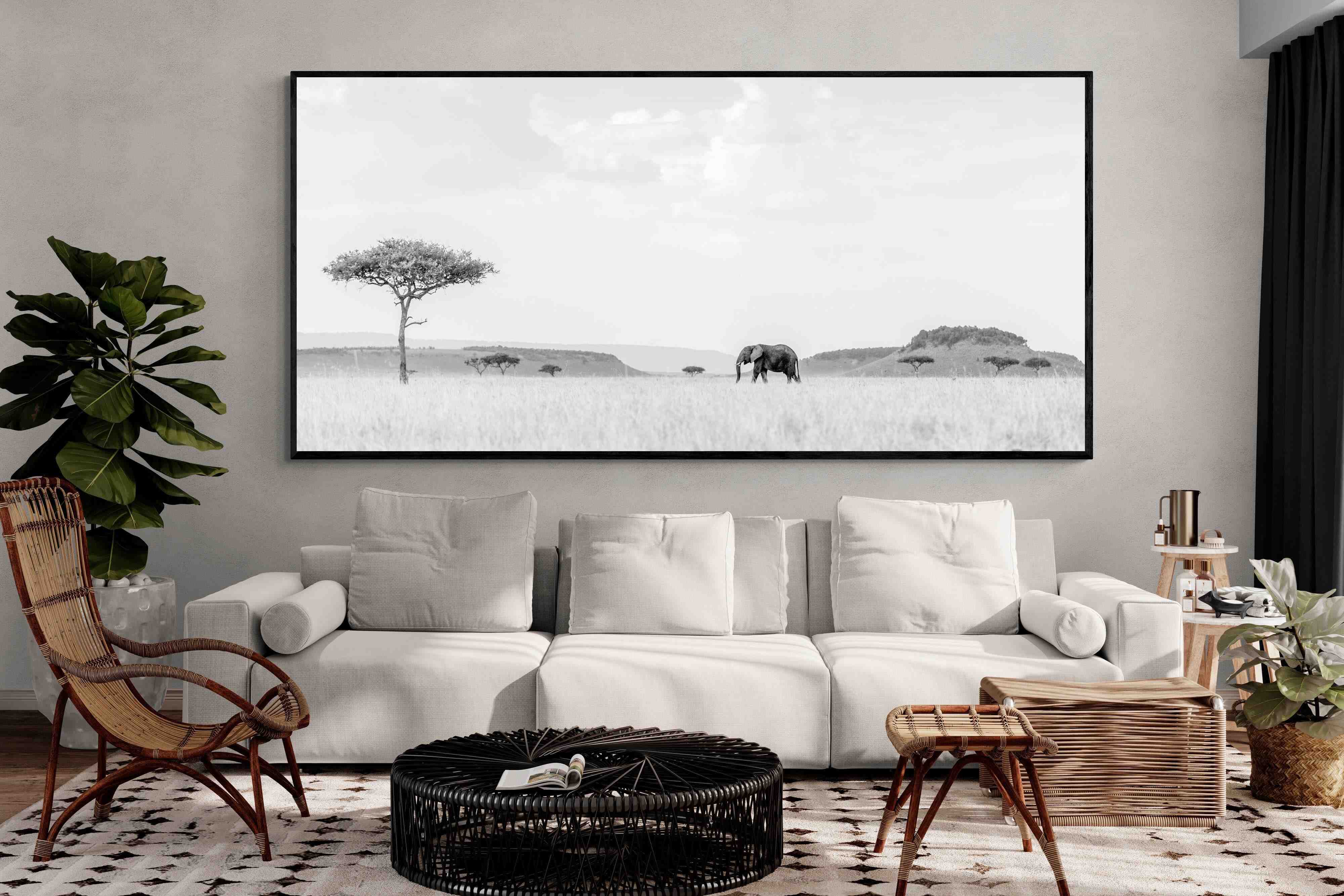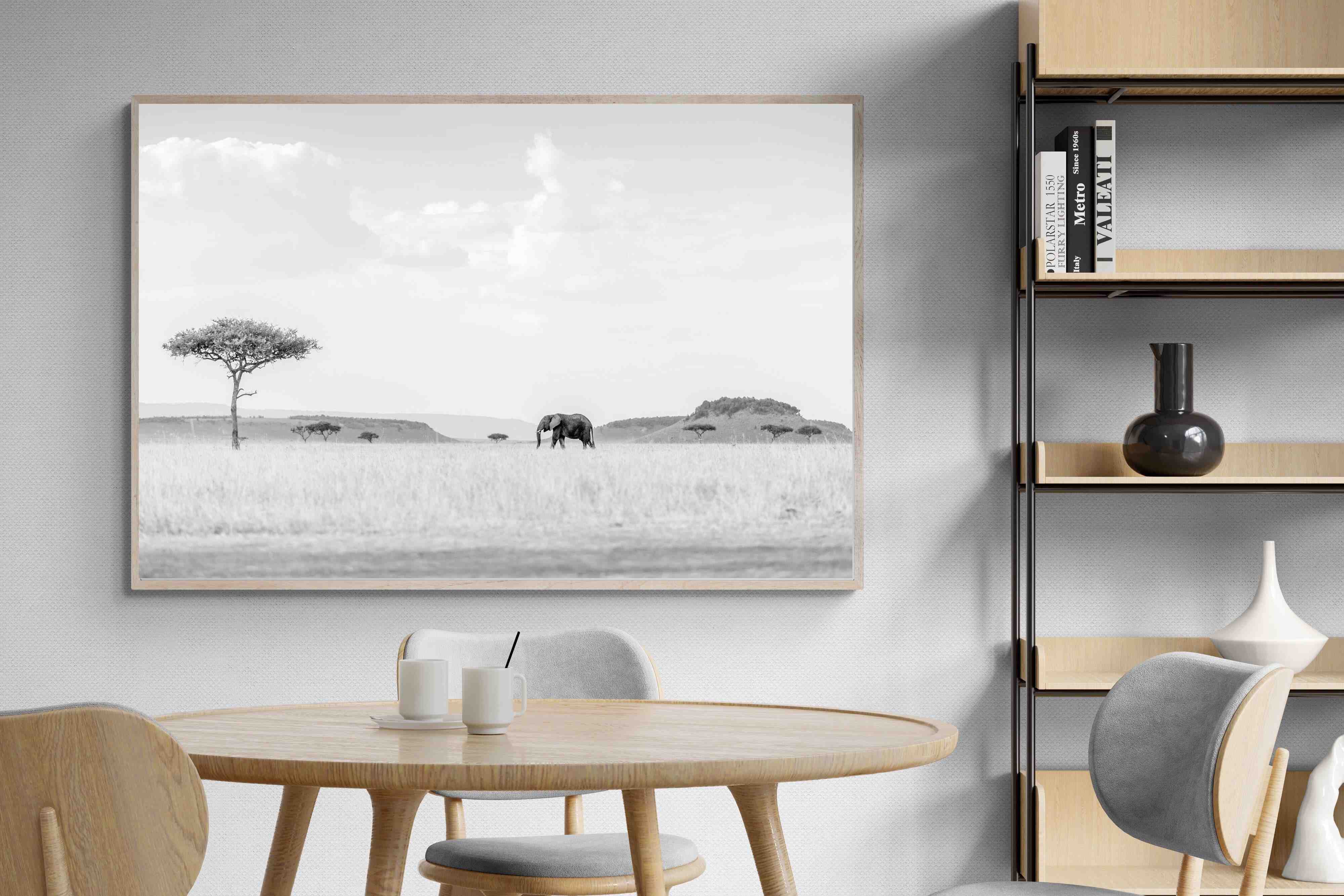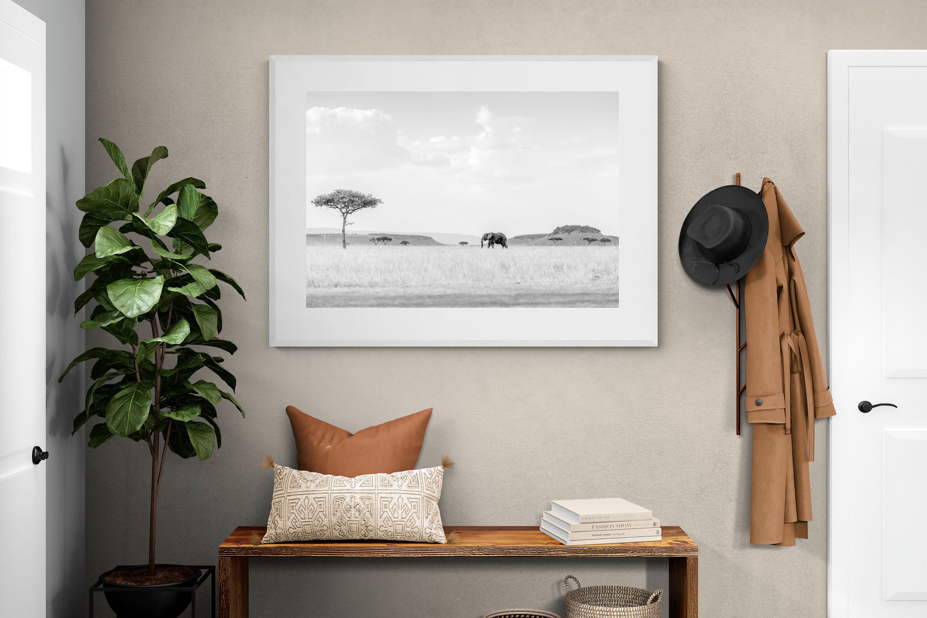 High Key Savannah Elephant Wall Art – Black and White African Landscape Print