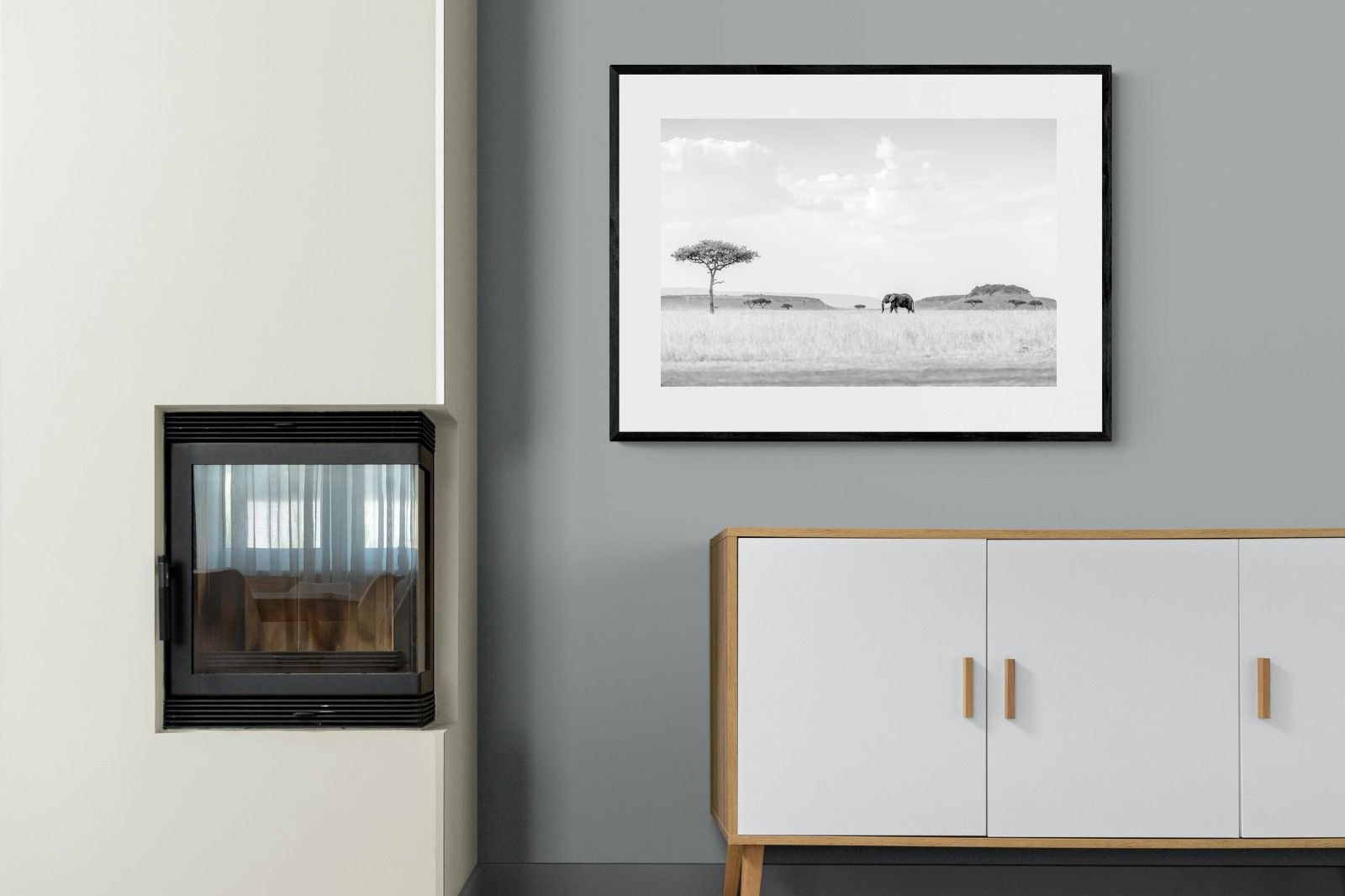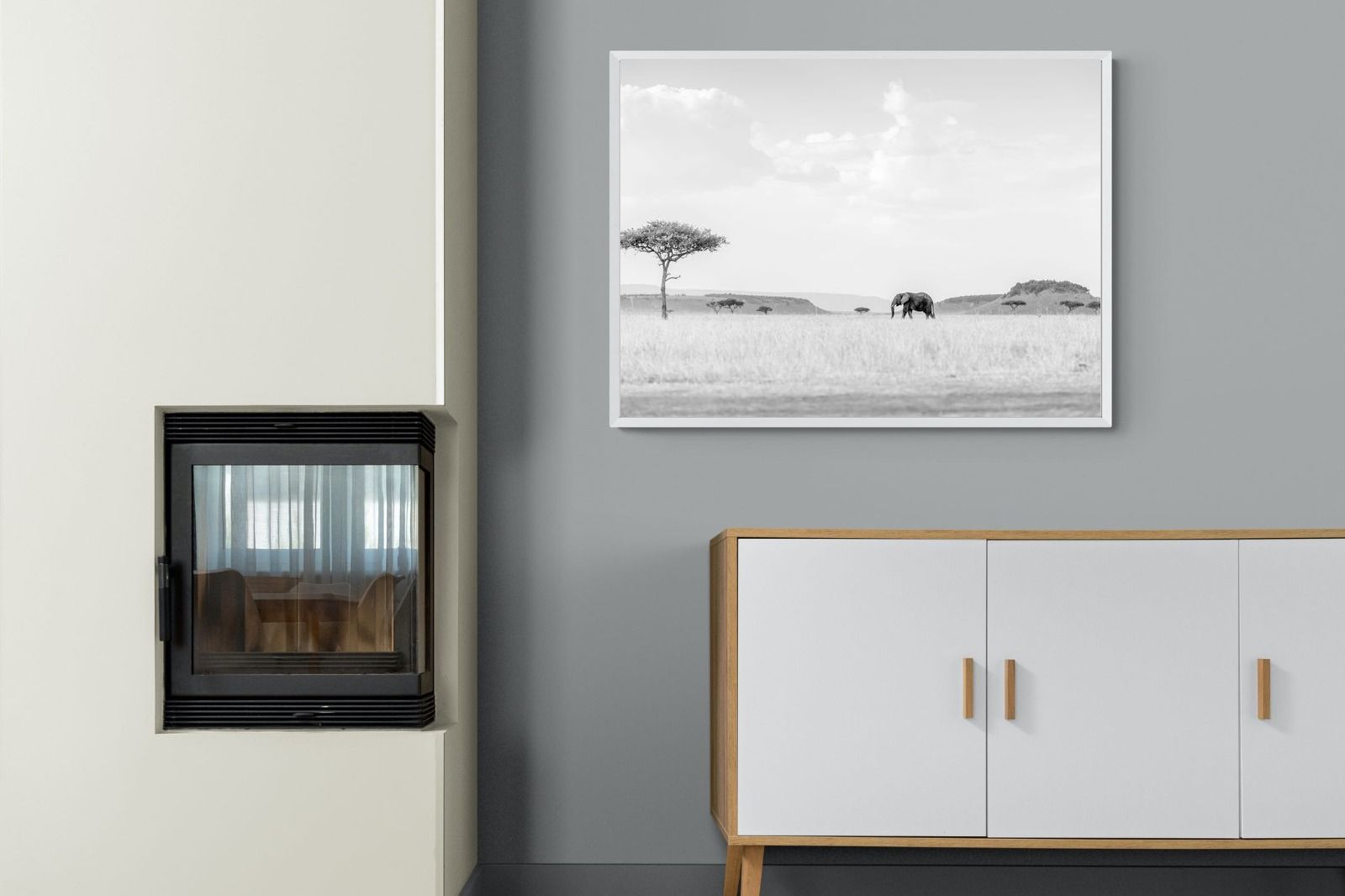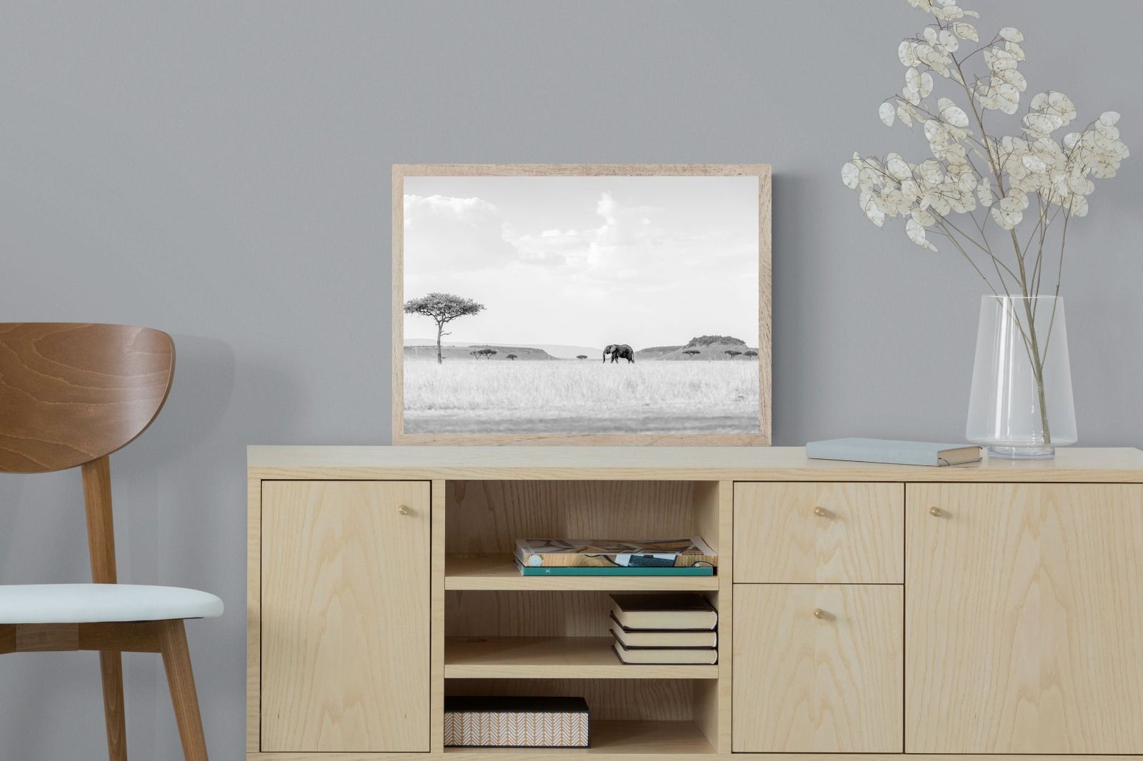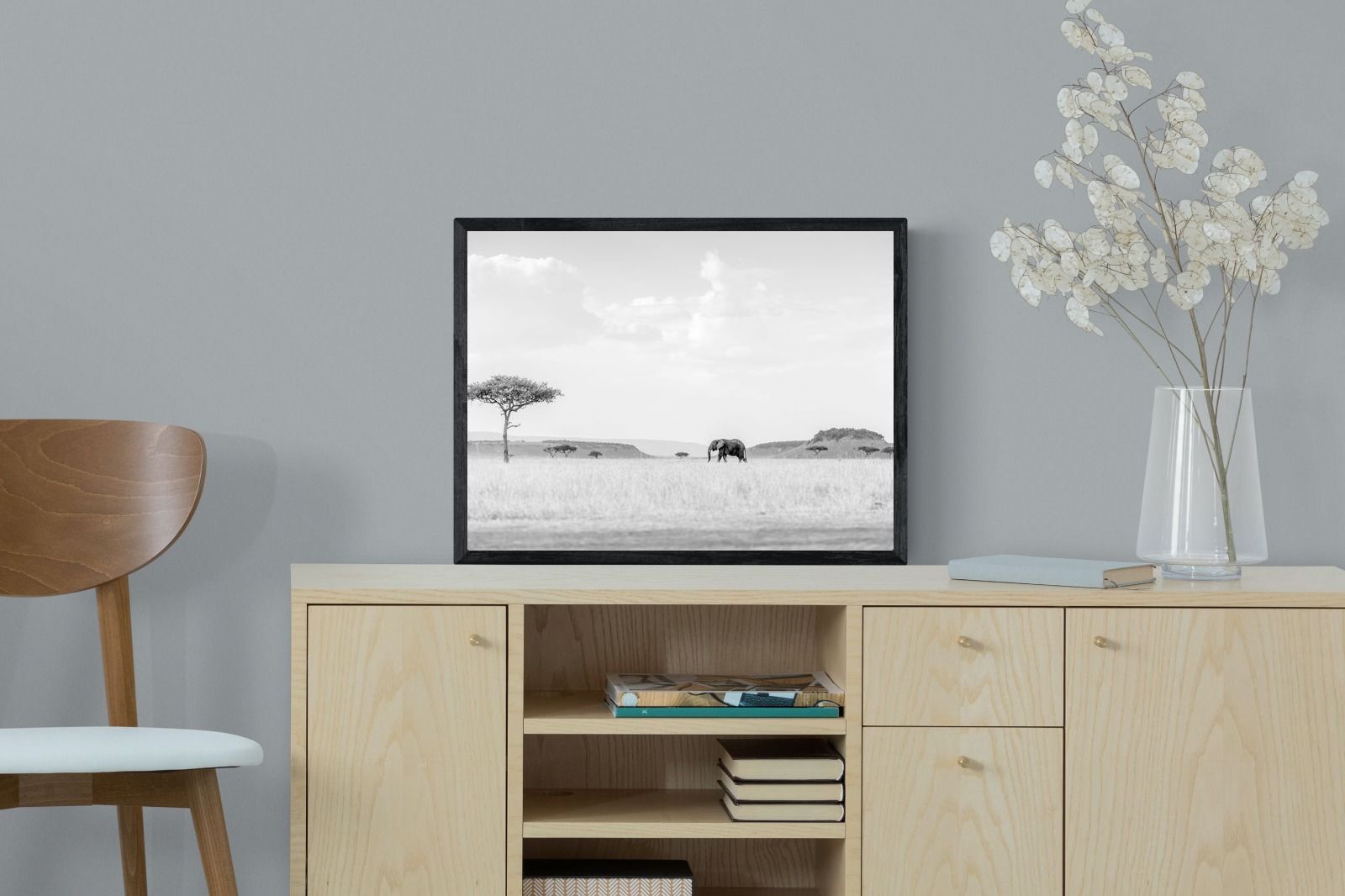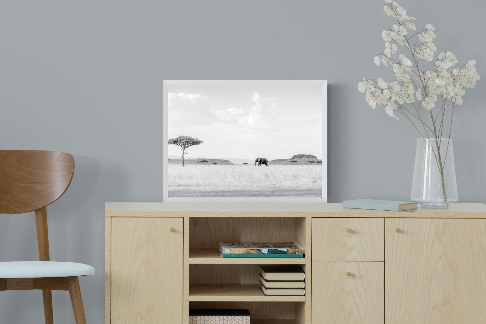 High Key Savannah Elephant Wall Art – Black and White African Landscape Print