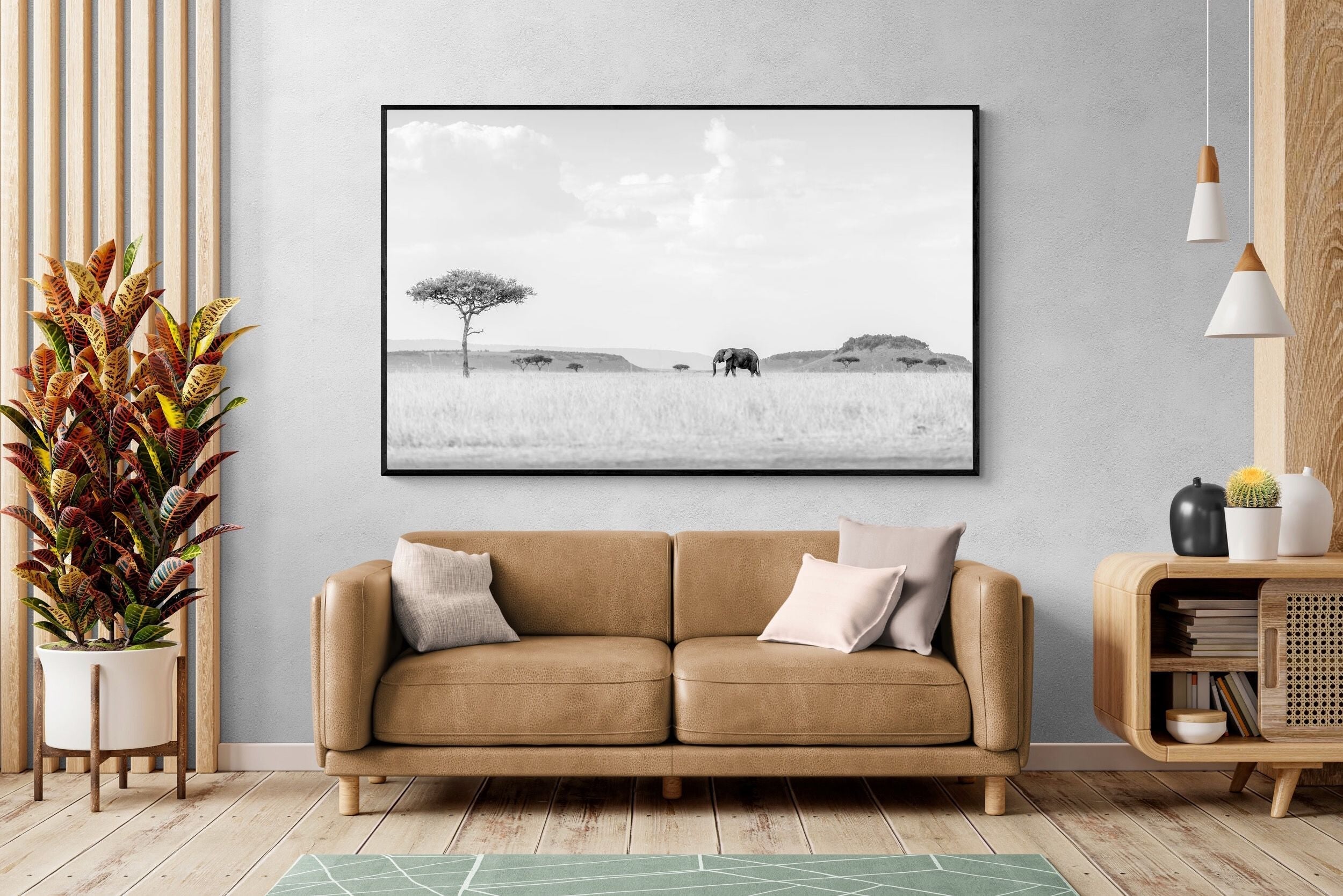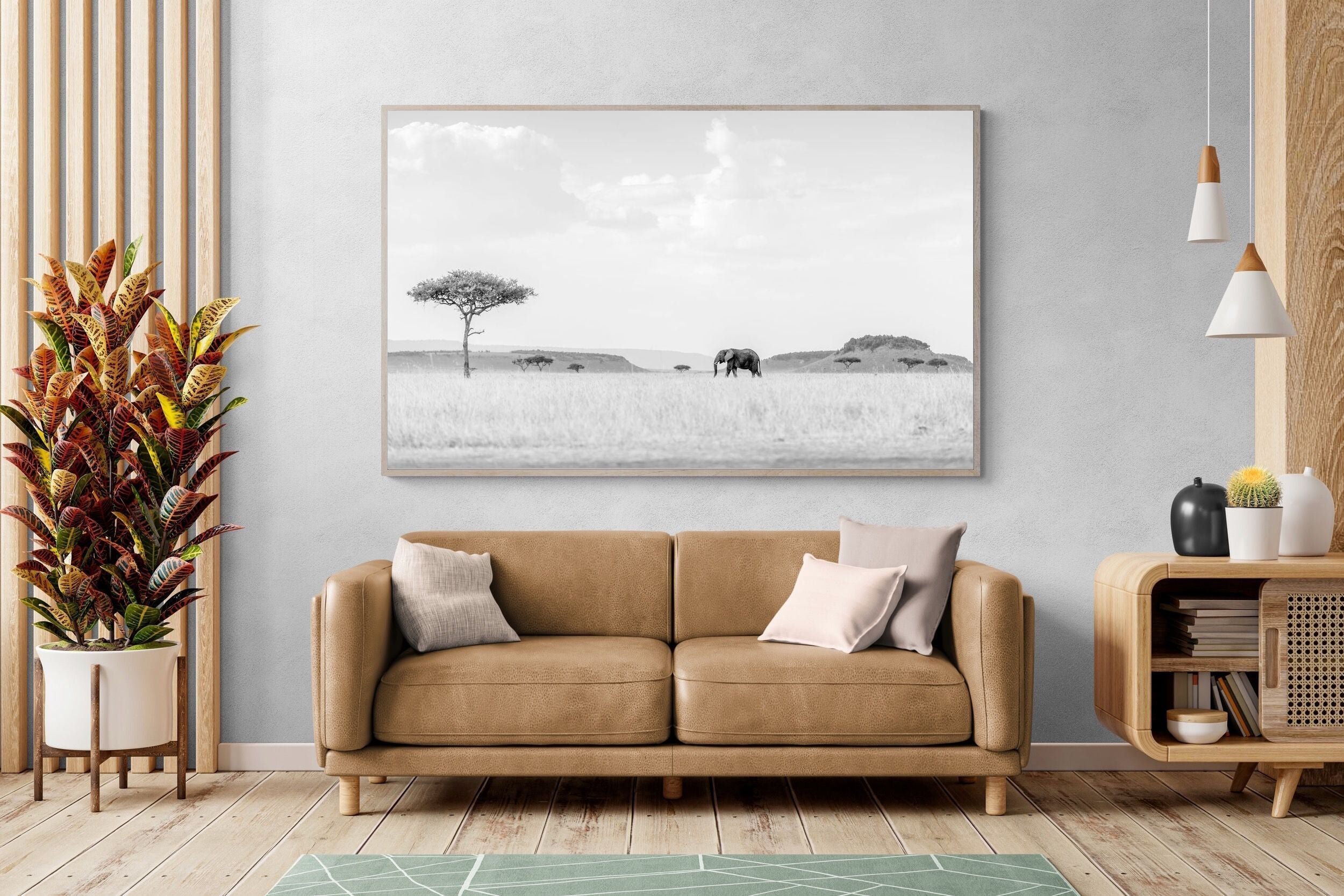 From striking animal portraits to atmospheric safari scenes, Jaco’s photography translates beautifully into large-format wall art for contemporary interiors.