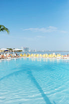 A sweeping view of a tranquil pool at The Standard Spa in Miami, USA merges seamlessly with the distant sea, creating a light, expansive composition. Soft blues and clean lines give the image a calm, resort-like atmosphere that feels both refreshing and refined. Ideal for bathrooms, living spaces, or holiday homes, it brings a sense of openness and escape. Its airy palette and balanced perspective make it a versatile piece for interiors that favour relaxed coastal styling and understated luxury.