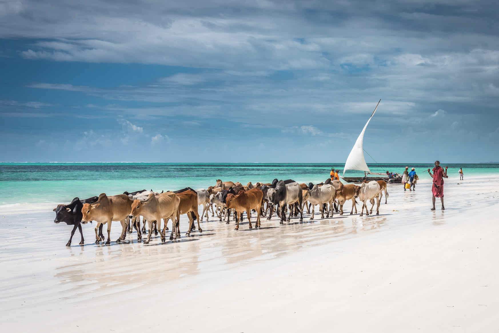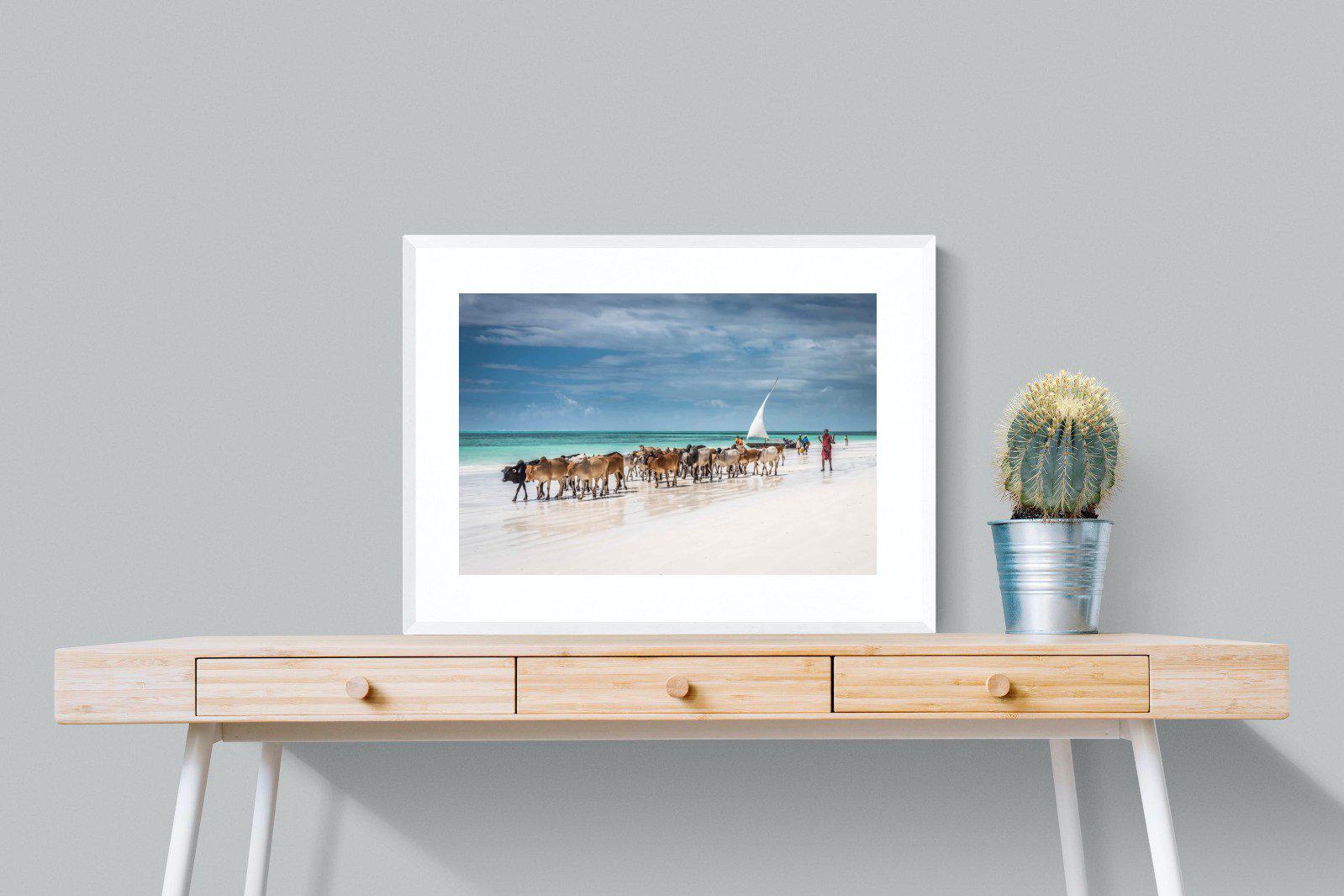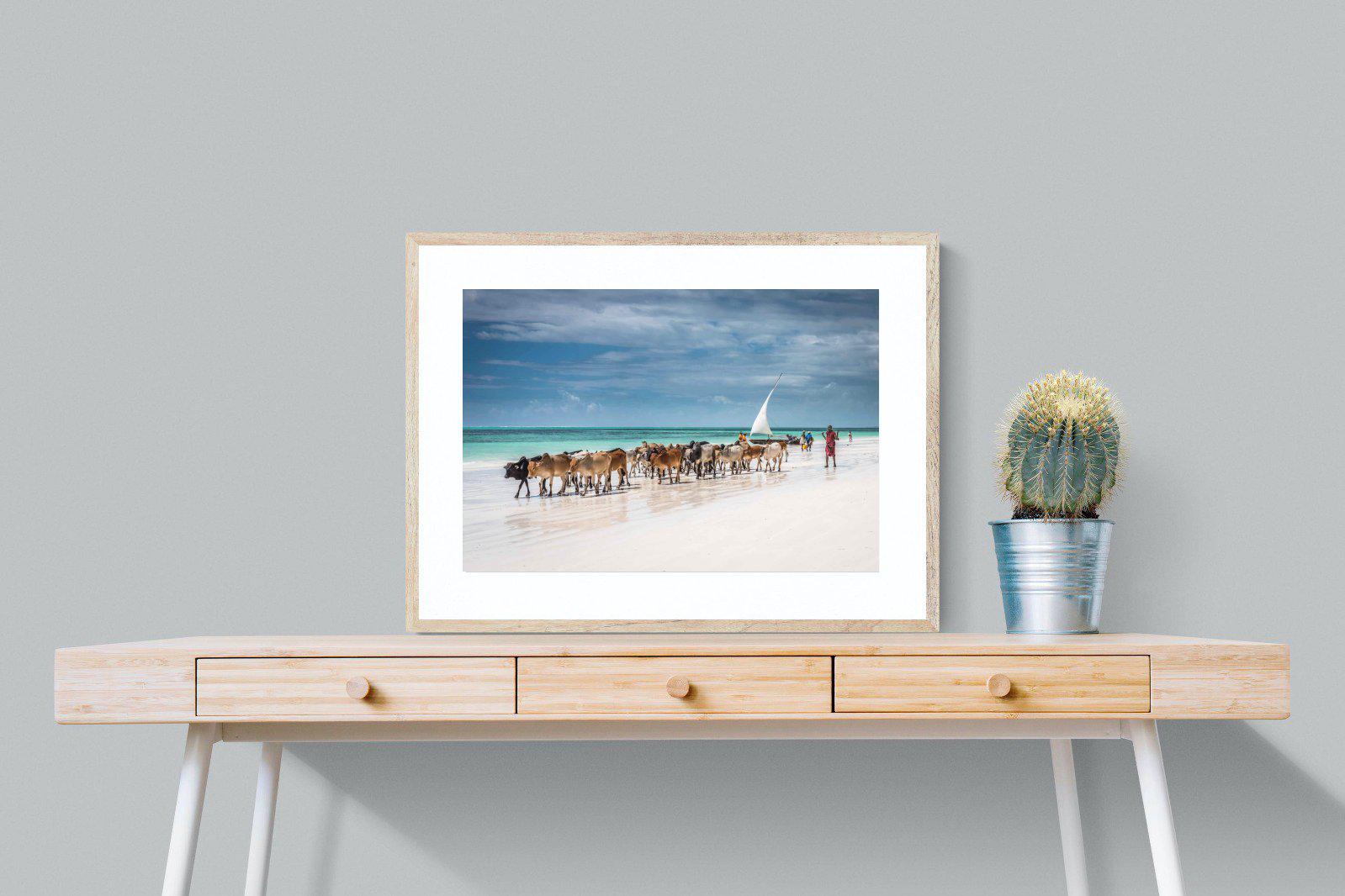 Zanzibar, Tanzania Beach Scene Wall Art – Cattle by Ocean Landscape Print