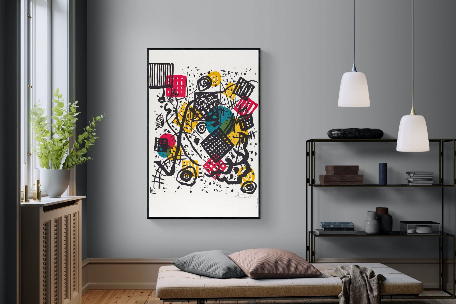 While canvases often excel for many art prints, the luminous colours and intricate patterns of "Improvisation 35" may shine brightest when framed behind glass. Explore the full range of framing options in this short video.