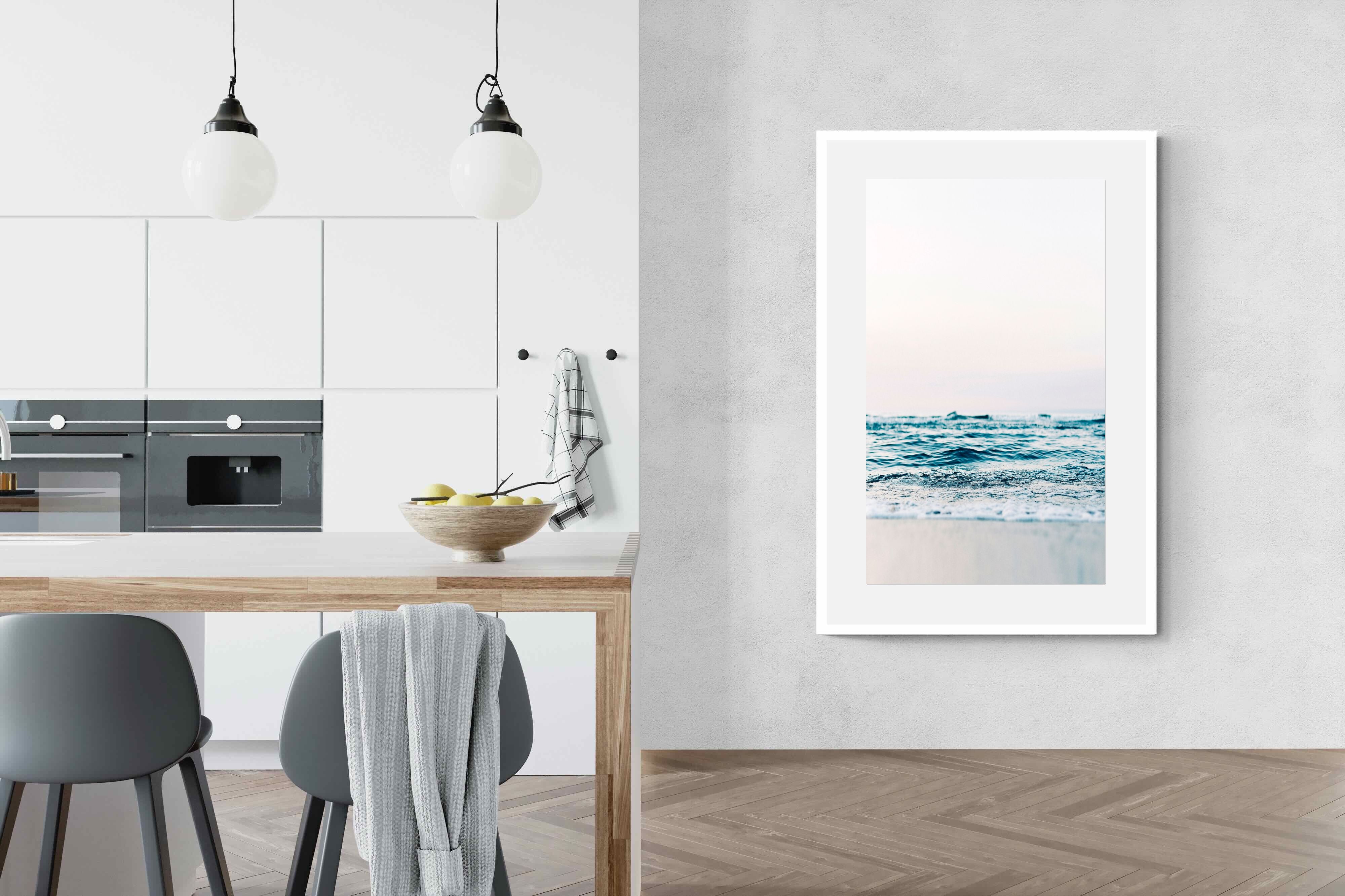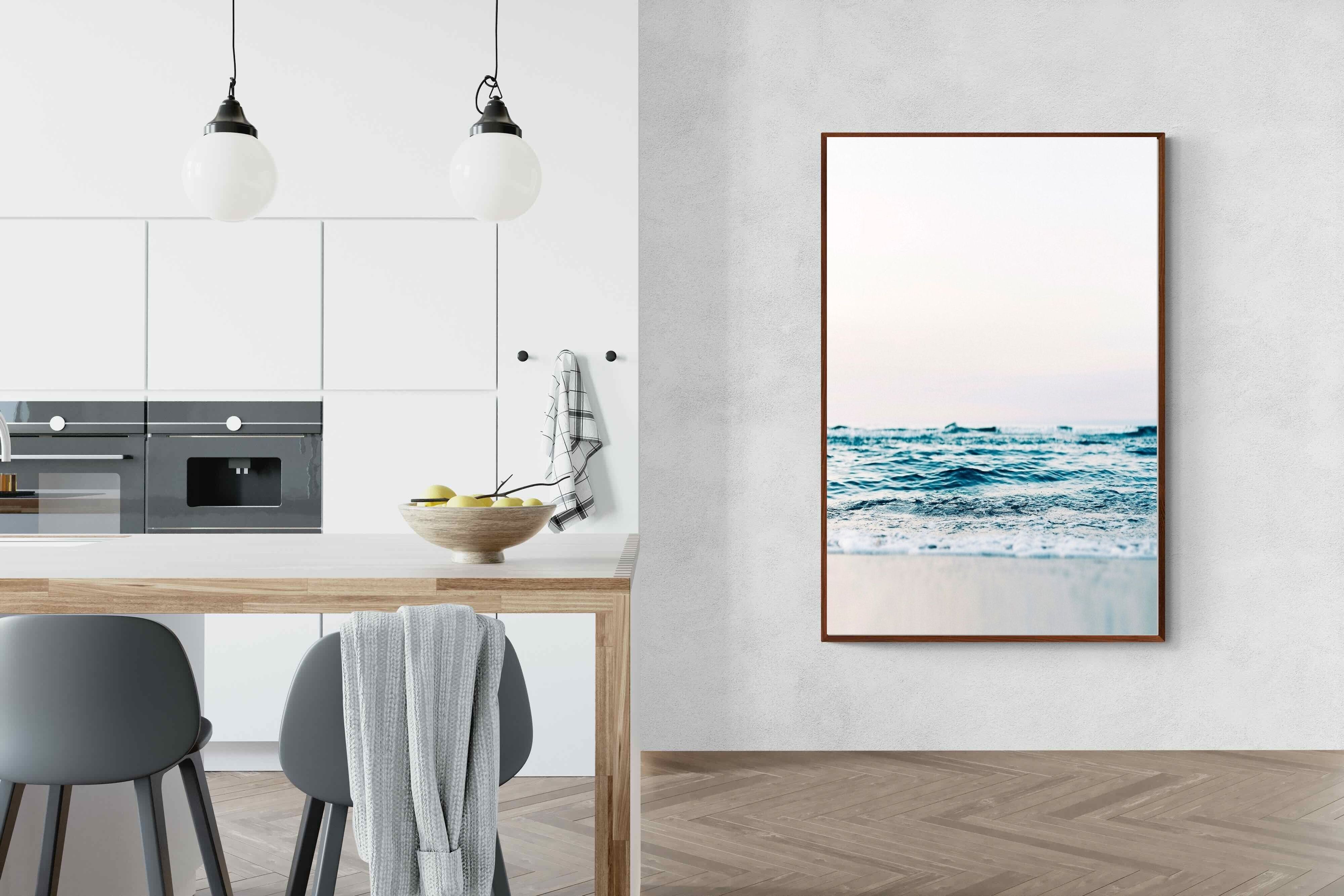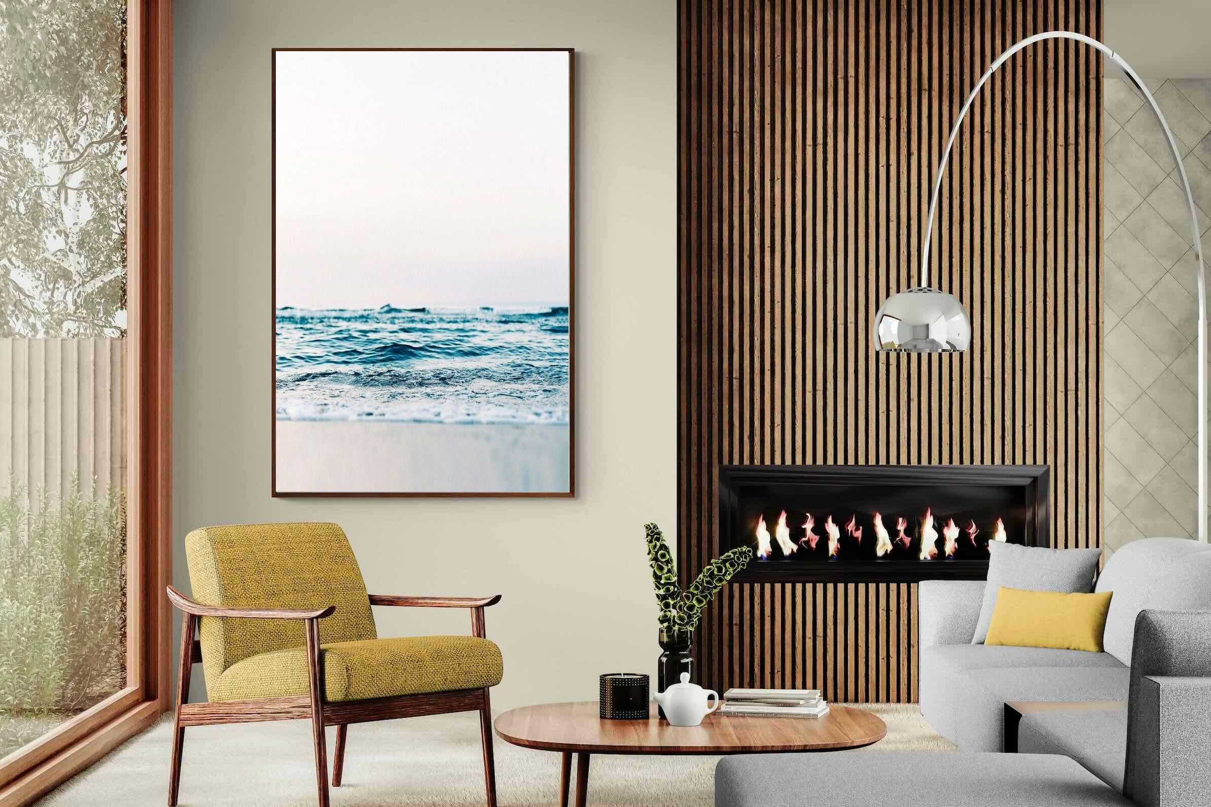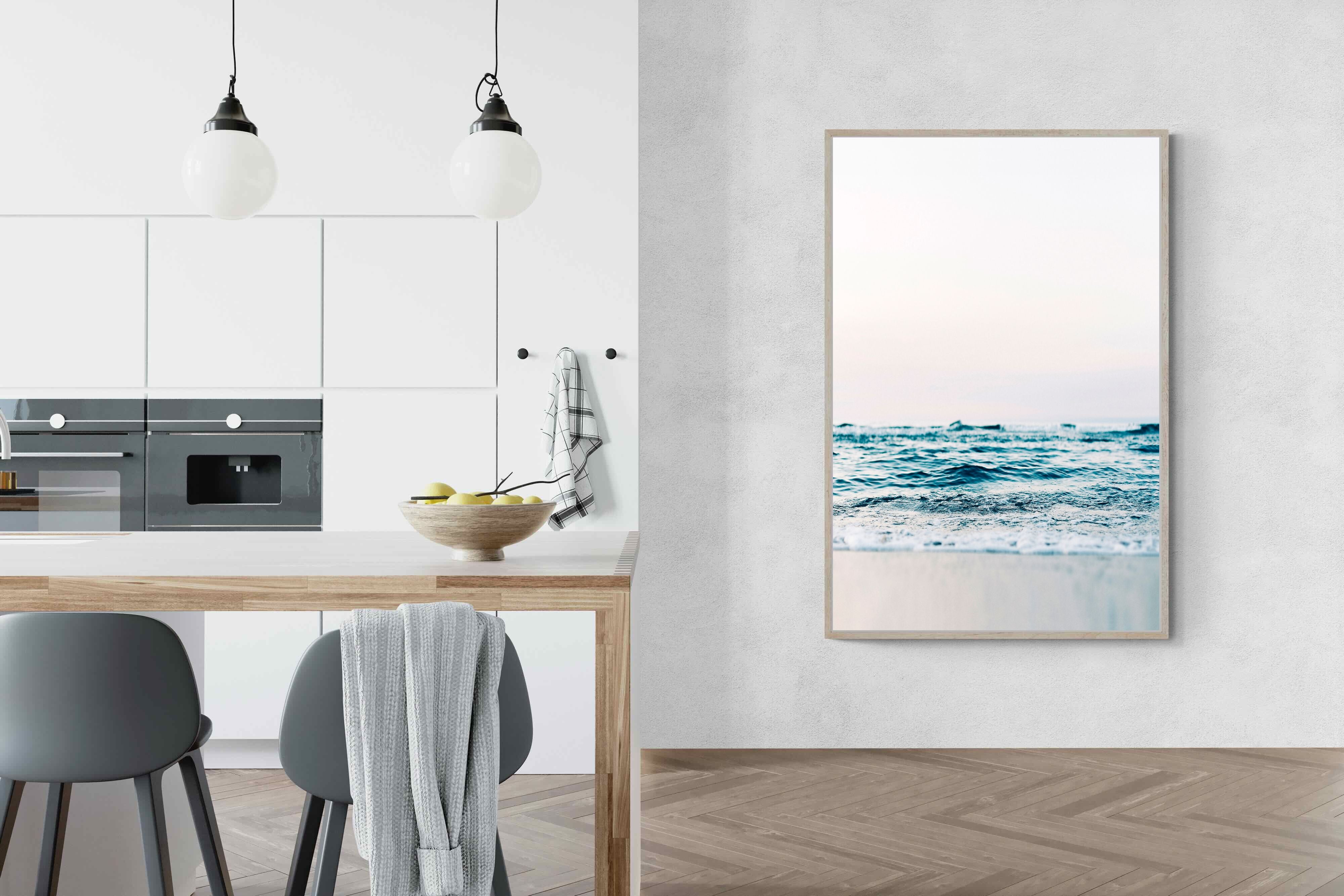 Capturing the gentle motion of ocean waves as they meet the shore, this piece highlights the timeless beauty of the sea. The subtle gradations of blues and whites symbolise peace and continuity, offering a soothing visual experience. Perfect for modern interiors, it brings a touch of nature indoors, enhancing the room's tranquility and elegance.
