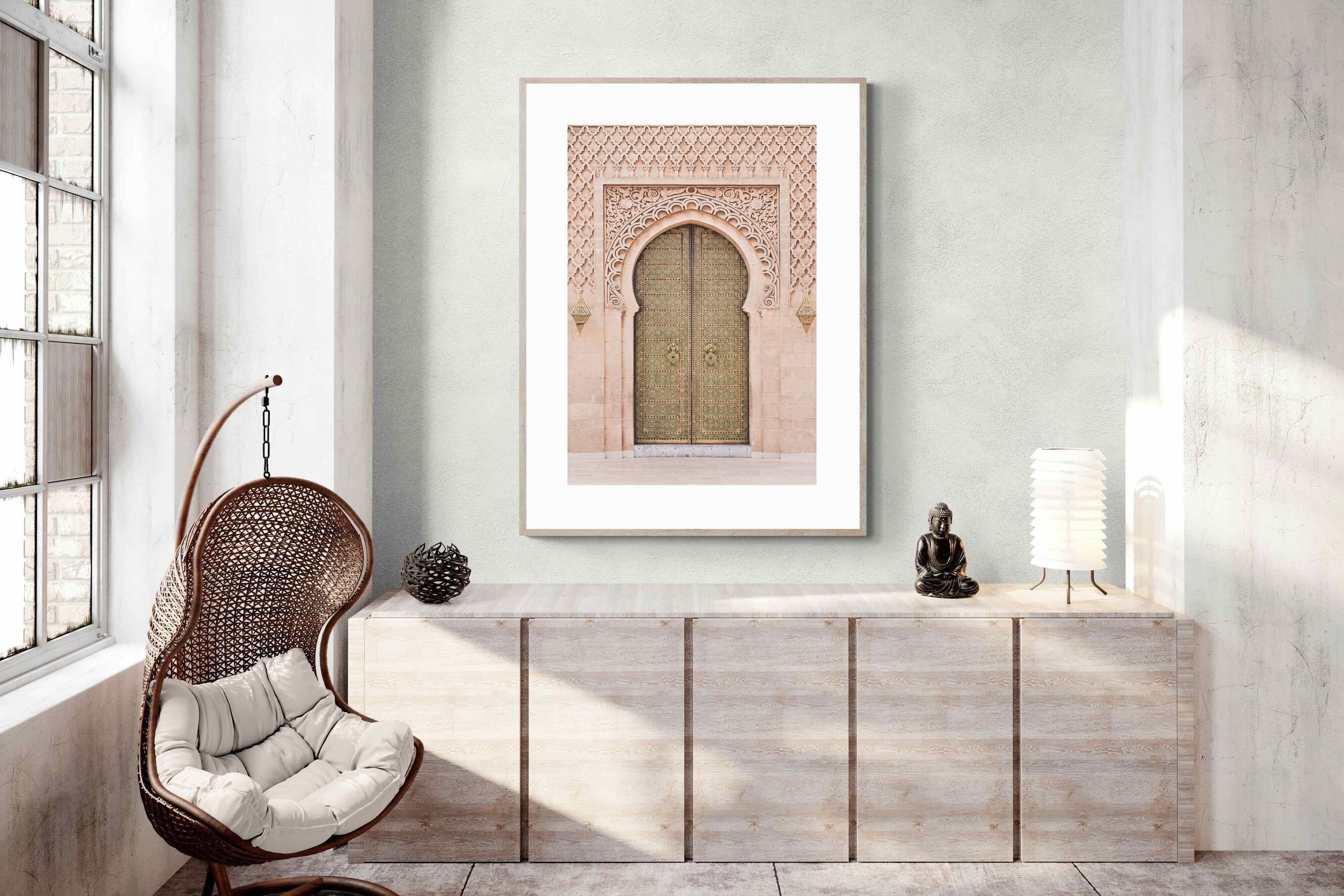 The intricate design of an ornate door with detailed carvings and rich textures showcases the beauty of craftsmanship. Shot by Katherin Pienaar, this elegant and sophisticated image brings a sense of history and culture into modern homes, making it a refined and eye-catching focal point.