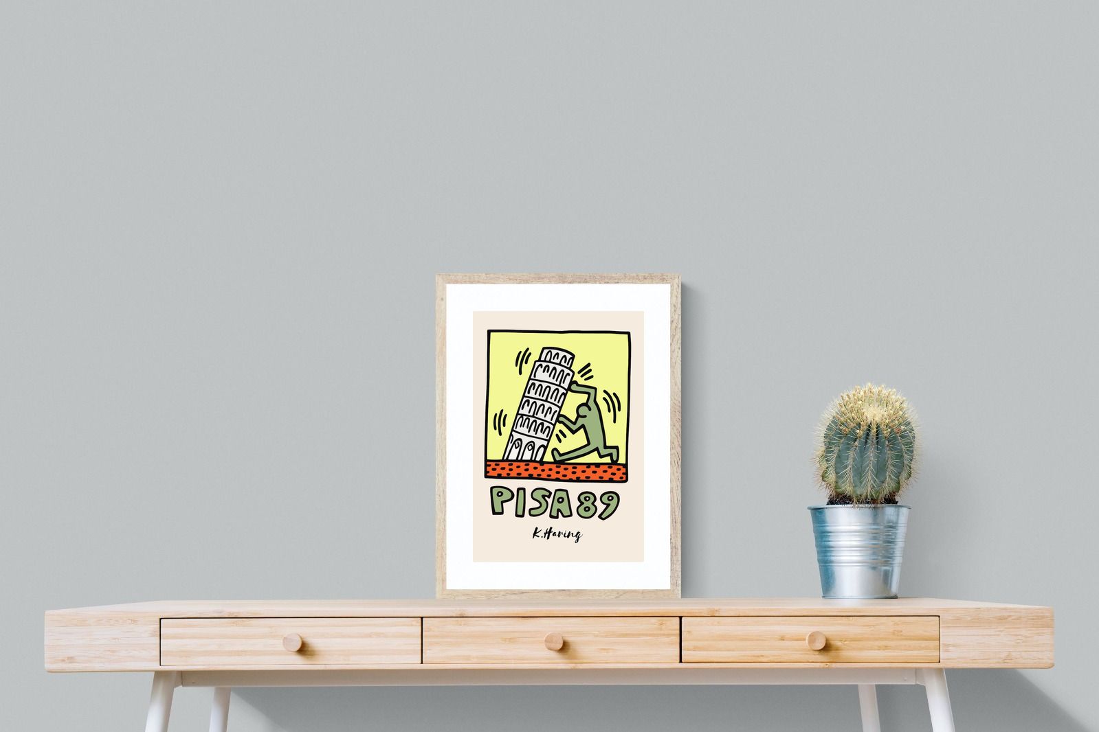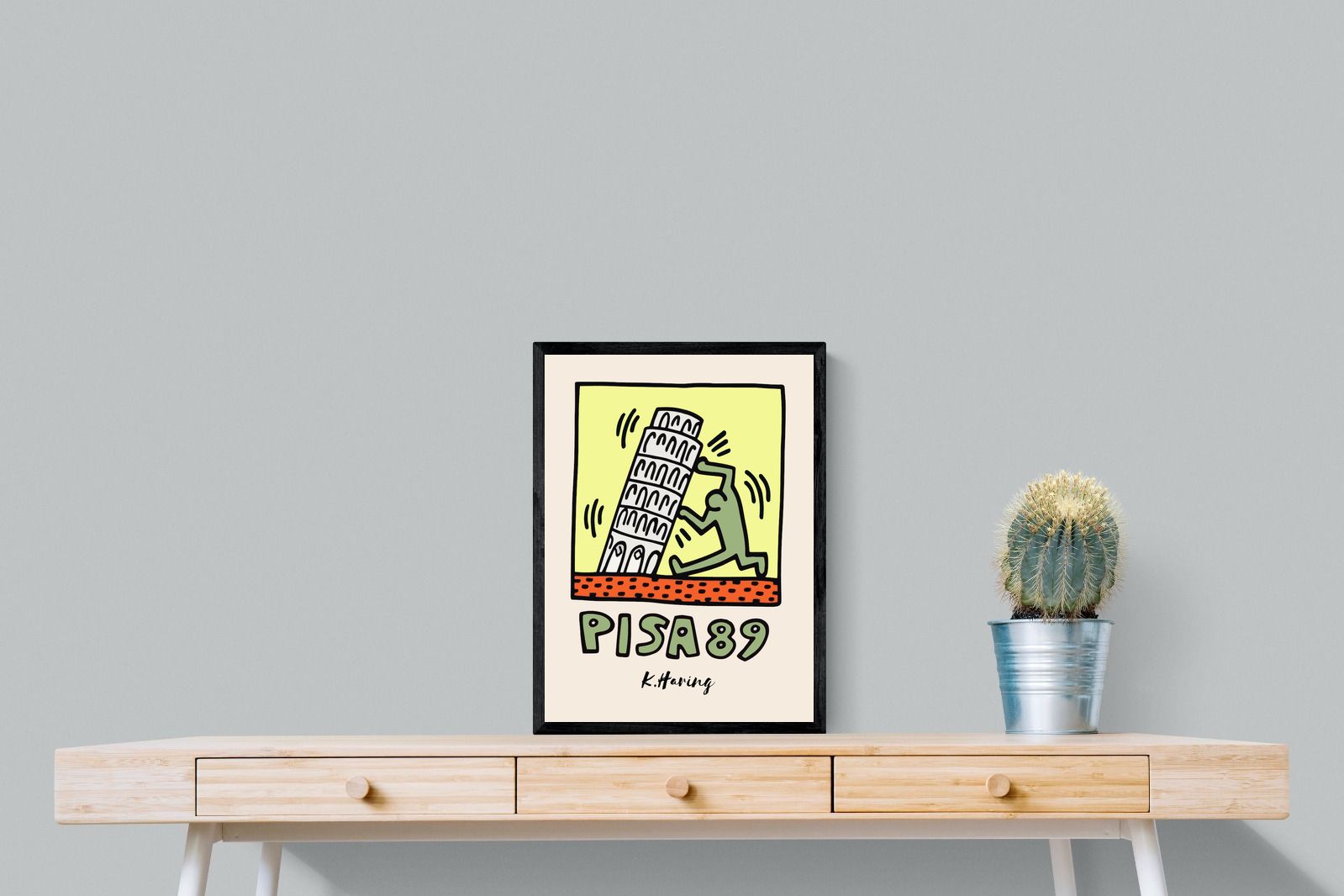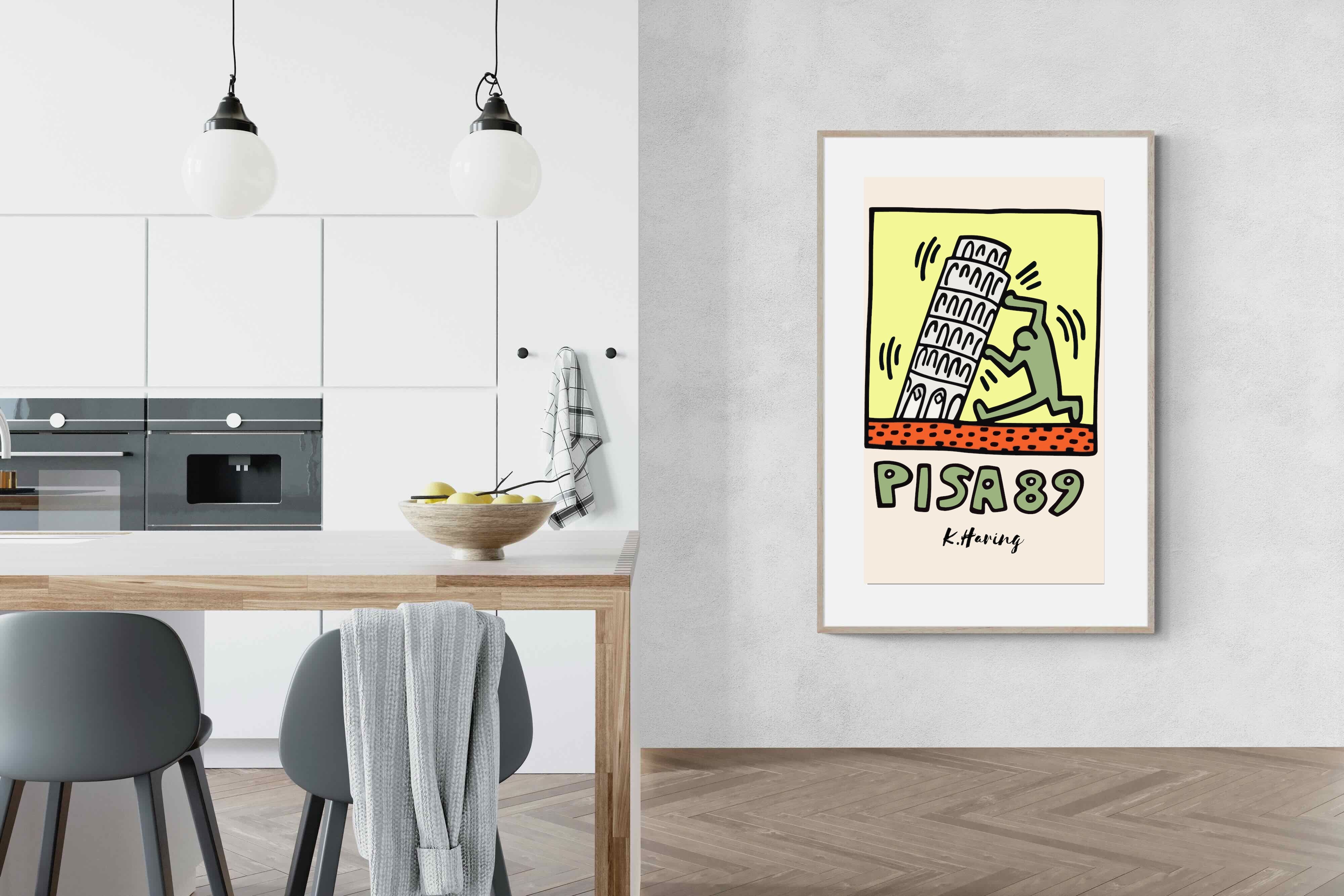 This Keith Haring print epitomises his trademark vibrant and animated style. Haring's playful approach to the iconic Leaning Tower of Pisa, reimagined with his characteristic figures, injects humour and contemporary relevance into a historical landmark. As wall art, this piece would not only serve as a striking visual focal point but also evoke smiles and lighten the atmosphere of any room, making it a delightful addition to the modern home.
