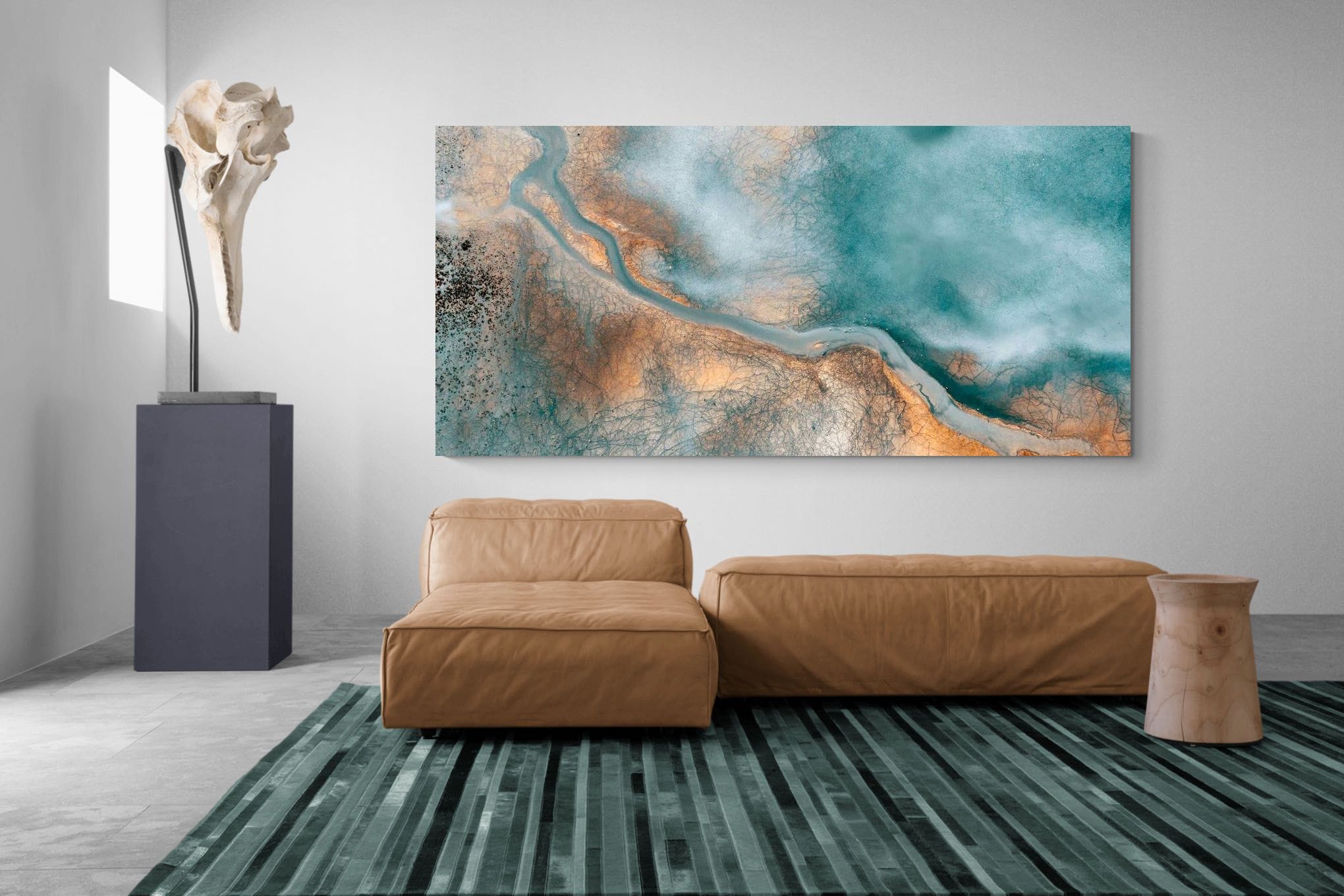 Abstract Aerial River Delta Wall Art – Turquoise and Copper Landscape Photography