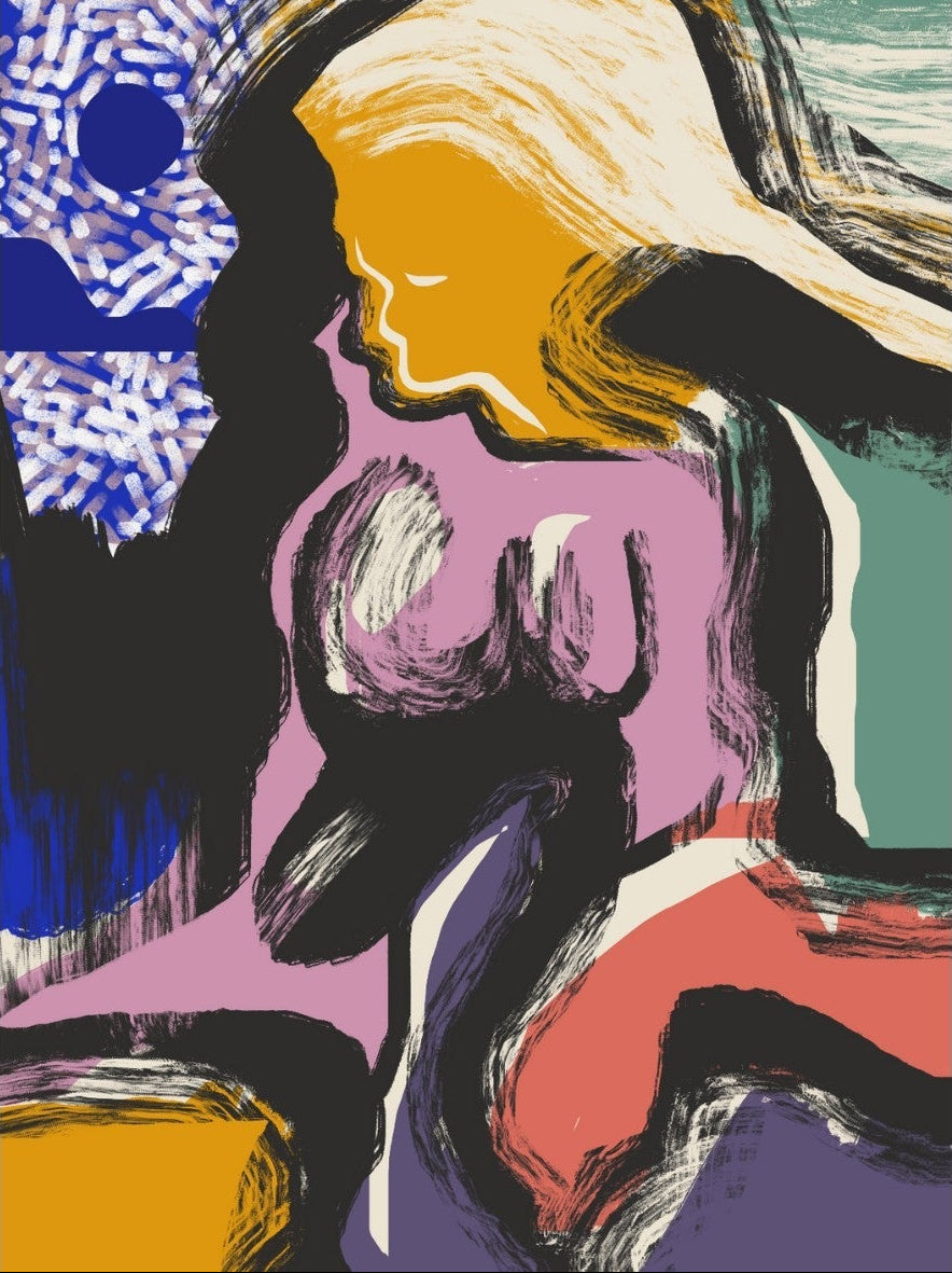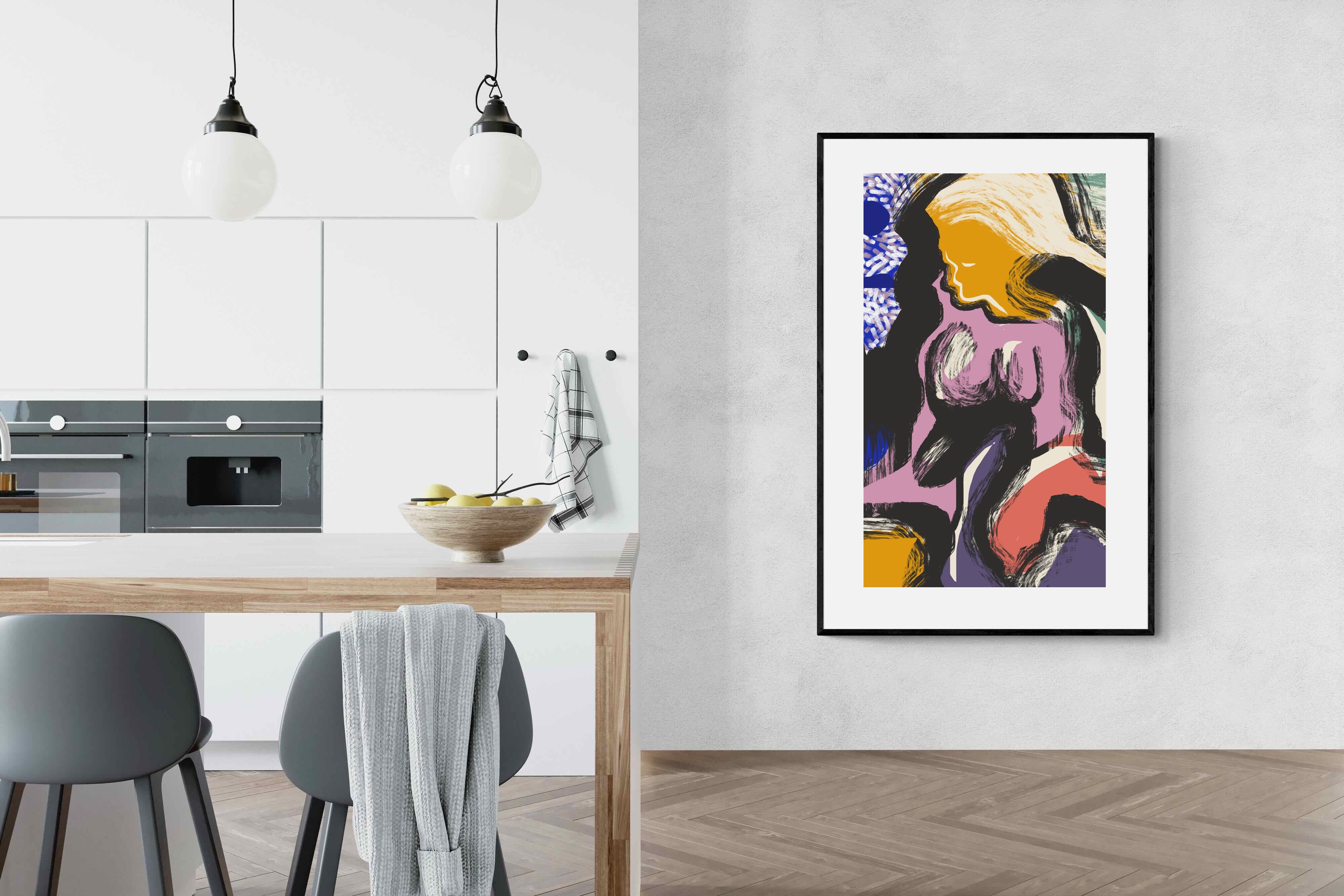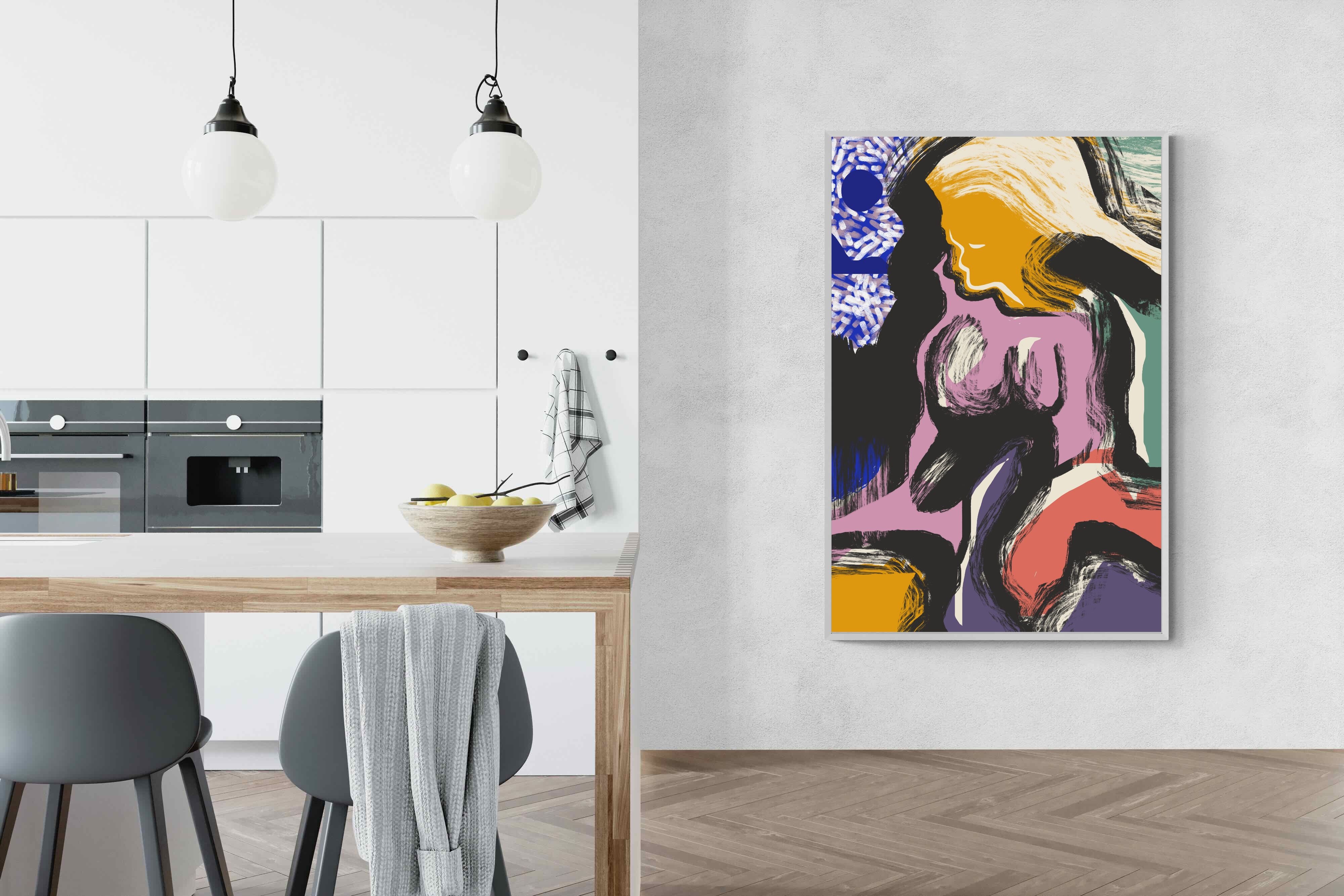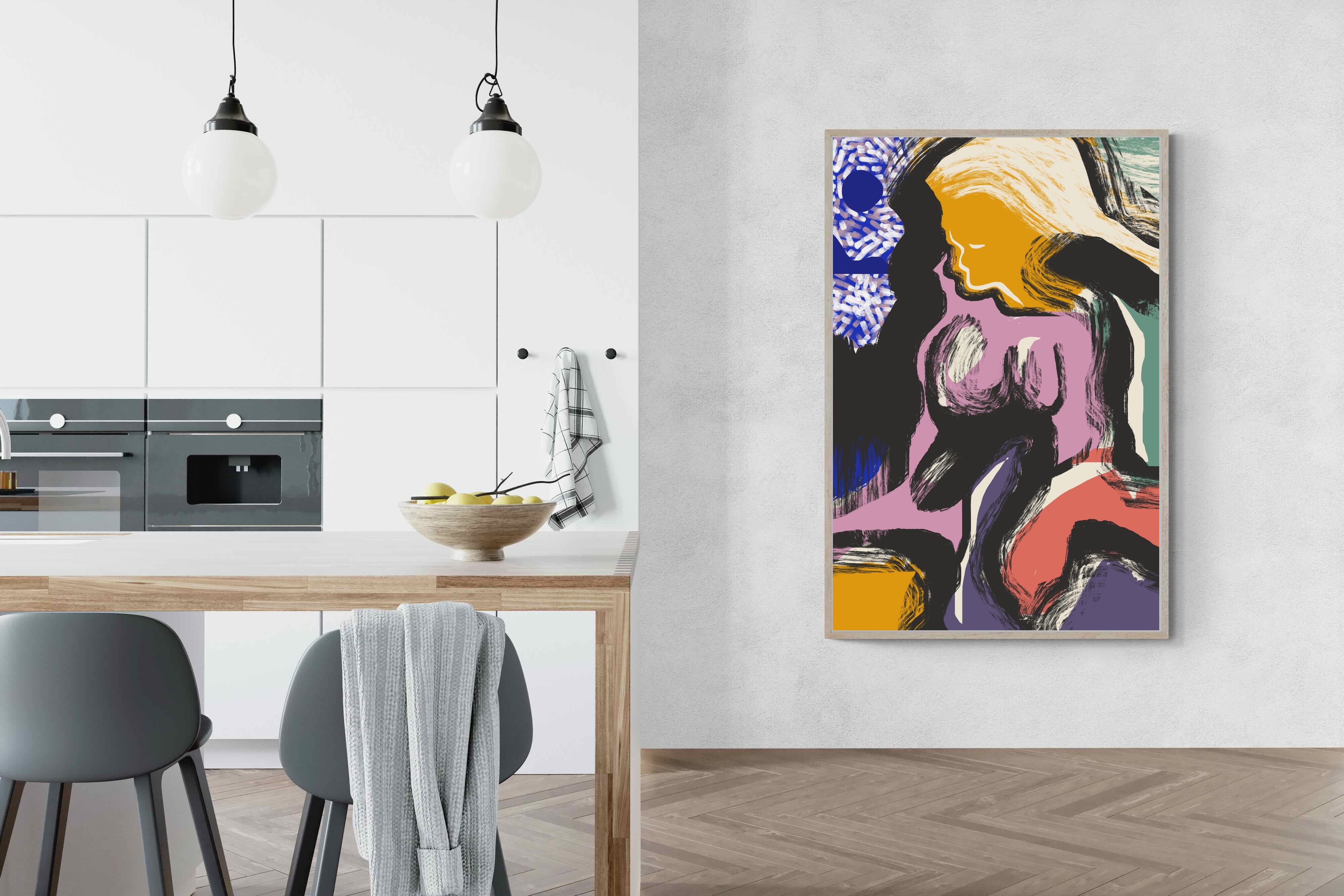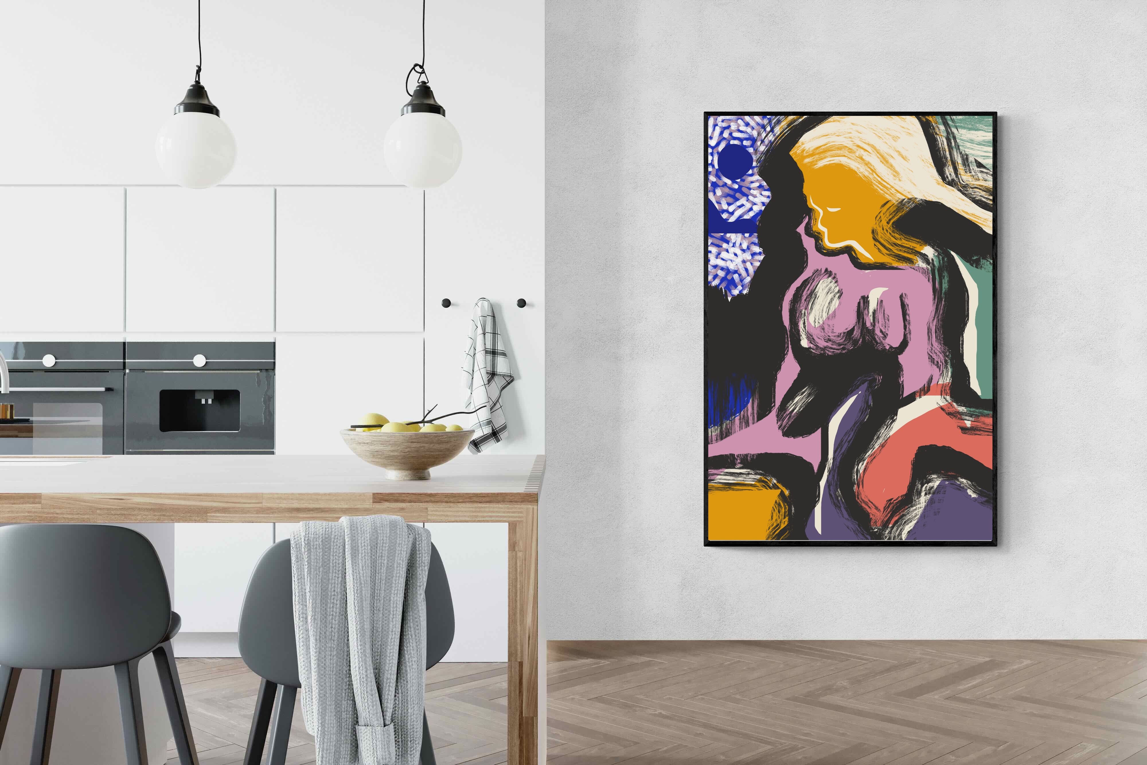 Expressive and confident, this abstract interpretation of a reclining female figure channels energy and sensuality through bold brushstrokes and vibrant colours. Ideal for modern apartments, studios, or design-forward interiors, it injects a dose of creativity and intrigue into any room. Pair it with sleek furniture and statement lighting for maximum visual impact.