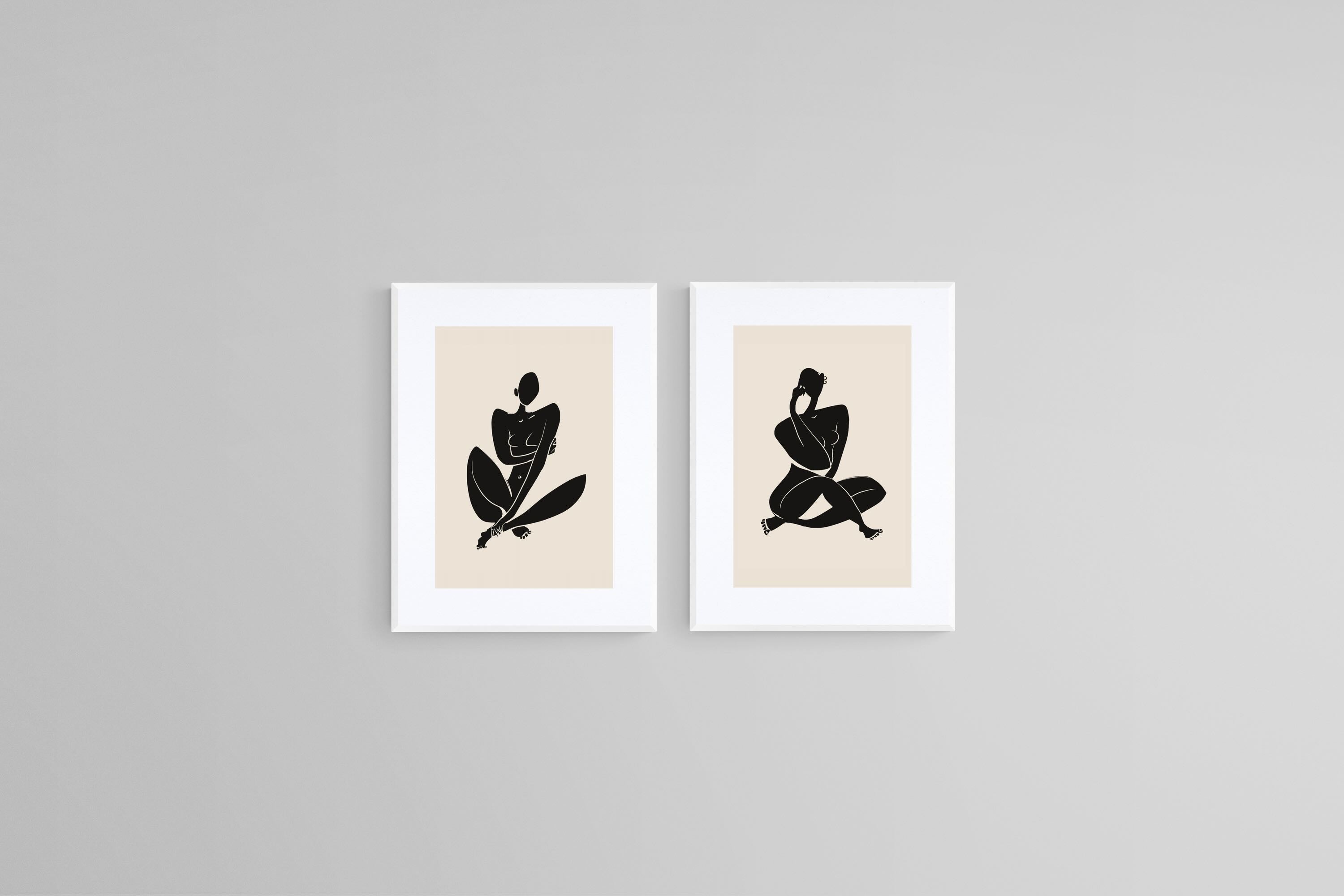 This confident set of two silhouette prints captures curvaceous female forms in stylised poses, rendered in bold black against a warm cream backdrop. The flowing shapes and sculptural stance give the pieces a strong presence without overwhelming the space. Ideal for modern, Afrocentric, or minimalist homes, they suit bedrooms, lounges, or studios with a refined yet expressive design ethos.