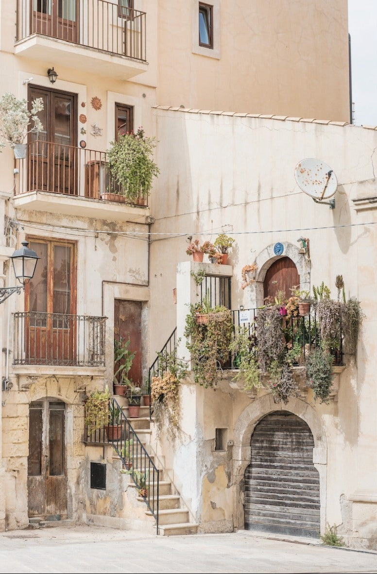 This evocative street photograph captures the layered architecture and lived-in charm of Palermo’s historic centre, where balconies overflow with plants and weathered stone façades tell stories of daily life. Warm, sun-faded tones and organic textures give the image an authentic southern Italian feel. Ideal for contemporary or Mediterranean-inspired interiors, this artwork adds character, warmth and a sense of place, making it a refined focal point for living rooms, hallways or dining spaces.