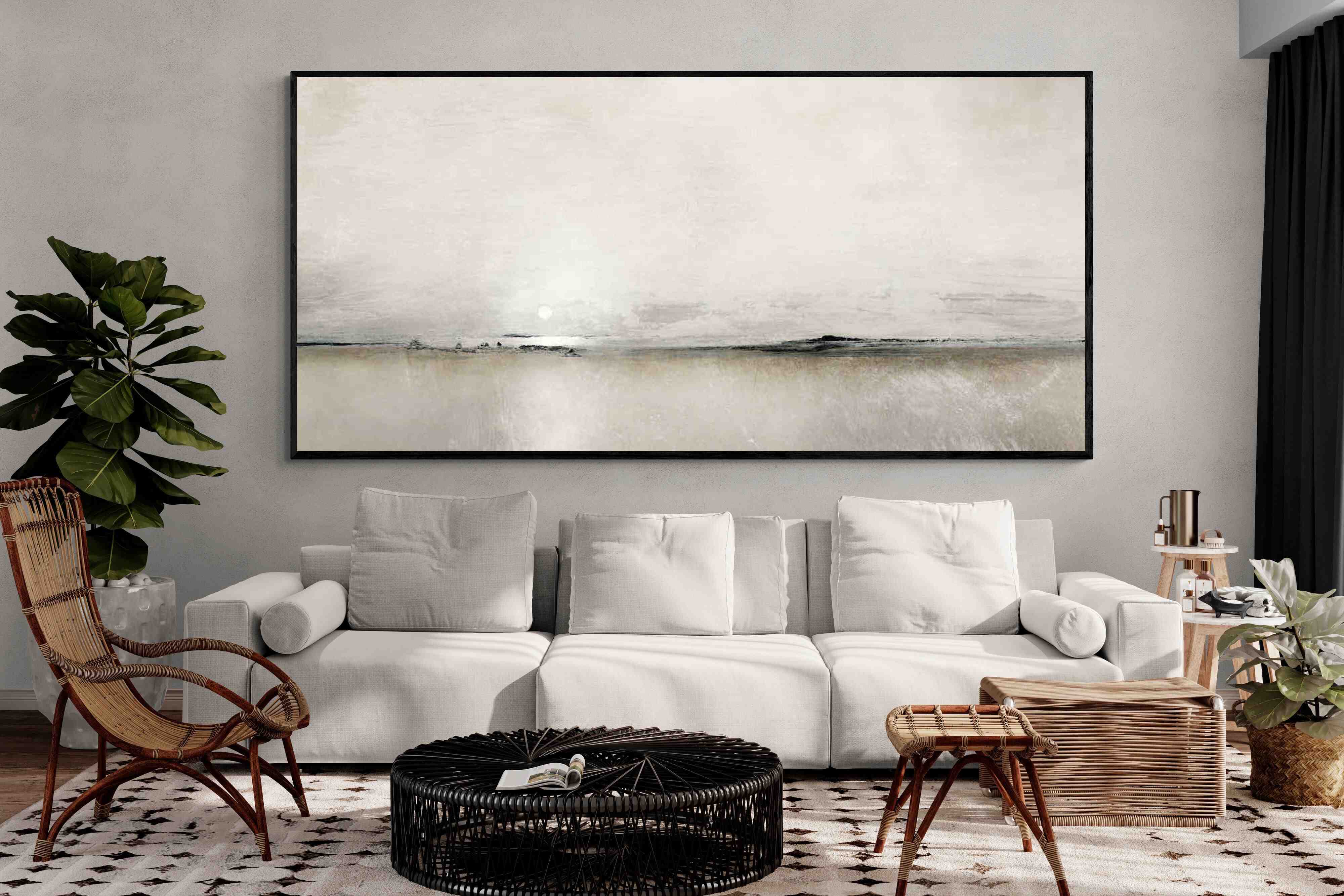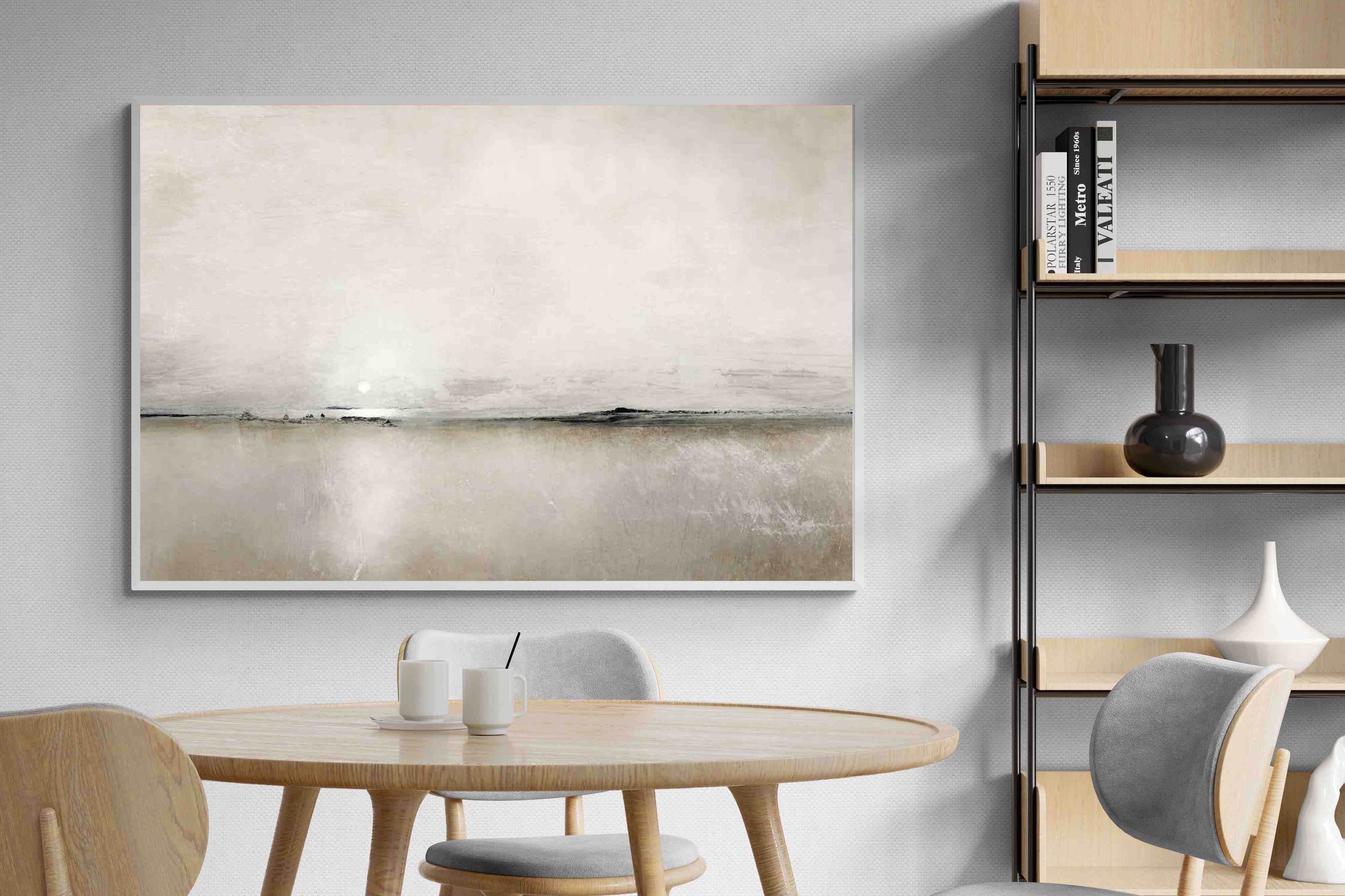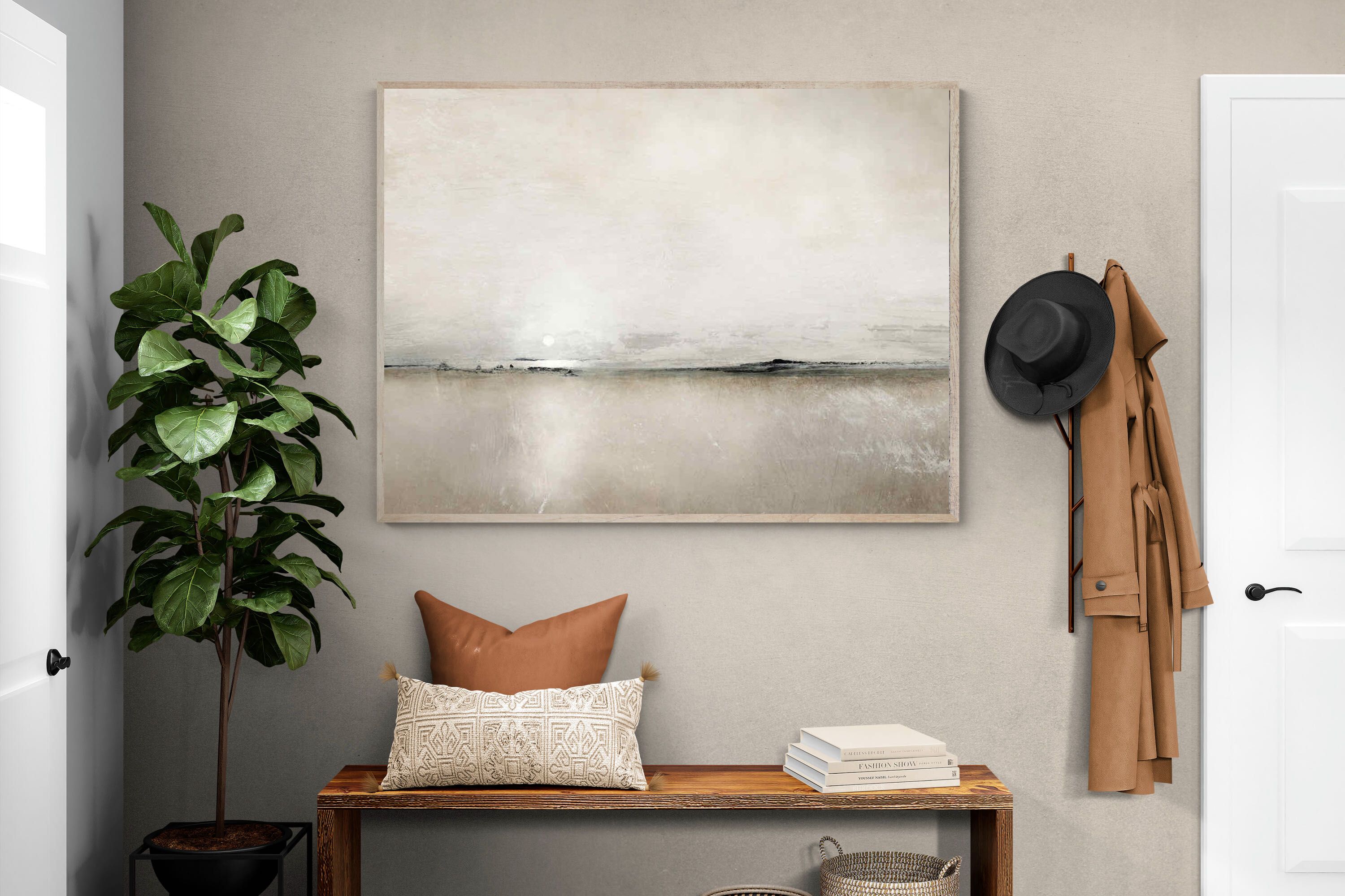 Featuring a sun setting on a distant horizon, it perfectly adds subtle elegance and modern beauty to any living space. Create a sophisticated atmosphere and enhance your surroundings with this stylish piece by Dan Hobday.