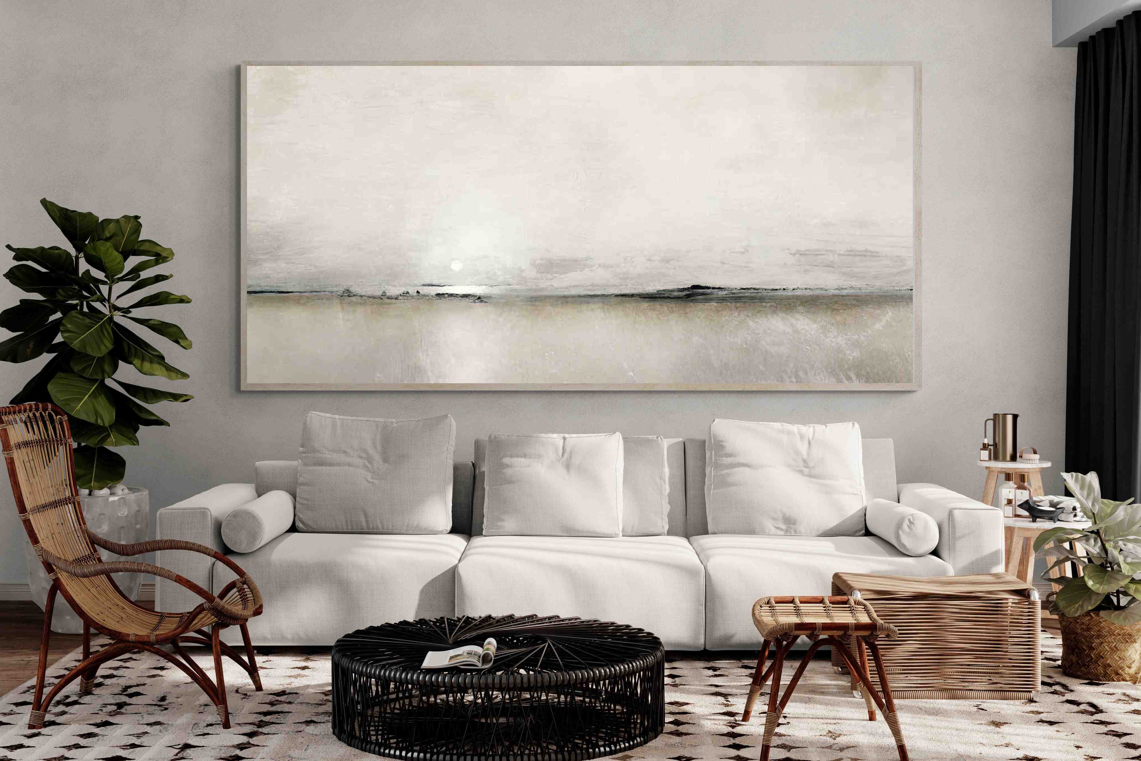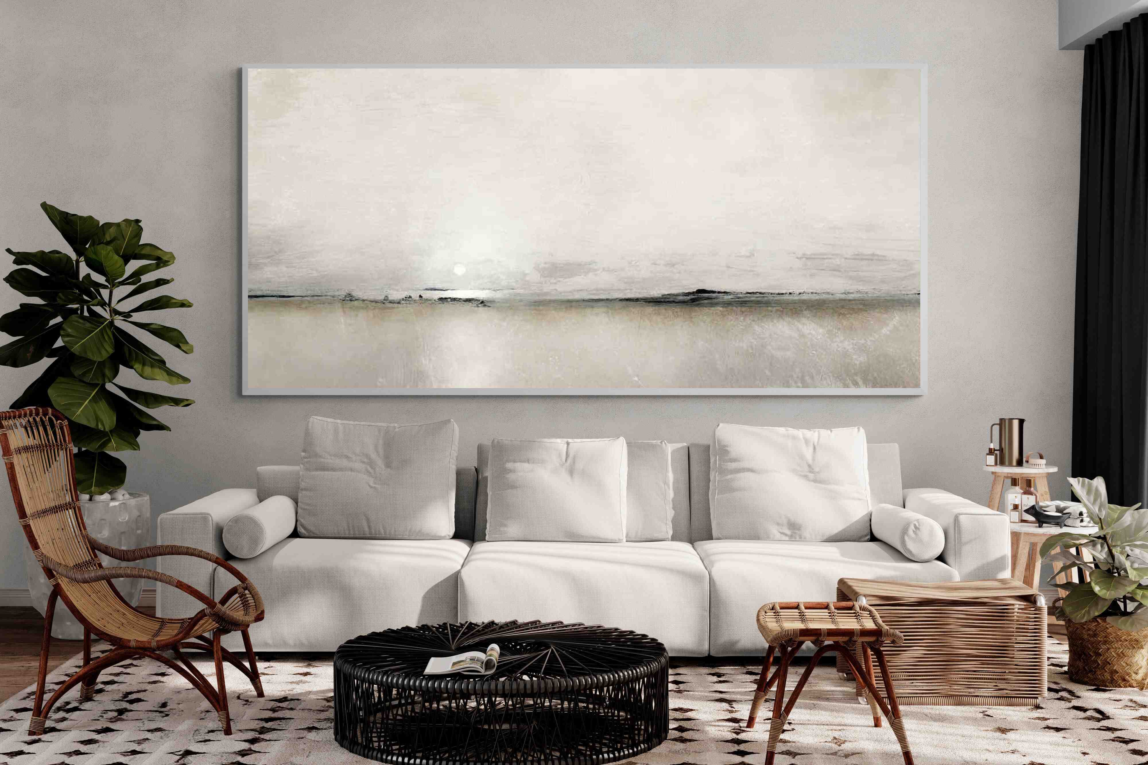 We make-to-order in our studio in Cape Town, using the highest quality materials and most skilled local craftsmen. We use only the finest wood frames (in black, white, oak, walnut) canvas, mounting card and glass available, and whereas most retailers use 25mm subframes, we stretch the canvas over 50mm subframes, which gives it gravitas on the wall.