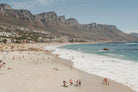 Camps Bay Beach unfolds beneath the dramatic Twelve Apostles mountain range in this expansive coastal scene. Golden sand meets rolling surf, while scattered beachgoers add scale and atmosphere. The layered composition balances mountain, ocean and shoreline in soft natural tones. Ideal for relaxed yet refined interiors, this artwork captures the vibrant energy and everyday beauty of one of Cape Town’s most celebrated beaches.