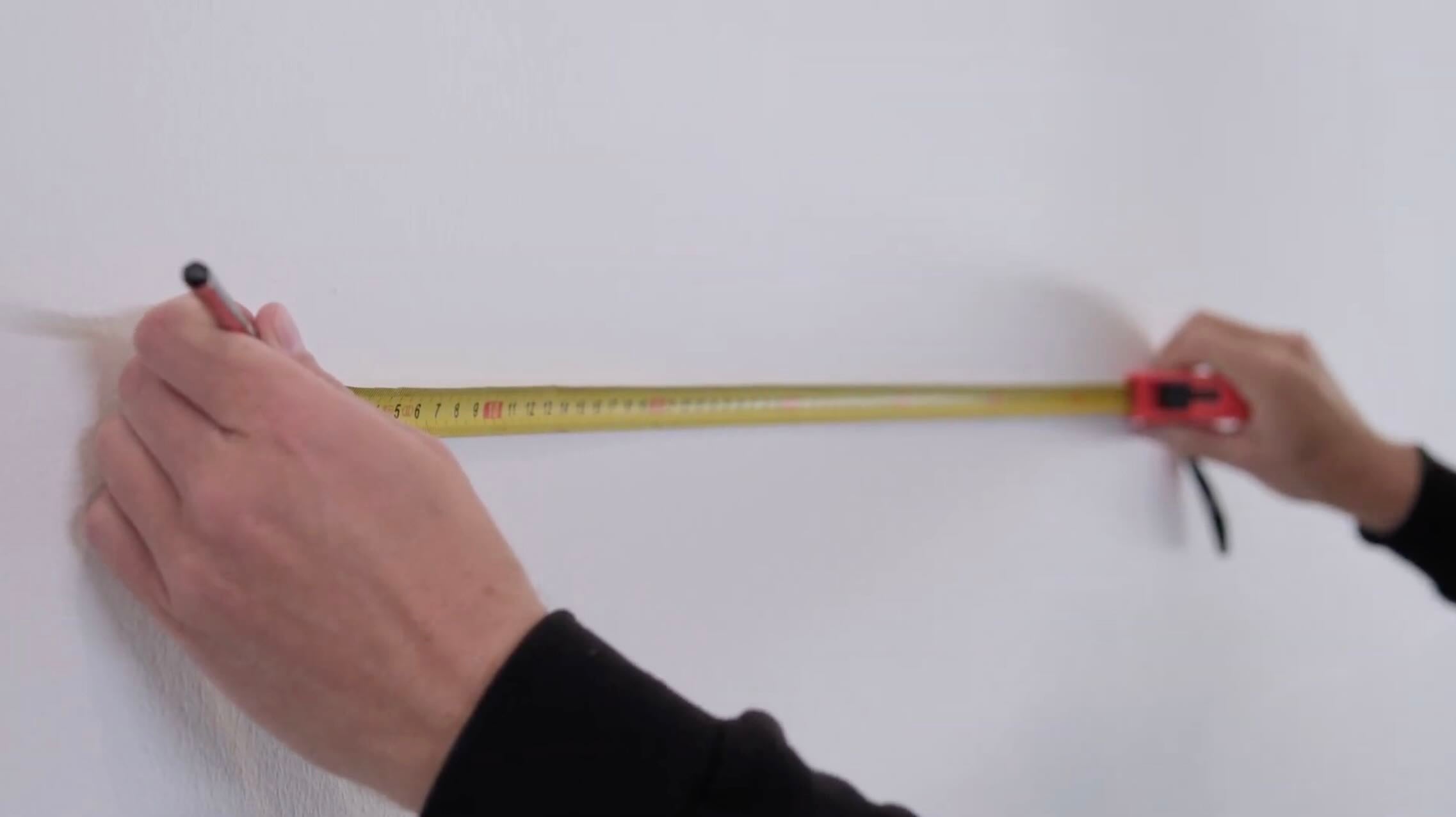 - Mark that distance on the wall where you want the wall art to hang, using a spirit level to ensure the 2 points are level.
