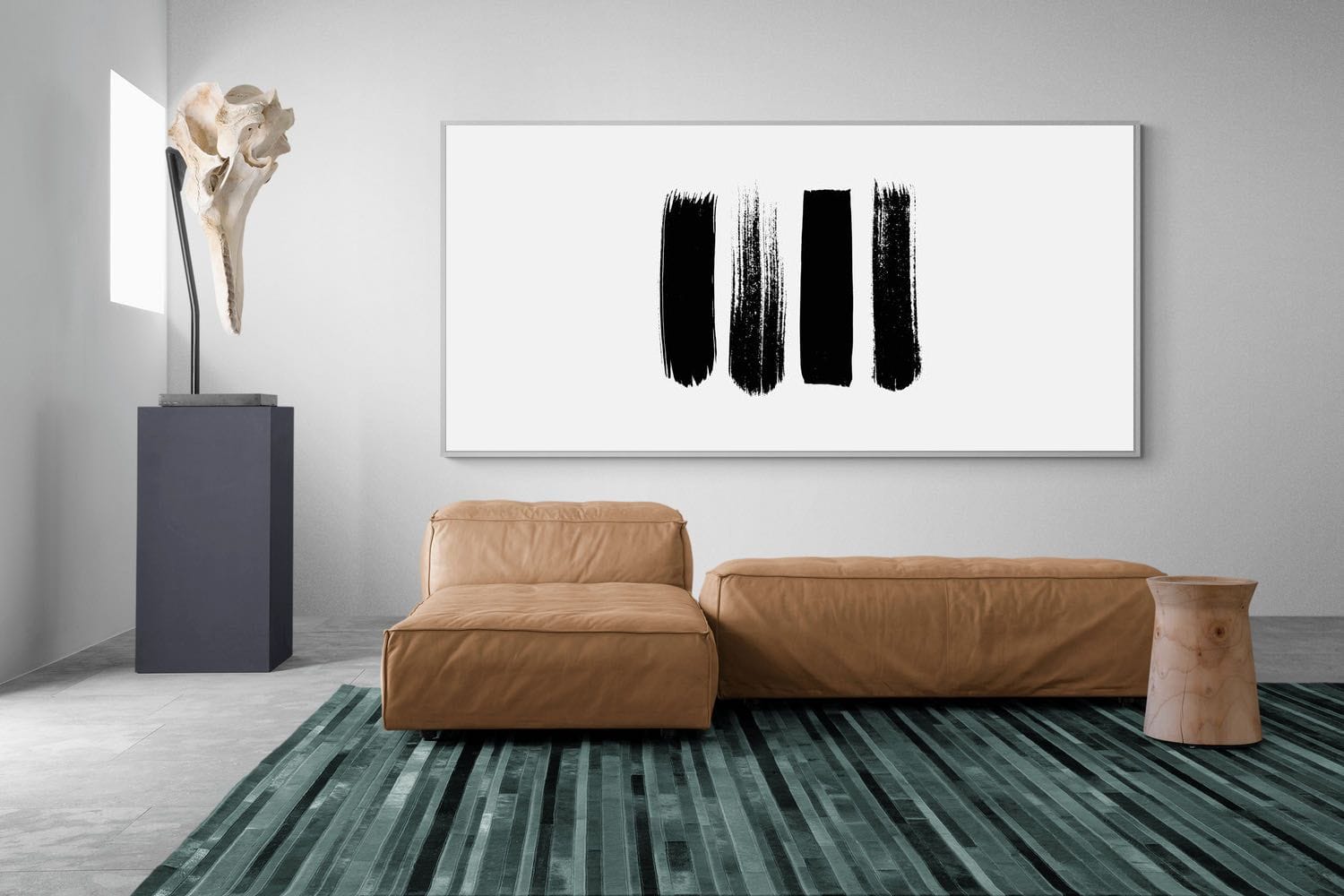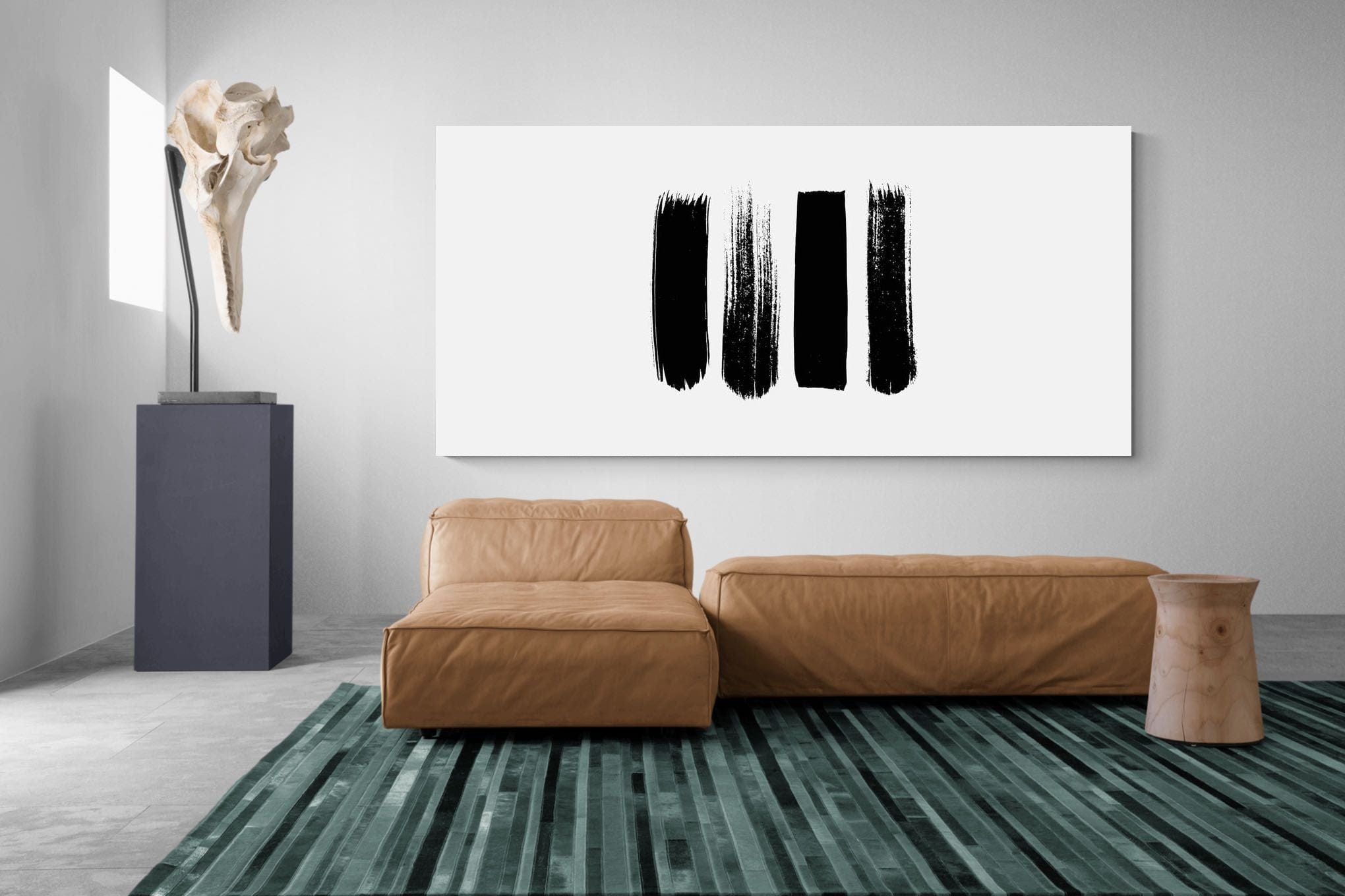 A series of four vertical brush strokes, each with its own texture and intensity, forming a simple yet impactful composition. The contrast between solid and broken marks creates rhythm and visual intrigue while maintaining a clean, modern aesthetic. Perfect for minimalist interiors, this artwork adds subtle structure and artistic character without overwhelming the space. Ideal for hallways, living rooms or offices, it delivers a contemporary, gallery-inspired look.